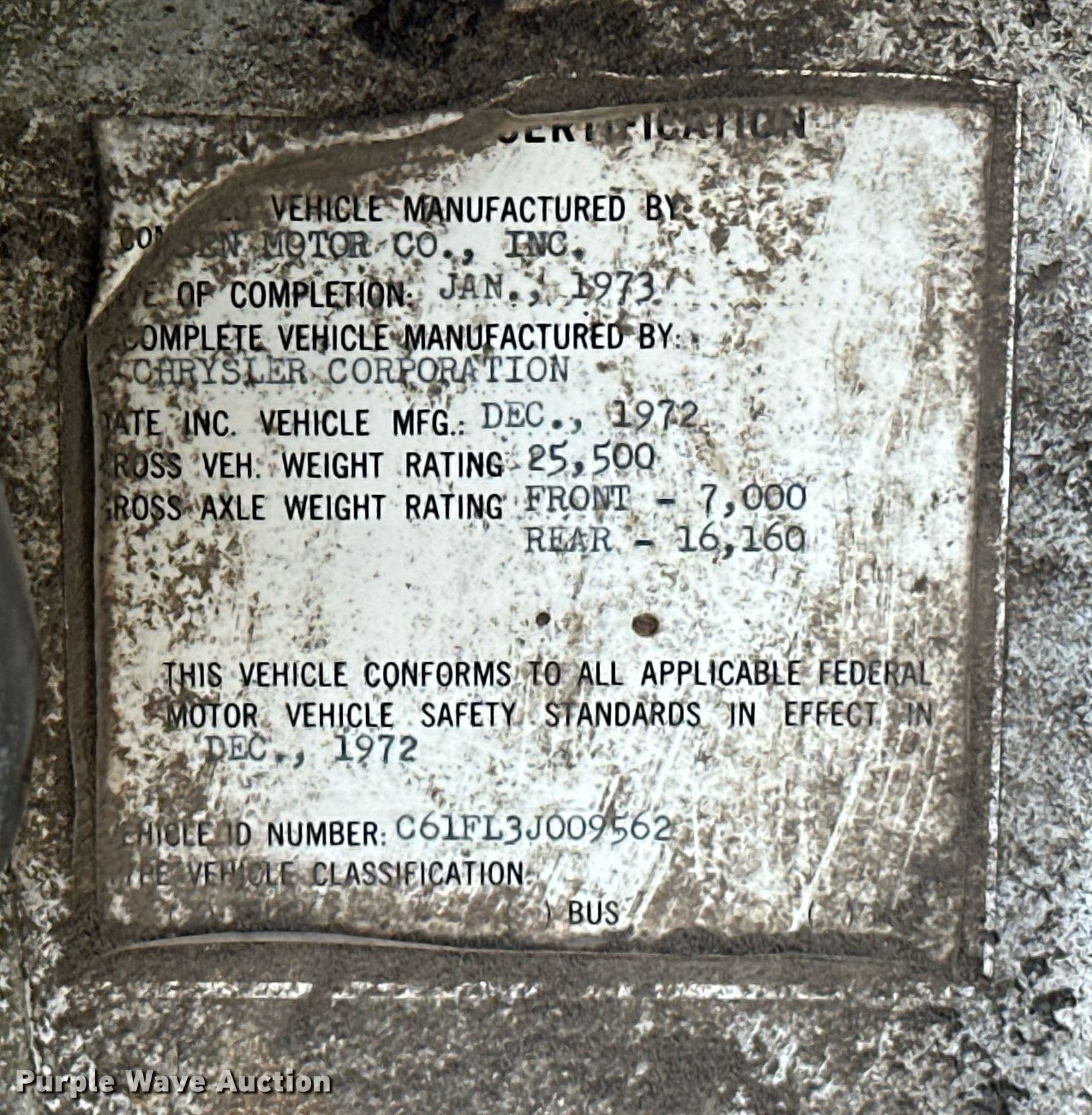 Purple Wave is selling a used Grain Truck in Oklahoma. This item is a 1973 Dodge C600 grain truck with the following: Miles: 37,783 on odometer, VIN: C61FL3J009562