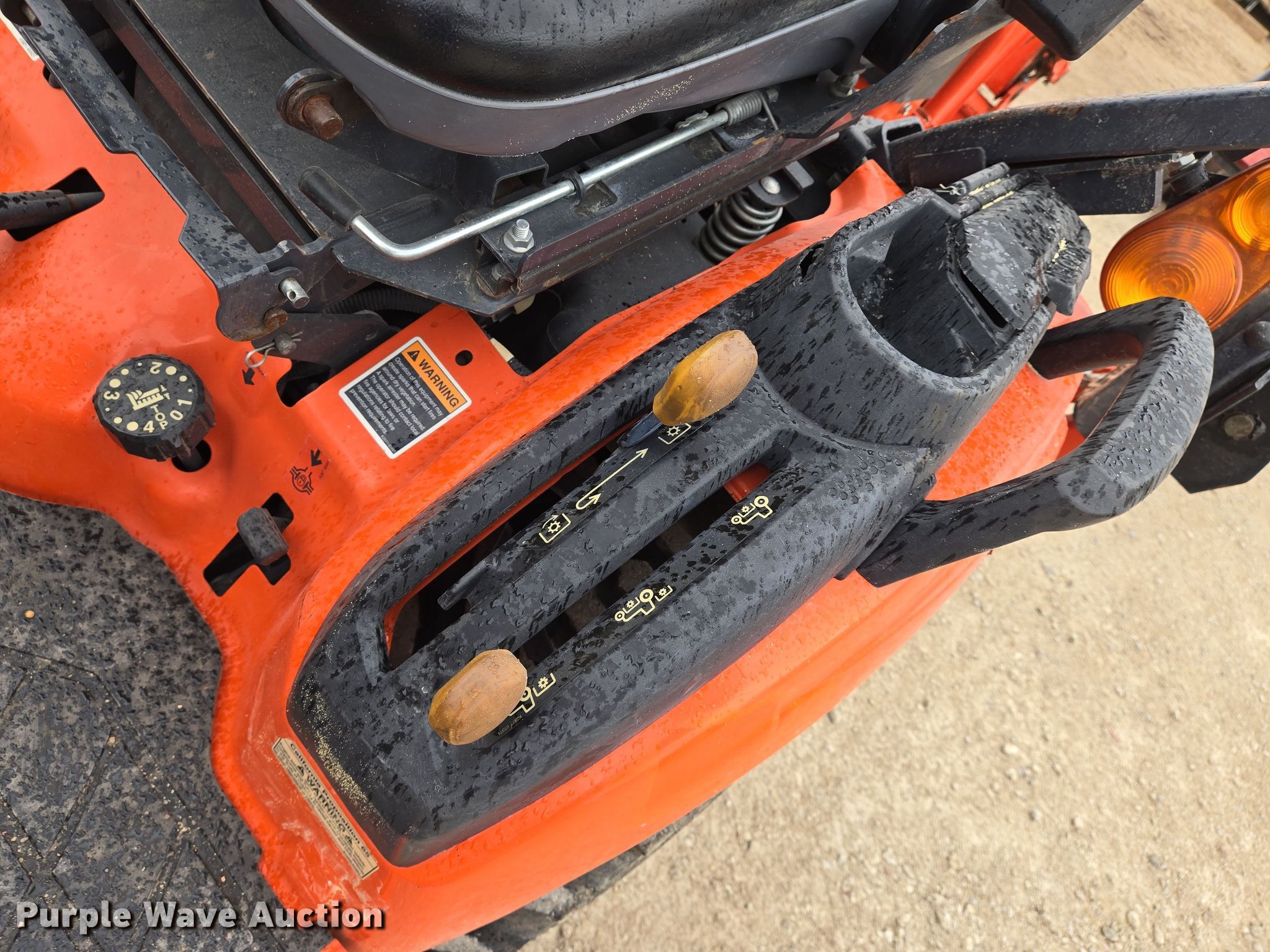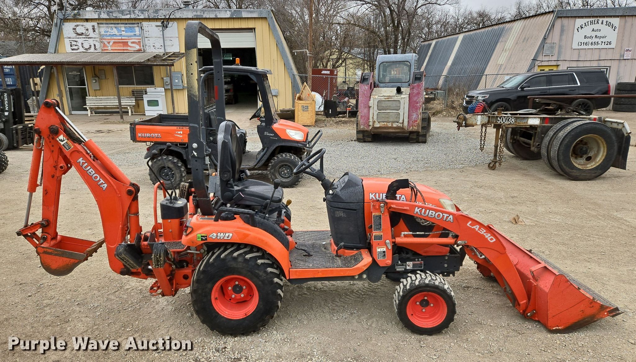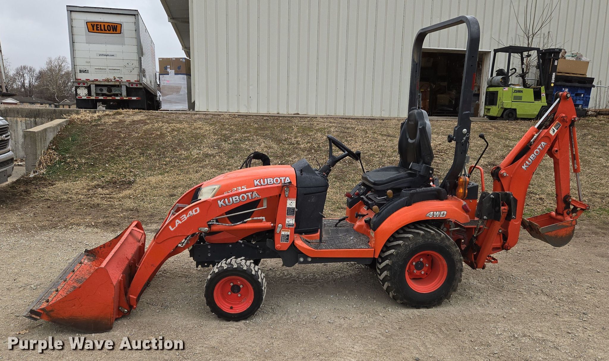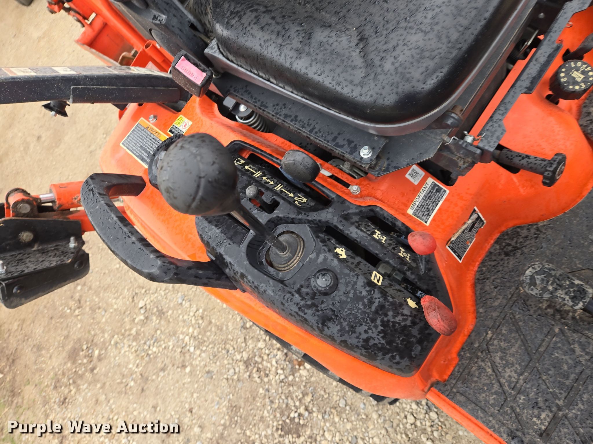 2020 Kubota BX23S MFWD tractor. Hours: 691 on meter, Serial: KBUC1DHRLKGK36657. Engine Kubota D902, Displacement: 0.898L, Cylinders: 3, Fuel type: Diesel. Transmission Hydrostatic, Differential lock. Features PTO: 540, Hydraulic remote sets Front: 2, Rear: 1, Loader Kubota LA340, Controls: Joystick, Bucket Width: 48", Backhoe Kubota BT603, Stick: 32", Bucket controls: Two lever, Bucket Width: 12", Teeth: 3.. Tires Front: 13x8.50-10, Rear: 26x12-12. QP Distribution. Mulvane, KS 67110