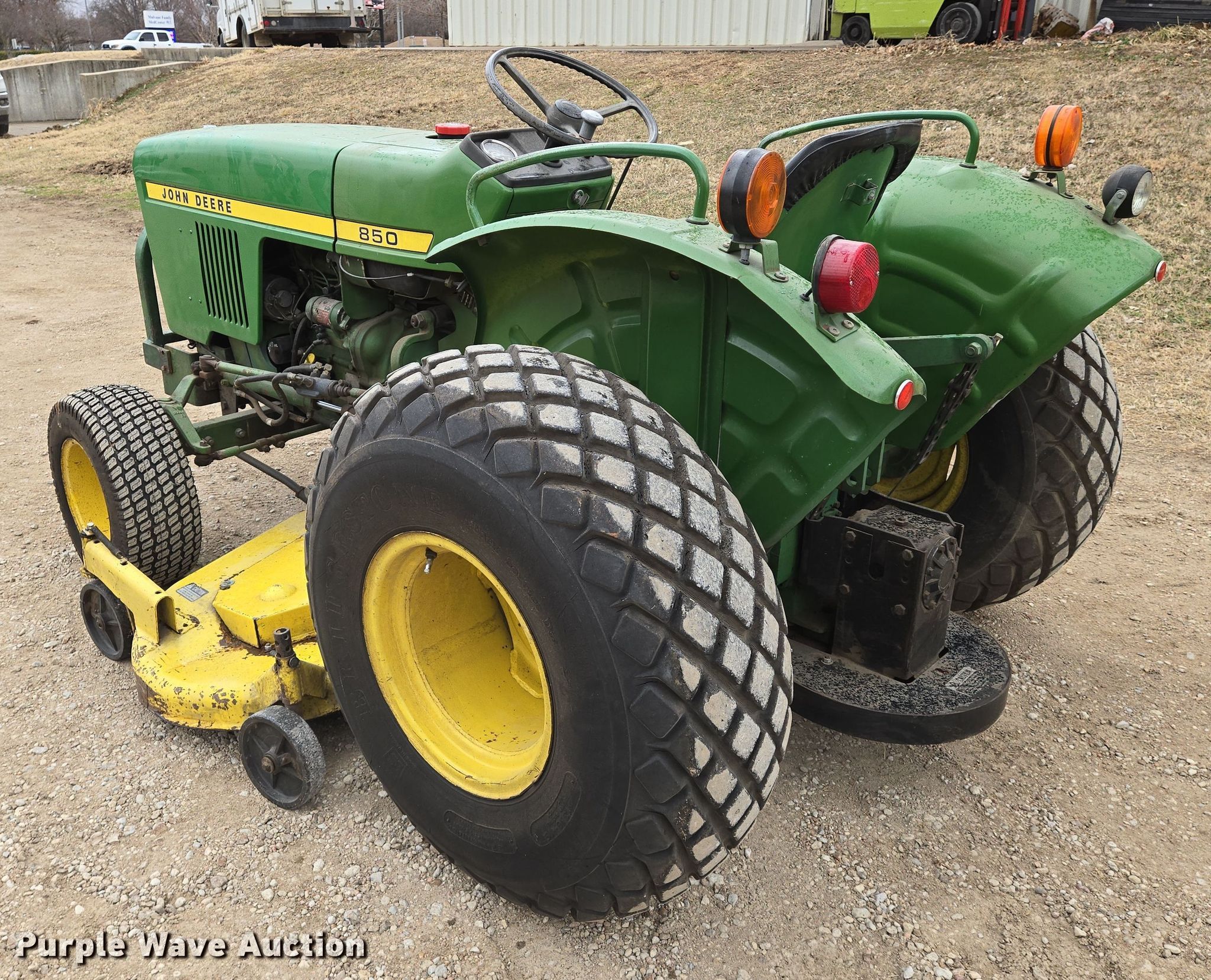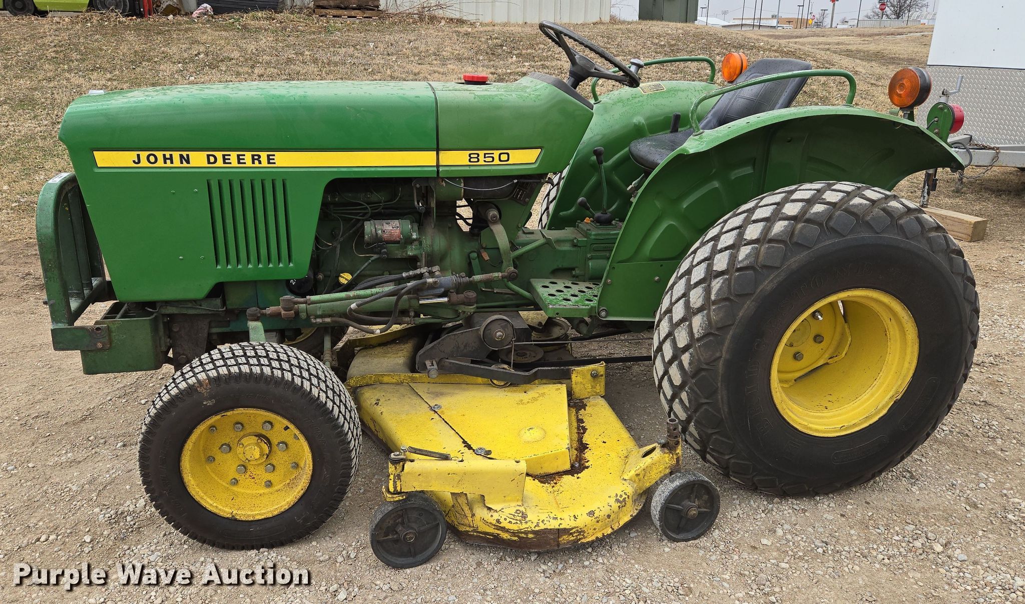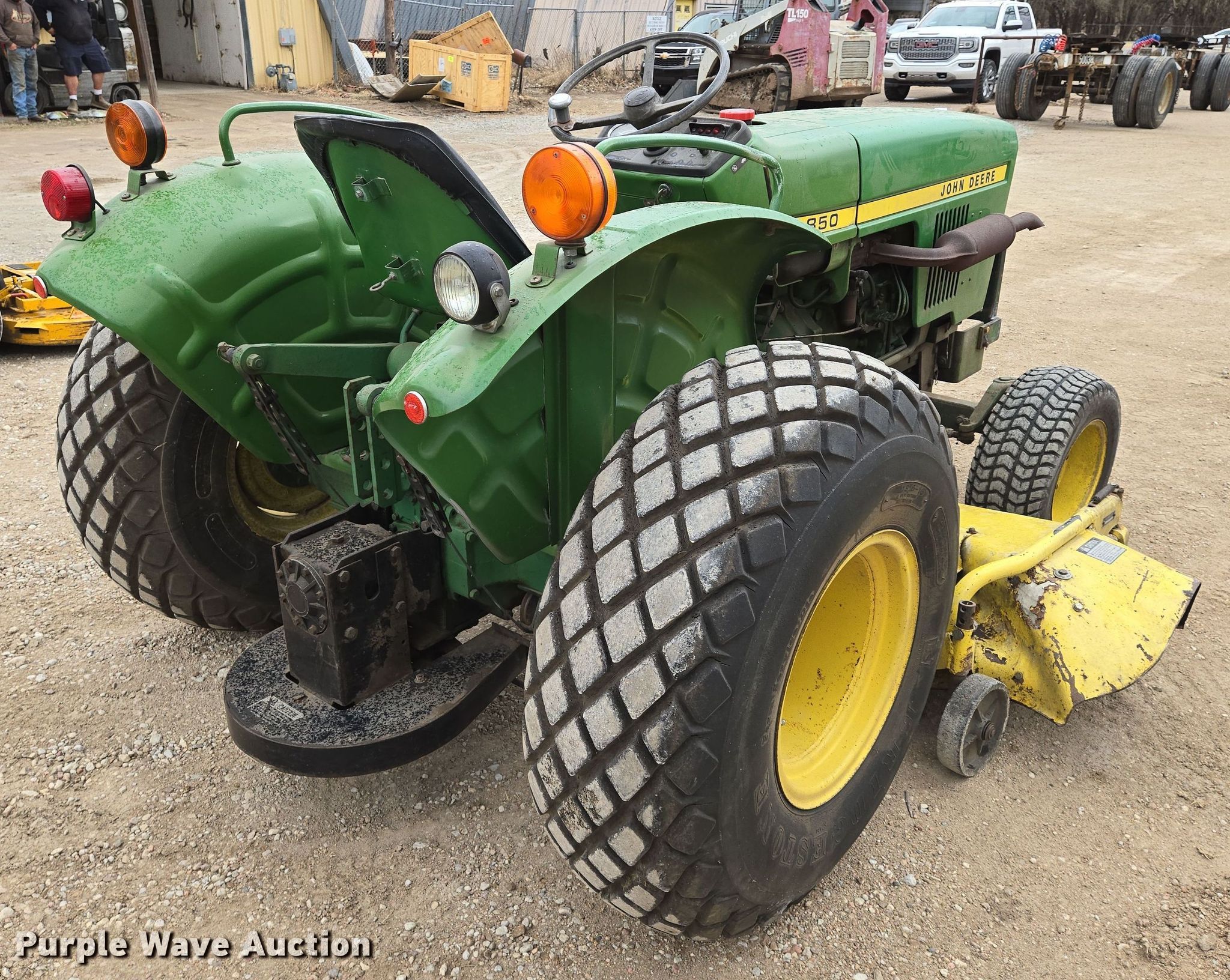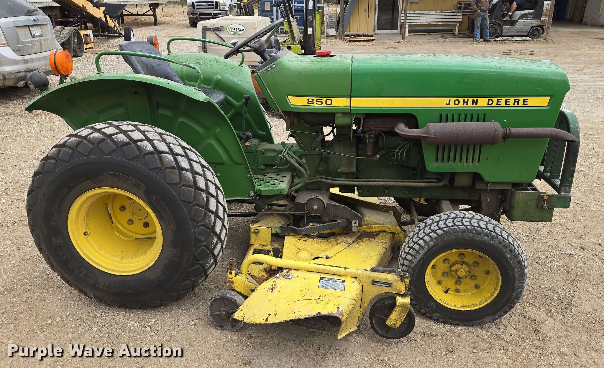 John Deere 850 tractor. Hours: 2,163 on meter. Engine Yanmar, Cylinders: 3, Fuel type: Diesel. Transmission Manual, 8F - 2R. Features PTO: 540, Rotary mower John Deere H072G, Serial: 381005M, Cutting width: 72". Tires Front: 23x8.50-12, Rear: 13.6-16. QP Distribution. Mulvane, KS 67110