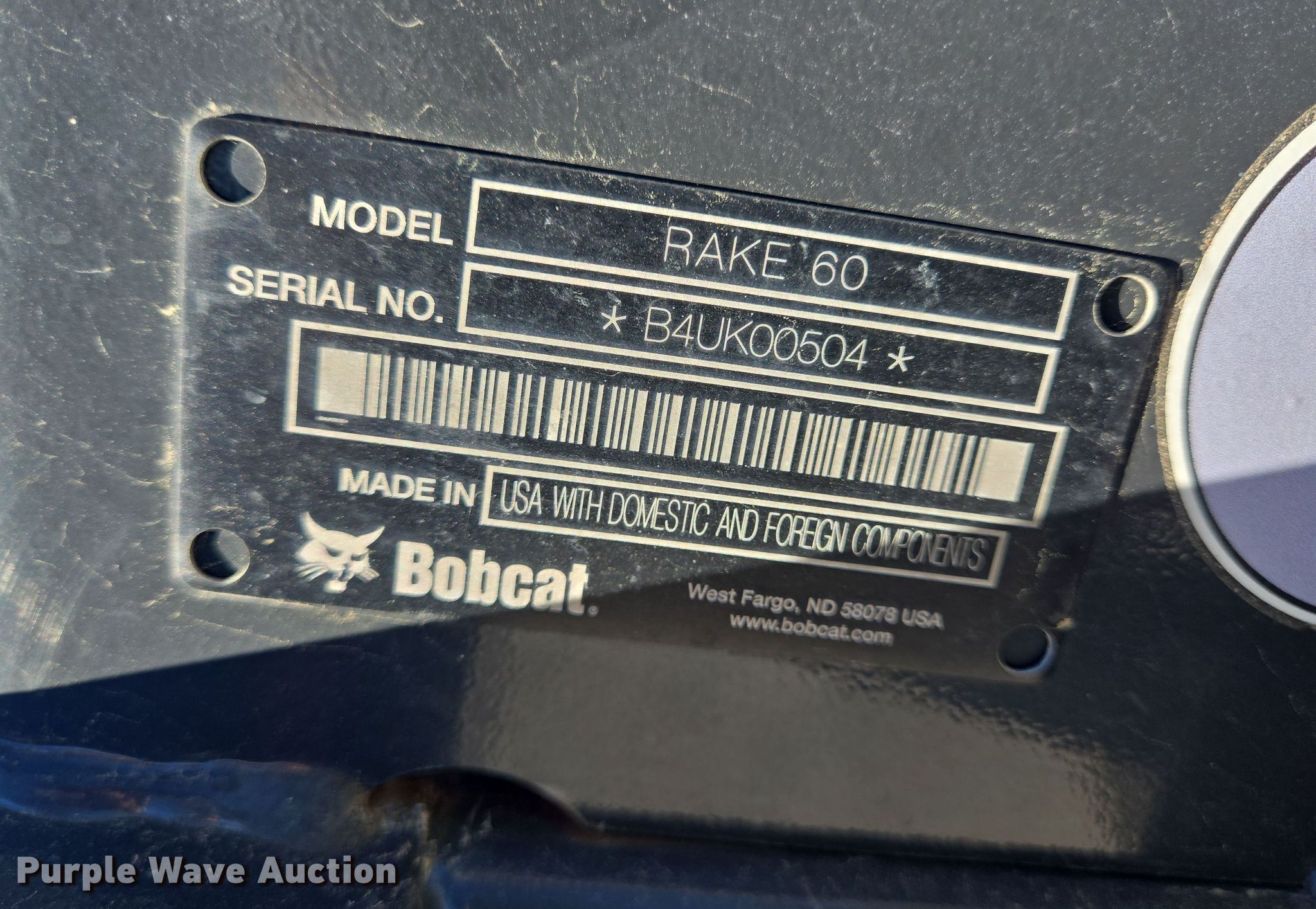 Purple Wave is selling a used Ag Equip. Other in Texas. This item is a Bobcat Rake 60 landscape rake with the following: Serial: B4UK00504, Width: 59"