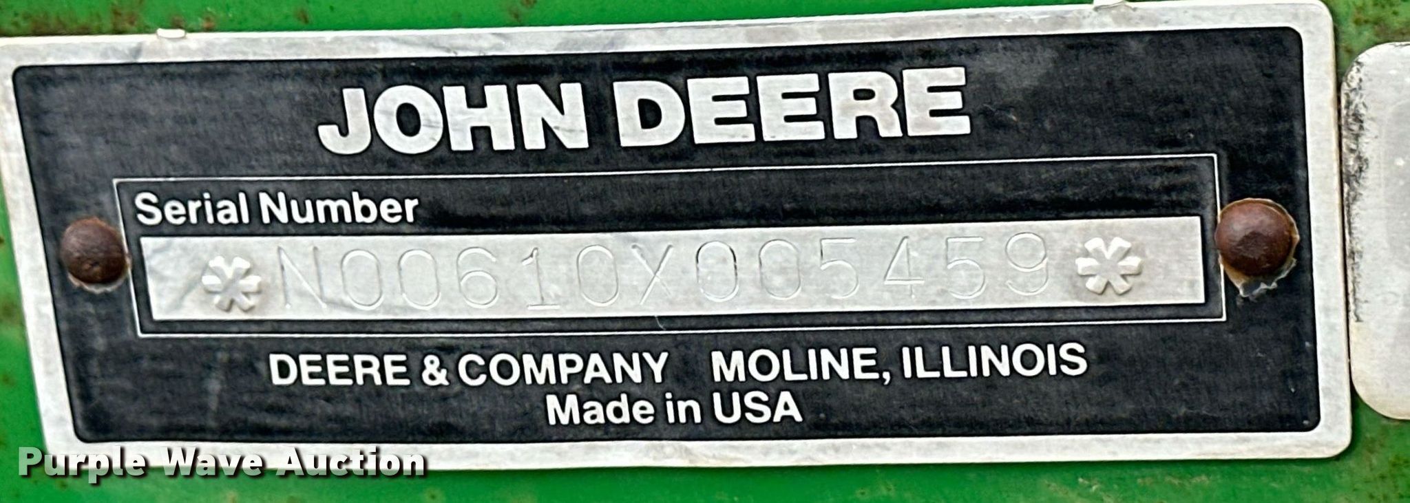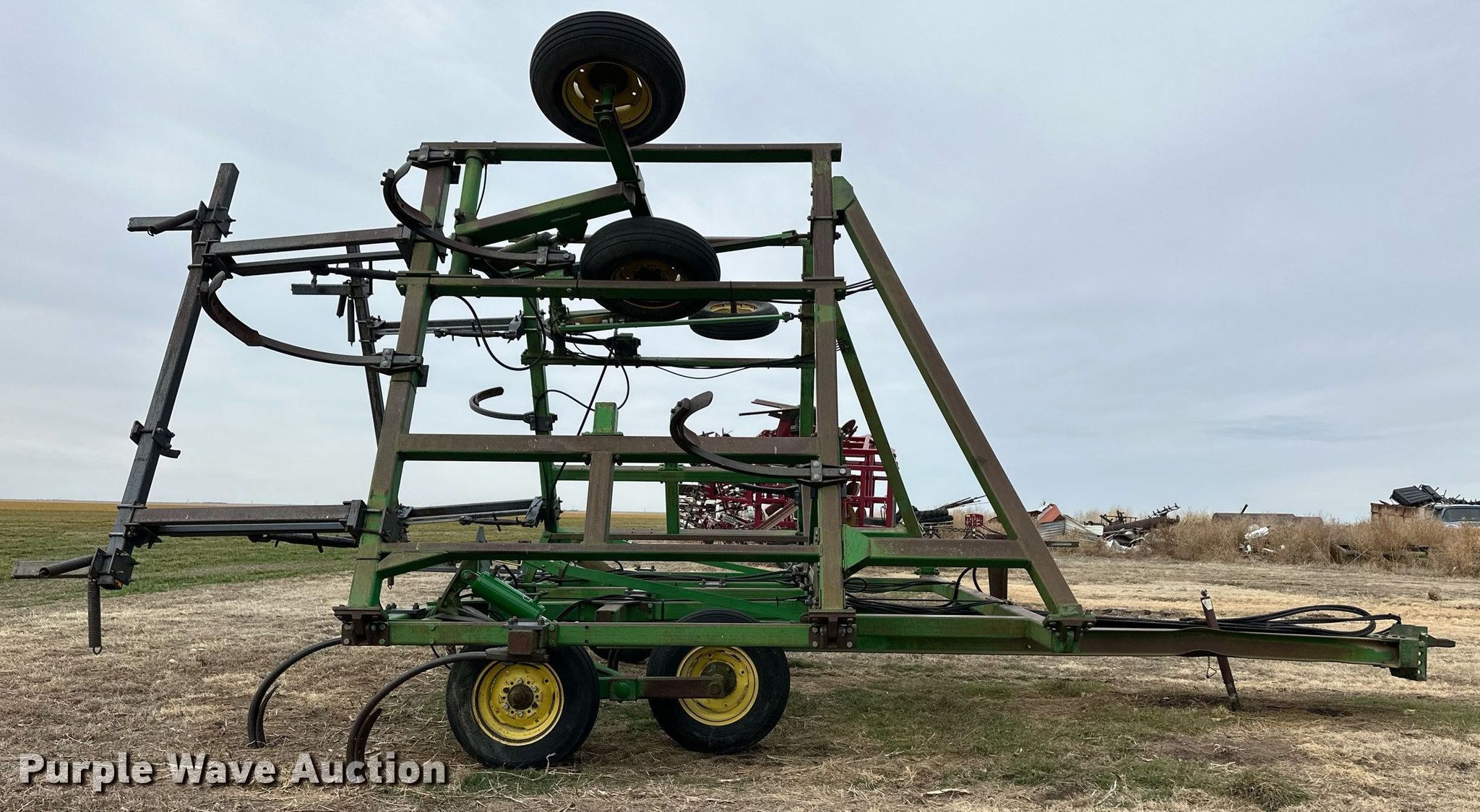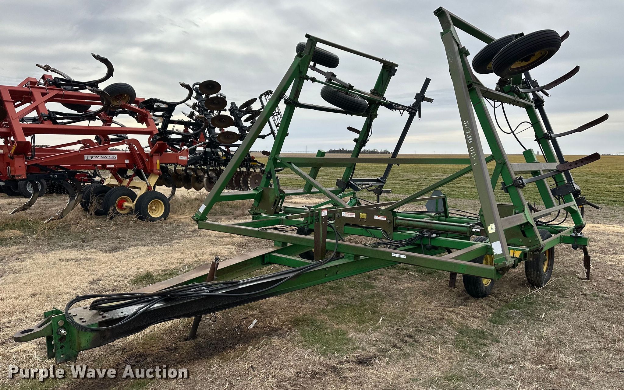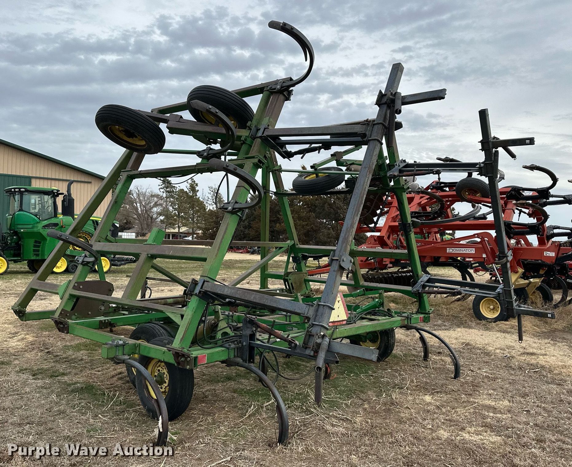 John Deere 610 chisel. Overall width: 30', Serial: N00610X005459. Features Shanks: 13, Operation Hydraulic lift, Hydraulic fold, Walking tandem axle. Tires Tire size: 7.60-15. Notes Tractor not included. Pursuant to Kansas law, Purple Wave will not be collecting sales taxes on any of the purchases made in this business liquidation auction.. Hock Farms Inc. Retirement - Open Inspection April 15. 2815 U.S. 83. Oakley, KS 67748