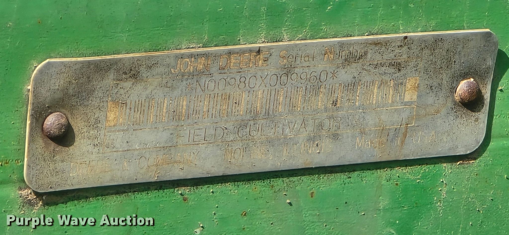 Purple Wave is selling a used Field Cultivator or Sweep Plow in Nebraska. This item is a John Deere 980 field cultivator with the following: Overall width: 22' 6", Serial: N00980X009960