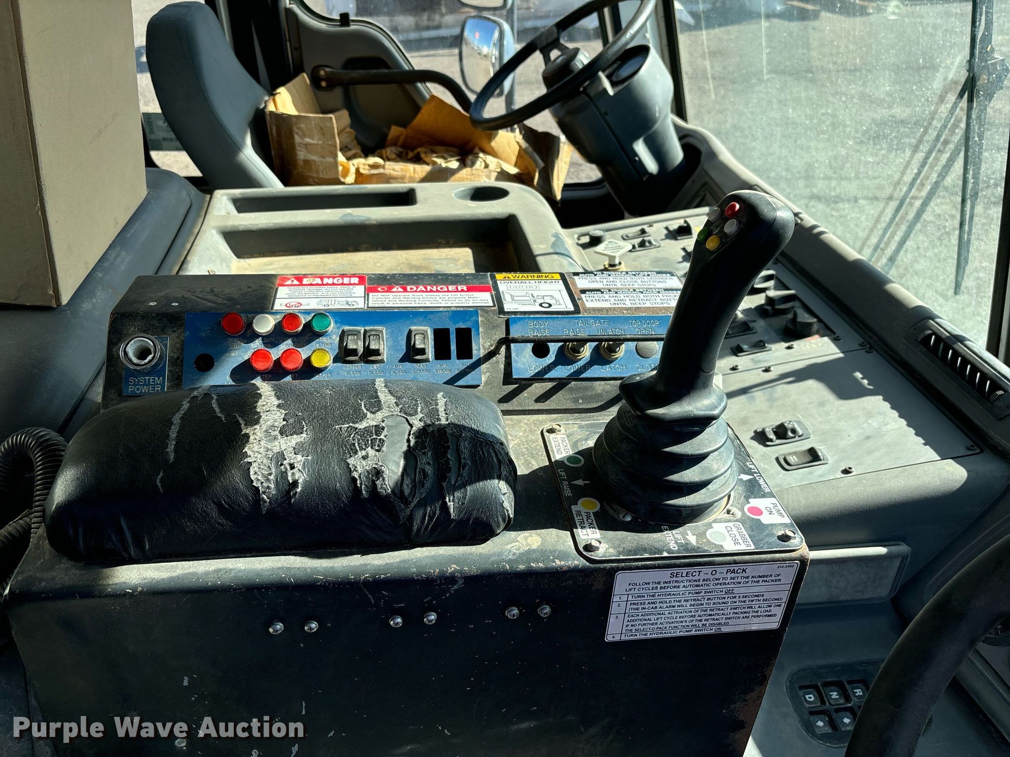2005 Sterling Condor refuse truck. Miles: 990 on odometer Actual mileage unknown, Hours: 7,108 on meter, VIN: 49HHBVCY55RU92652. Engine Cummins, Displacement: 8.9L, Cylinders: 6, Fuel type: Diesel. Transmission Automatic. Chassis Axles: Tandem, Suspension: Spring, Brakes: Air, PTO, GVWR: 66,000 lbs. Interior AC, Heat, Heated mirrors, Power windows. Features Refuse bed Dura Pack 612-3611, Serial: 7E7301834, Capacity: 28 cu.yd., Load: Side. Tires Front: 315/80R22.4, Rear: 11R22.5. Notes Dead battery. Arizona title. Mileage has not been verified. Exempt will be written in the odometer disclosure on the title. Title distribution may be delayed up to 30 days from verification of funds. Arizona Equipment Repair. Kingman, AZ 86401