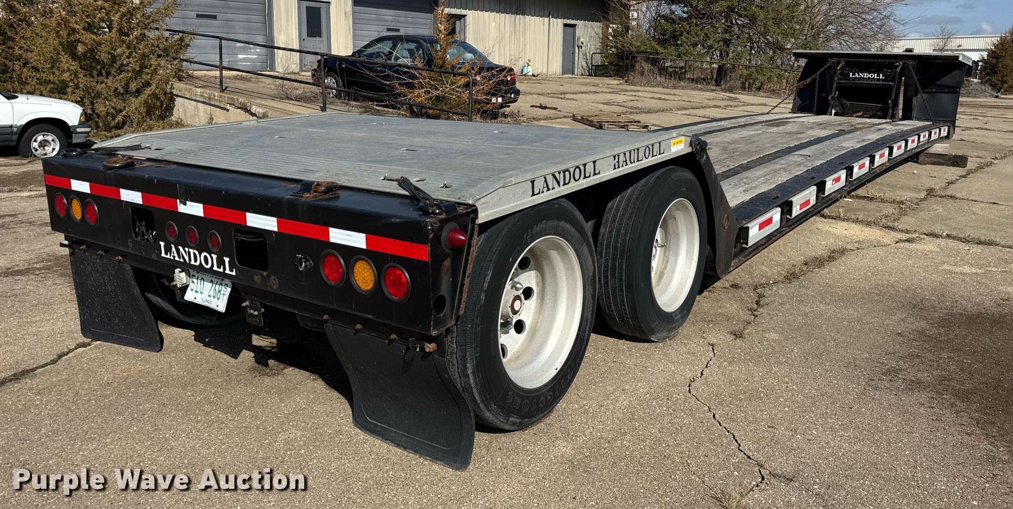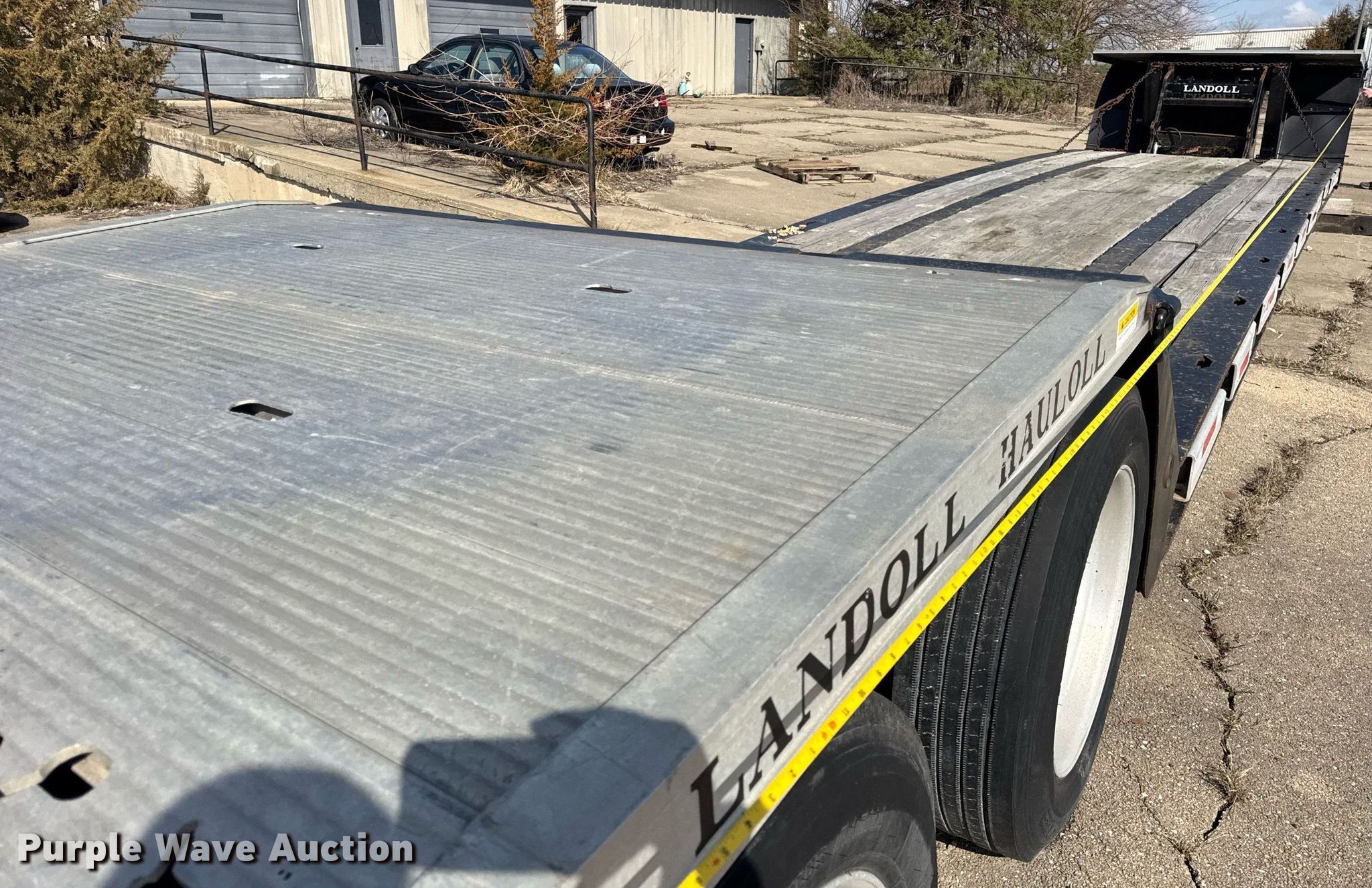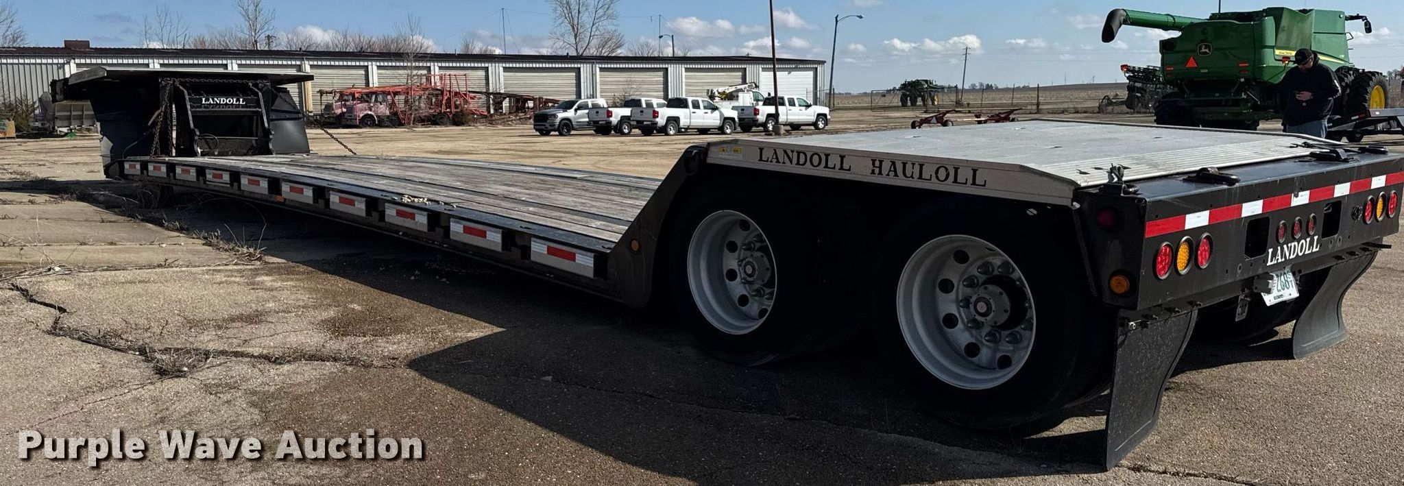 2007 Landoll lowboy equipment trailer. VIN: 1LH825VH671A16234. Dimensions Overall: 50' L x 102" W, Deck: 29' 6" L x 102' W, Top deck length: 9' 4", Rear deck length: 7' 3", Deck height: 18". Features Deck type: Wood, Outriggers: Pull-out, Neck type: Detachable, Hydraulic controls: Manual. Chassis Suspension: Air, Brakes: Air, Axles: Tandem, GVWR: 71,950 lbs, GAWR: 20,000 lbs. Tires Steel wheels, Size: 255/70R22.5. Illinois title. Title distribution may be delayed up to 14 days from verification of funds. Heritage Tractor. Galesburg, IL 61401