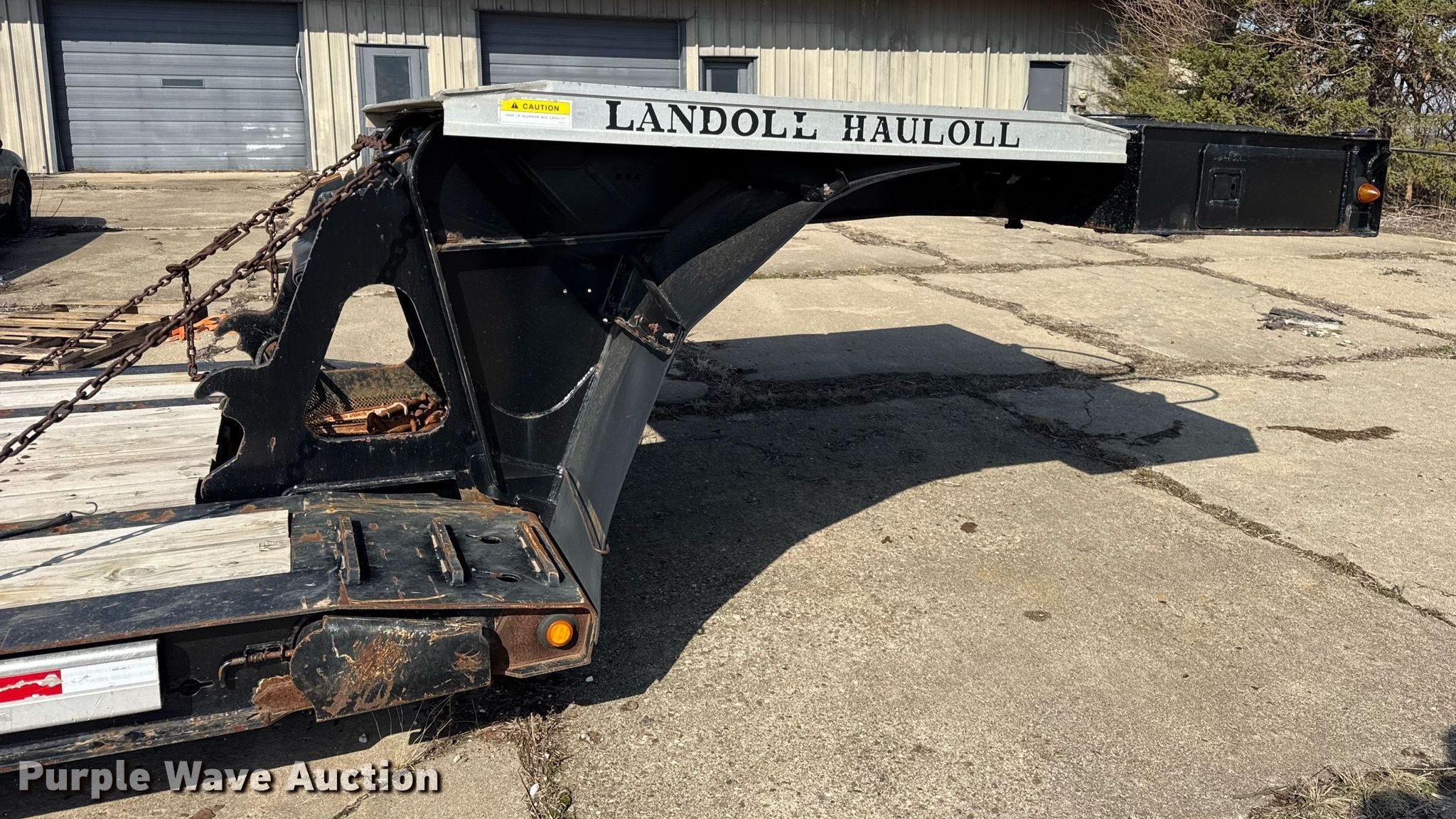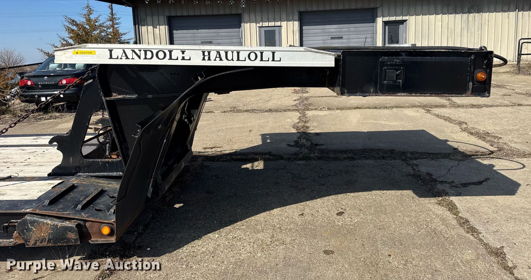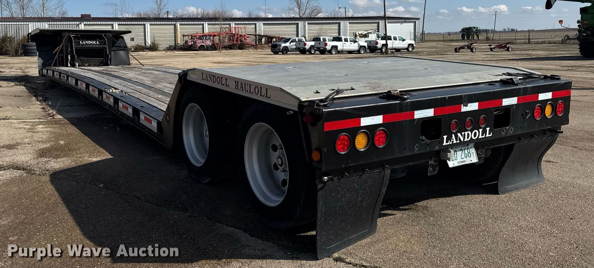 2007 Landoll lowboy equipment trailer. VIN: 1LH825VH671A16234. Dimensions Overall: 50' L x 102" W, Deck: 29' 6" L x 102' W, Top deck length: 9' 4", Rear deck length: 7' 3", Deck height: 18". Features Deck type: Wood, Outriggers: Pull-out, Neck type: Detachable, Hydraulic controls: Manual. Chassis Suspension: Air, Brakes: Air, Axles: Tandem, GVWR: 71,950 lbs, GAWR: 20,000 lbs. Tires Steel wheels, Size: 255/70R22.5. Illinois title. Title distribution may be delayed up to 14 days from verification of funds. Heritage Tractor. Galesburg, IL 61401