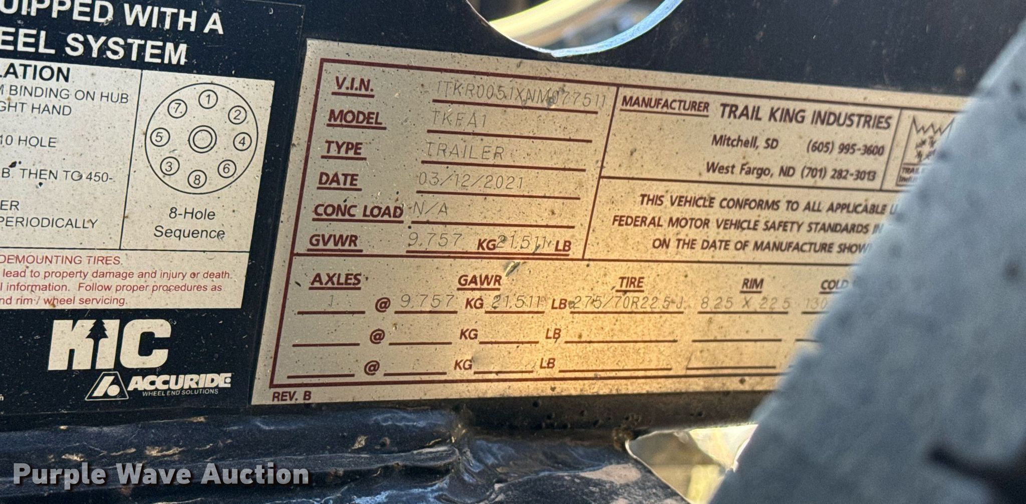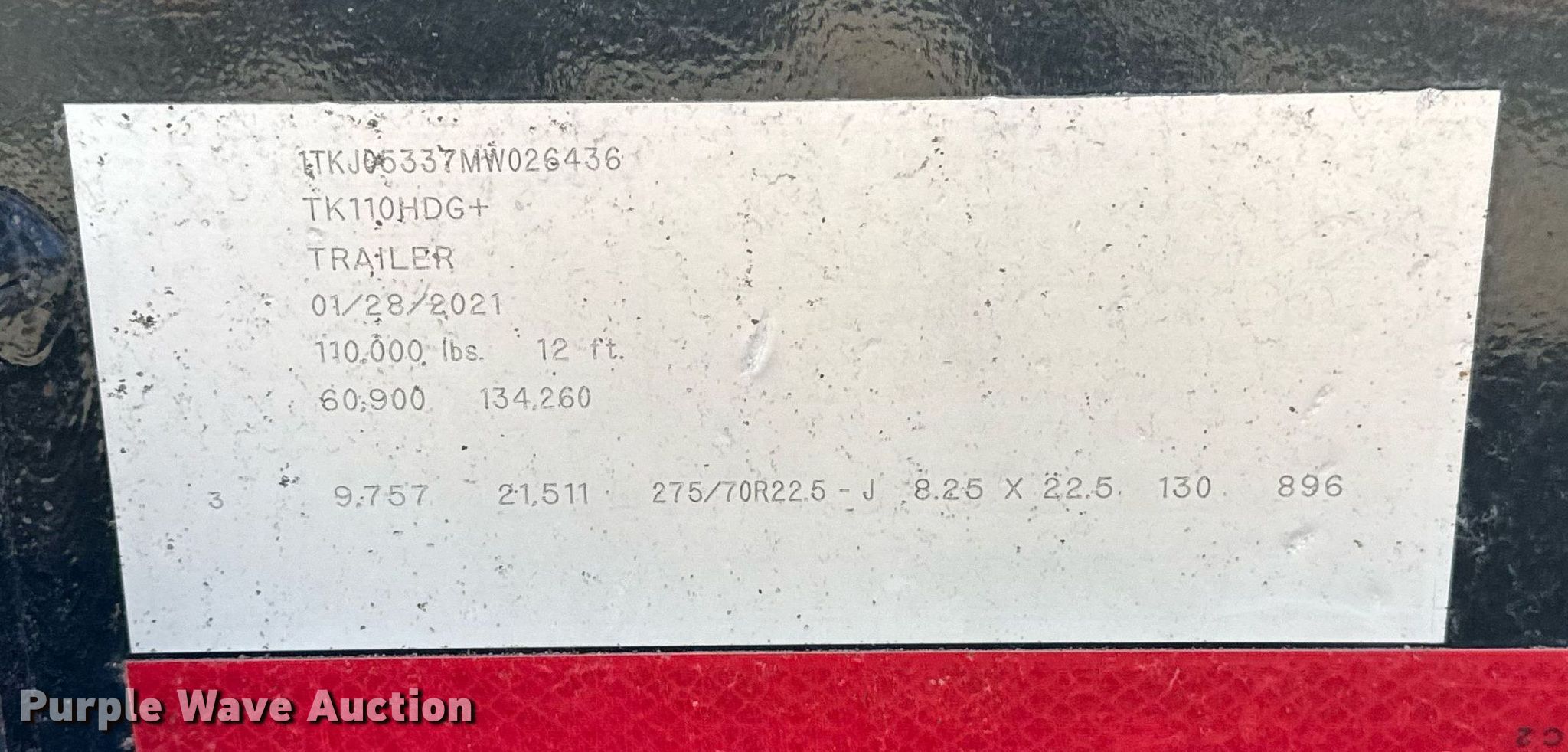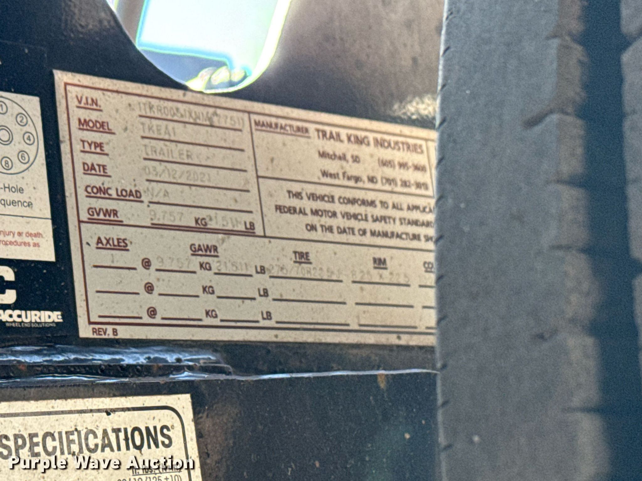 Purple Wave is selling a used Equip. Trailer in Oklahoma. This item is a 2021 Trail King TK110HDG lowboy equipment trailer with the following: VIN: 1TKJ05337MW026436