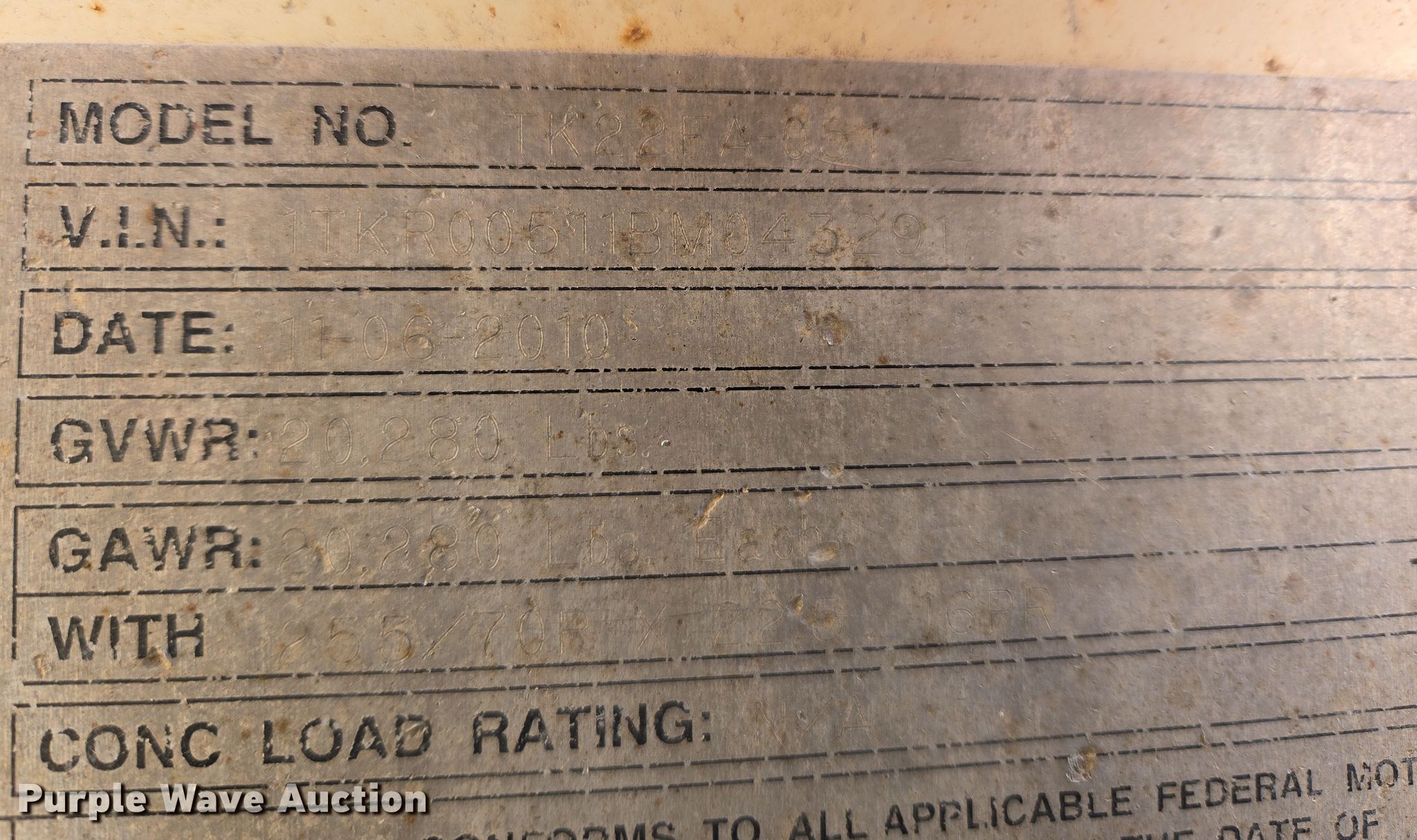 - VIN: 1TKR00511BM043291