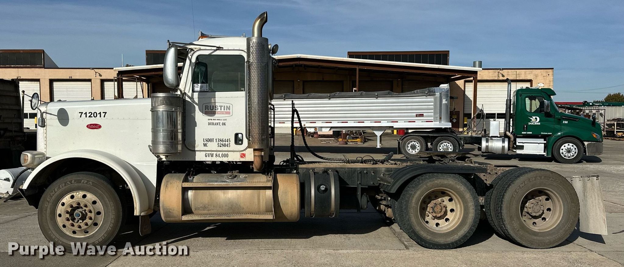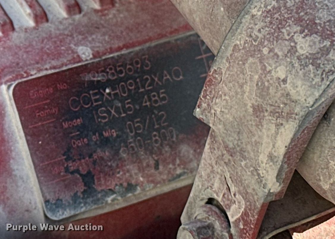 2013 Peterbilt 388 semi truck. Miles: 737,296 on odometer, Hours: 22,251 on meter, VIN: 1XPWD49X5DD196021. Engine Cummins ISX15, Serial: 79585693, Displacement: 15.0L, Cylinders: 6, Fuel type: Diesel, HP: 485, Engine brake. Transmission Eaton Fuller, Manual, Speed: 10. Chassis Axles: Tandem, Differential lock: Inter-axle, Suspension: Air Dump valves, Brakes: Air, PTO, Wet kit, GVWR: 52,000 lbs FAWR: 12,000 lbs, IAWR: 20,000 lbs, RAWR: 20,000 lbs. Interior AC, Heat, Heated mirrors, Power windows, Power locks, Cruise control, Air ride cab. Features Deck plate: Aluminum, Fifth wheel type: Sliding, Fuel tank: Single. Tires Size: 11R22.5. Notes Dash warning indicator: ABS, Windshield chipped or cracked. Oklahoma title. Title distribution may be delayed up to 30 days from verification of funds. Dolese Bros Co. 5600 West Reno Avenue. Oklahoma City, OK 73127