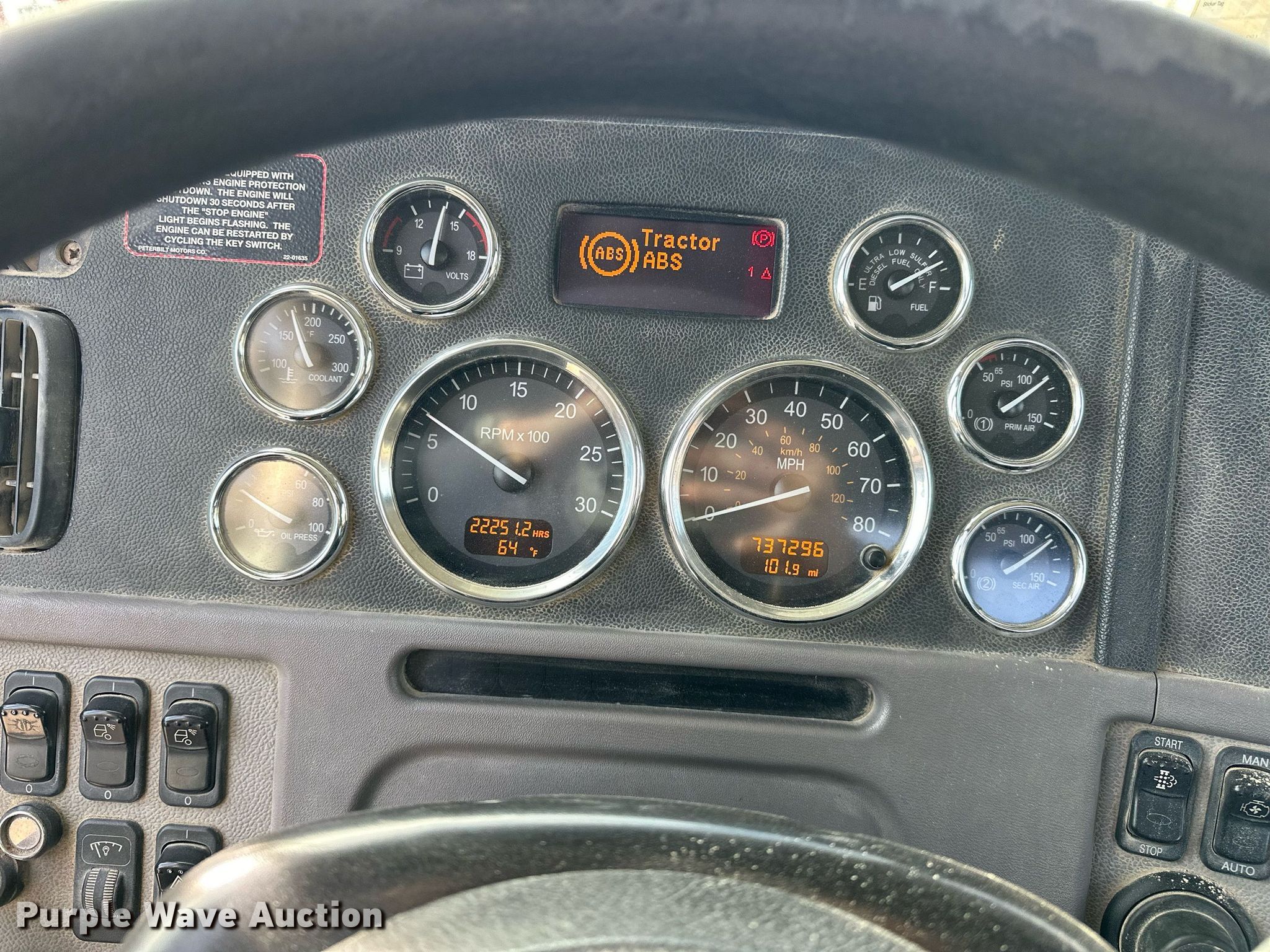 Purple Wave is selling a used Truck Tractor in Oklahoma. This item is a 2013 Peterbilt 388 semi truck with the following: Miles: 737,296 on odometer, Hours: 22,251 on meter, VIN: 1XPWD49X5DD196021