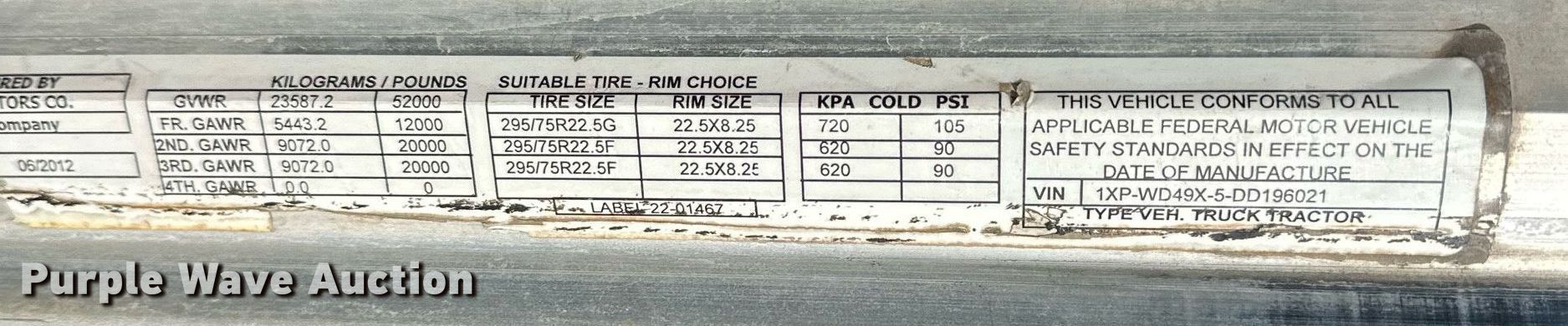 - VIN: 1XPWD49X5DD196021