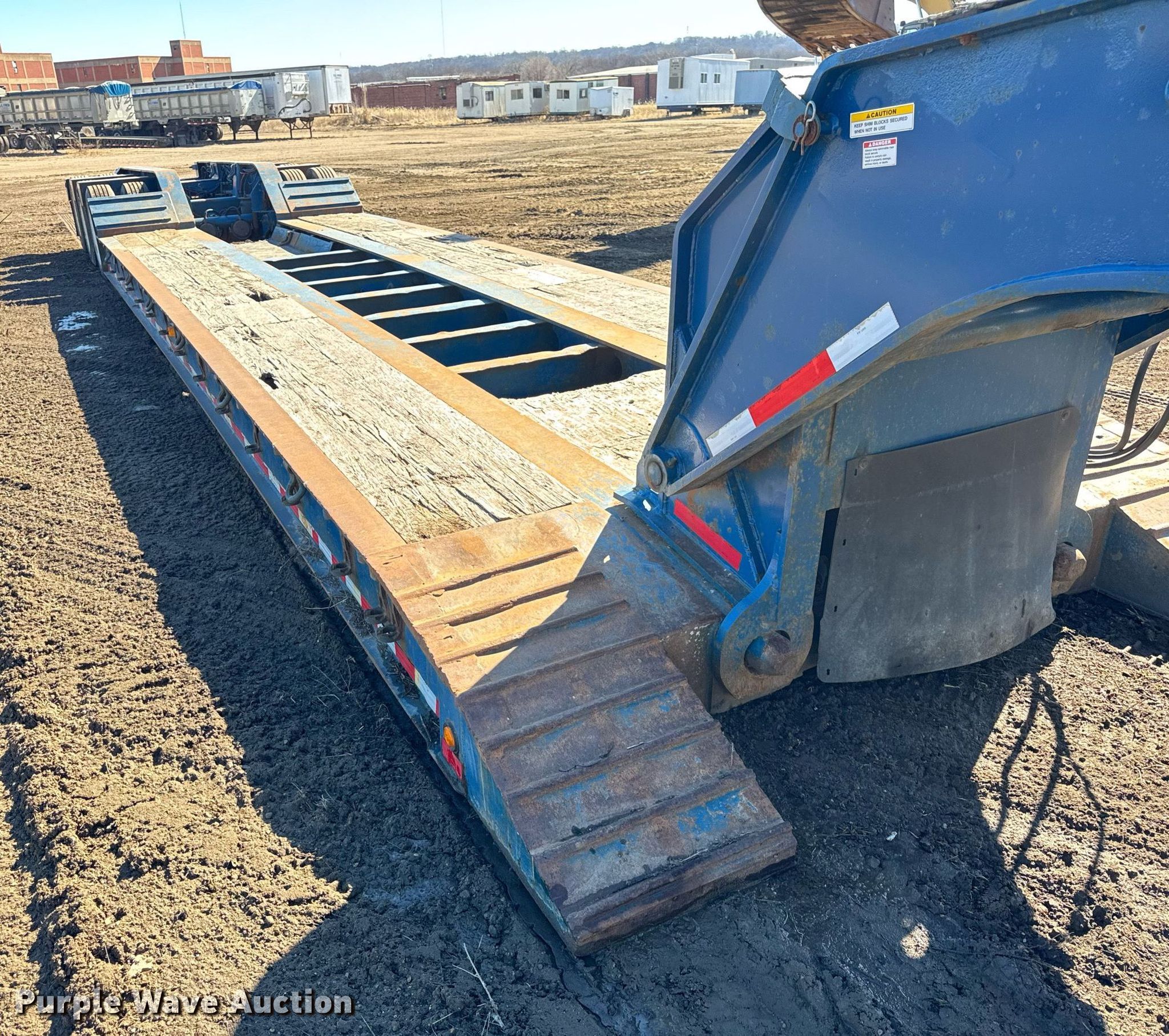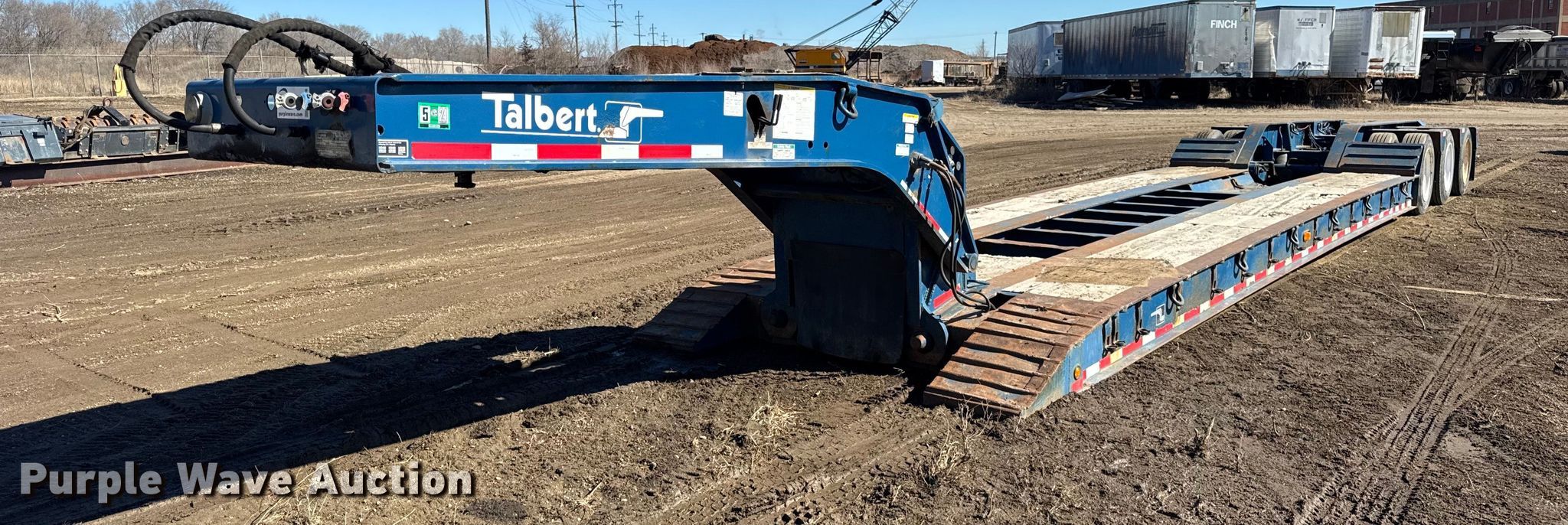 2003 Talbert T(4)DW-55-HPG-1-T1 lowboy equipment trailer. VIN: 40FSK574731022615. Dimensions Overall: 52' 2" L x 102" W, Deck: 25' 6" L x 102" W, Deck height: 24". Features Deck type: Wood, Neck type: Detachable, Hydraulic controls: Manual. Chassis Suspension: Air, Brakes: Air, Axles: Triple, GVWR: 131,980 lbs, GAWR: 20,280 lbs. Tires Steel wheels, Size: 255/70R22.5. Illinois title. Title distribution may be delayed up to 30 days from verification of funds. N.E. Finch Co.. Peoria, IL 61607