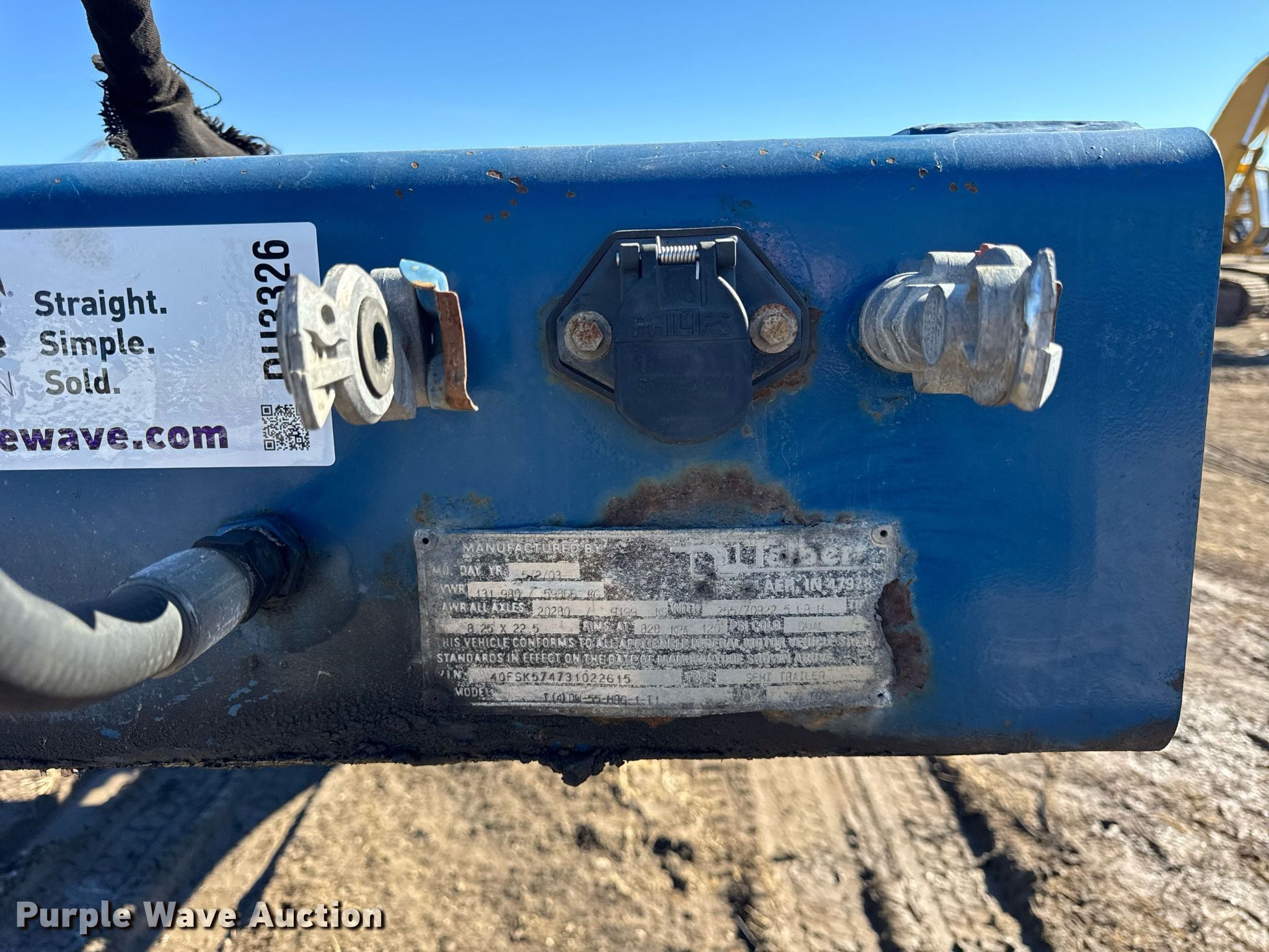 Purple Wave is selling a used Equip. Trailer in Illinois. This item is a 2003 Talbert T(4)DW-55-HPG-1-T1 lowboy equipment trailer with the following: VIN: 40FSK574731022615