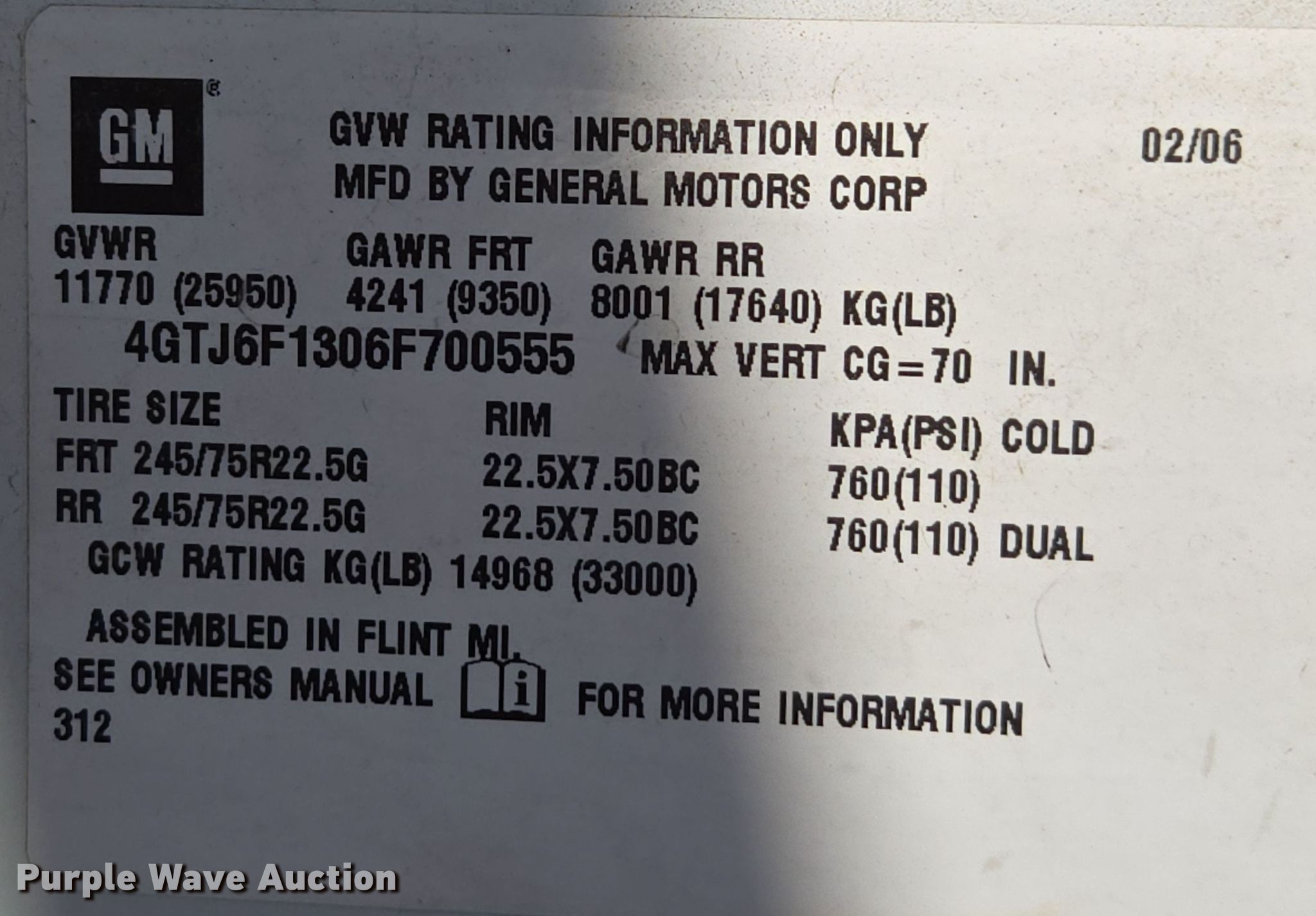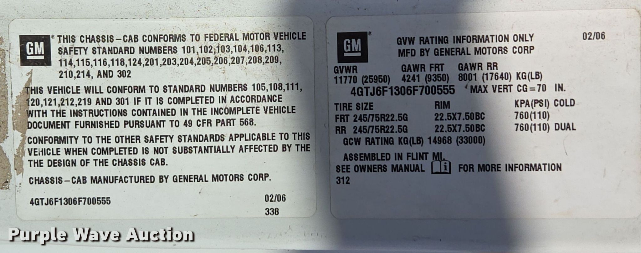 2006 Isuzu FTR box truck. Miles: 485,919 on odometer, VIN: 4GTJ6F1306F700555. Engine Isuzu 6HK1X4, Displacement: 7.8L, Cylinders: 6, Fuel type: Diesel, HP: 200. Transmission Automatic. Chassis Axles: Single, Suspension: Spring, Brakes: Hydraulic, GVWR: 25,950 lbs. Interior AC, Heat, Auxiliary controls. Features Box bed Brown, 24' L x 96" W x 146.5" H, Floor: Wood, End gate lift. Tires Size: 255/75R22.5. Kansas title. Title distribution may be delayed up to 14 days from verification of funds. Topeka, KS 66609