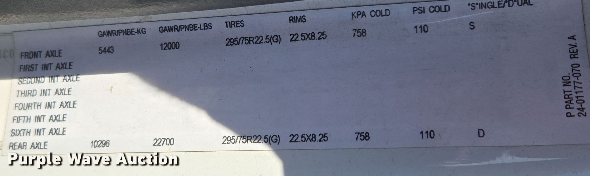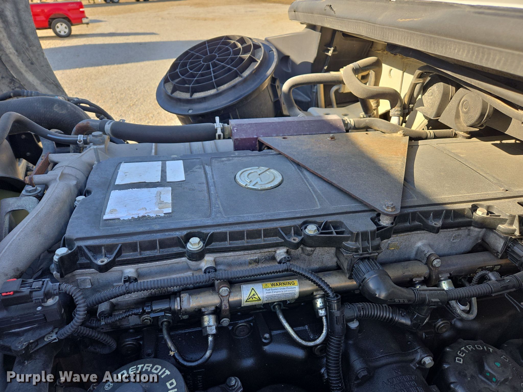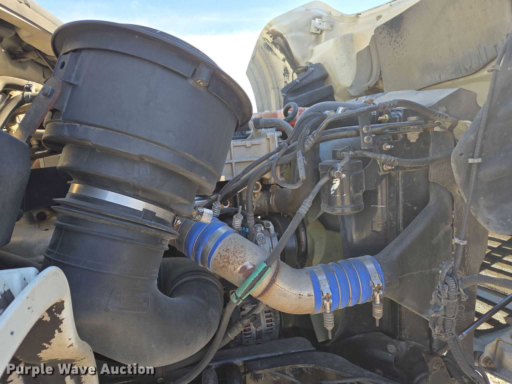 2011 Freightliner M2 semi truck. Miles: 583,490 on odometer, Hours: 17,213 on meter, VIN: 1FUBC5DV2BDAZ5364. Engine Detroit Diesel, Displacement: 12.8L, Cylinders: 6, Fuel type: Diesel, Engine brake. Transmission Eaton Fuller, Manual, Speed: 10. Chassis Axles: Single, Suspension: Air, Brakes: Air, Truck chassis: 10', GVWR: 34,700 lbs FAWR: 12,000 lbs, RAWR: 22,700 lbs. Interior AC, Heat, Heated mirrors, Cruise control, Air ride cab. Features Deck plate: Steel, Fifth wheel type: Air operated, Sliding, Fuel tank: Dual. Tires Size: 295/75R 22.5. Notes Dash warning indicator: Check engine, ABS. Kansas title. Title distribution may be delayed up to 14 days from verification of funds. Topeka, KS 66609