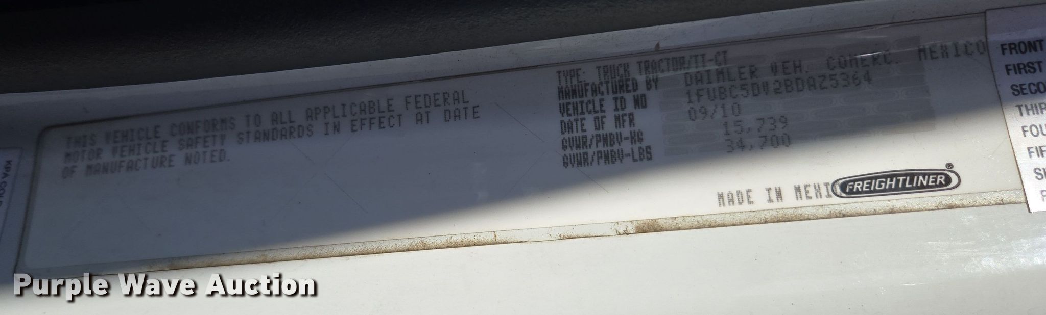 Purple Wave is selling a used Truck Tractor in Kansas. This item is a 2011 Freightliner M2 semi truck with the following: Miles: 583,490 on odometer, Hours: 17,213 on meter, VIN: 1FUBC5DV2BDAZ5364