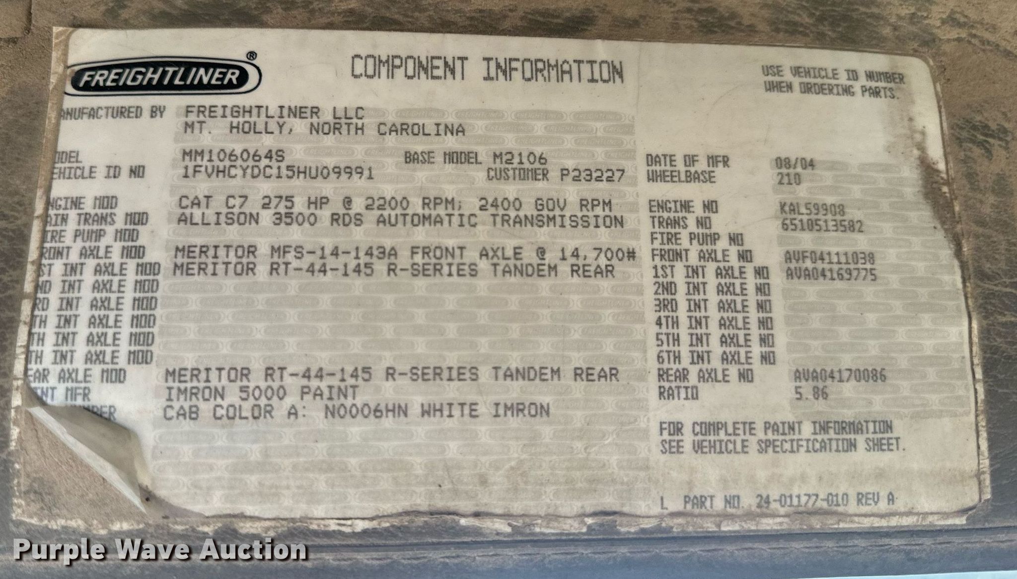 Take a look at this used 2005 Freightliner Business Class M2 truck cab and chassis being sold on April 17th, 2025 in the SOLD! April 17 Truck and Trailer Auction made by Freightliner. Take a look at all of the item information below or take a look at similar auctions for Trucks.