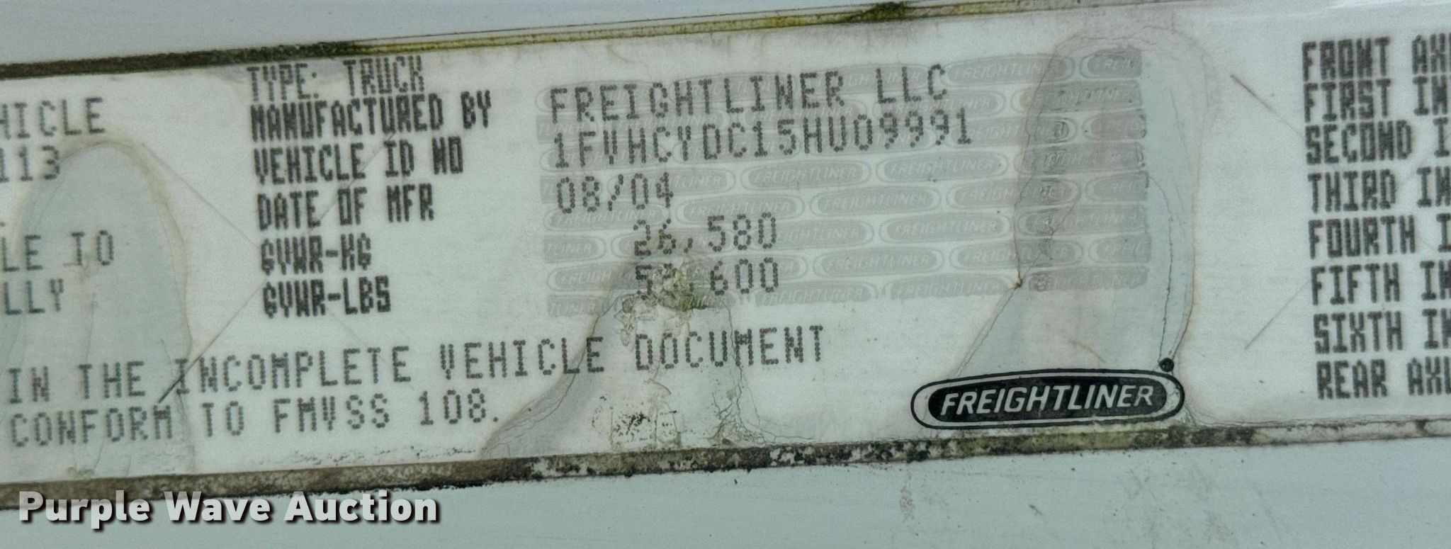 Purple Wave is selling a used Truck Chassis in Missouri. This item is a 2005 Freightliner Business Class M2 truck cab and chassis with the following: Miles: 286,772 on odometer, VIN: 1FVHCYDC15HU09991