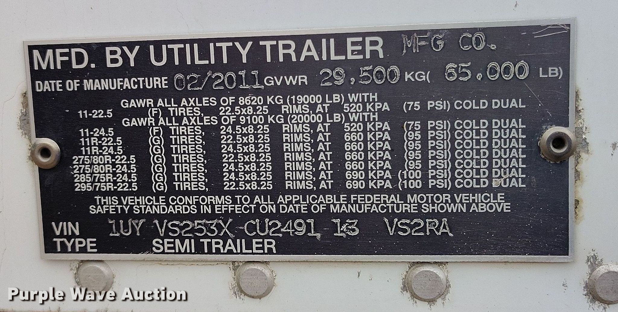 Purple Wave is selling a used Refrigerated Van Trailer in Kansas. This item is a 2012 Utility Trailers VS2RA refrigerated van trailer with the following: VIN: 1UYVS253XCU249113