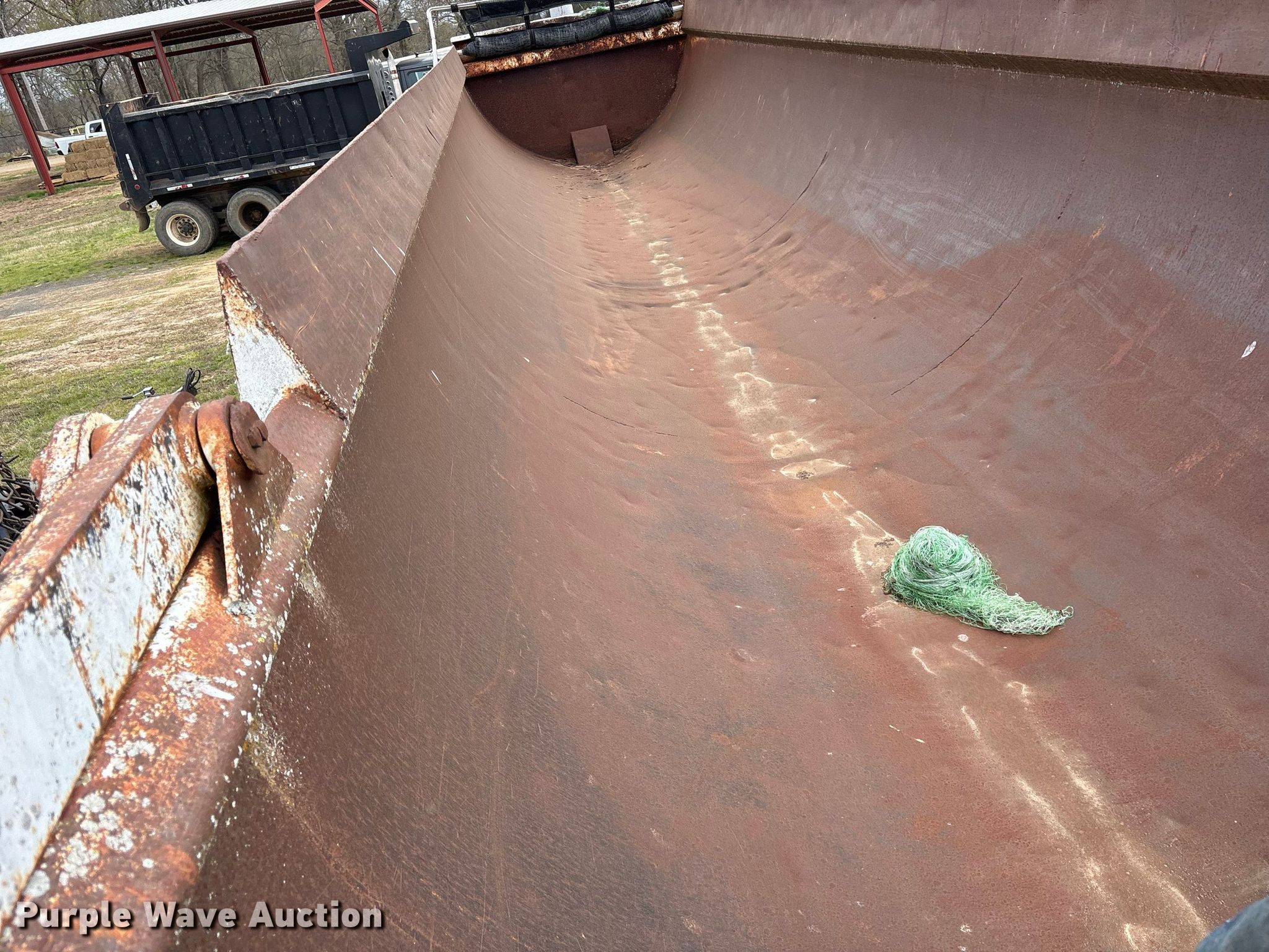 1997 Ranch end dump trailer. VIN: 1R9ESC502VL008483. Dimensions Overall: 36' 6" L x 8' 6" W, Body: 34' L x 8' 6" W, Side height: 4'. Features Body type: Steel, Ram: Single, End gate: Air operated, Roll tarp. Chassis Landing gear: Dual, Suspension: Spring, Brakes: Air, Axles: Tandem, GVWR: 70,000 lbs, GAWR: 20,000 lbs. Tires Steel wheels, Size: 11R24.5. Arkansas title. Title distribution may be delayed up to 14 days from verification of funds. Don - Warren Cattle Company. Lavaca, AR 72941