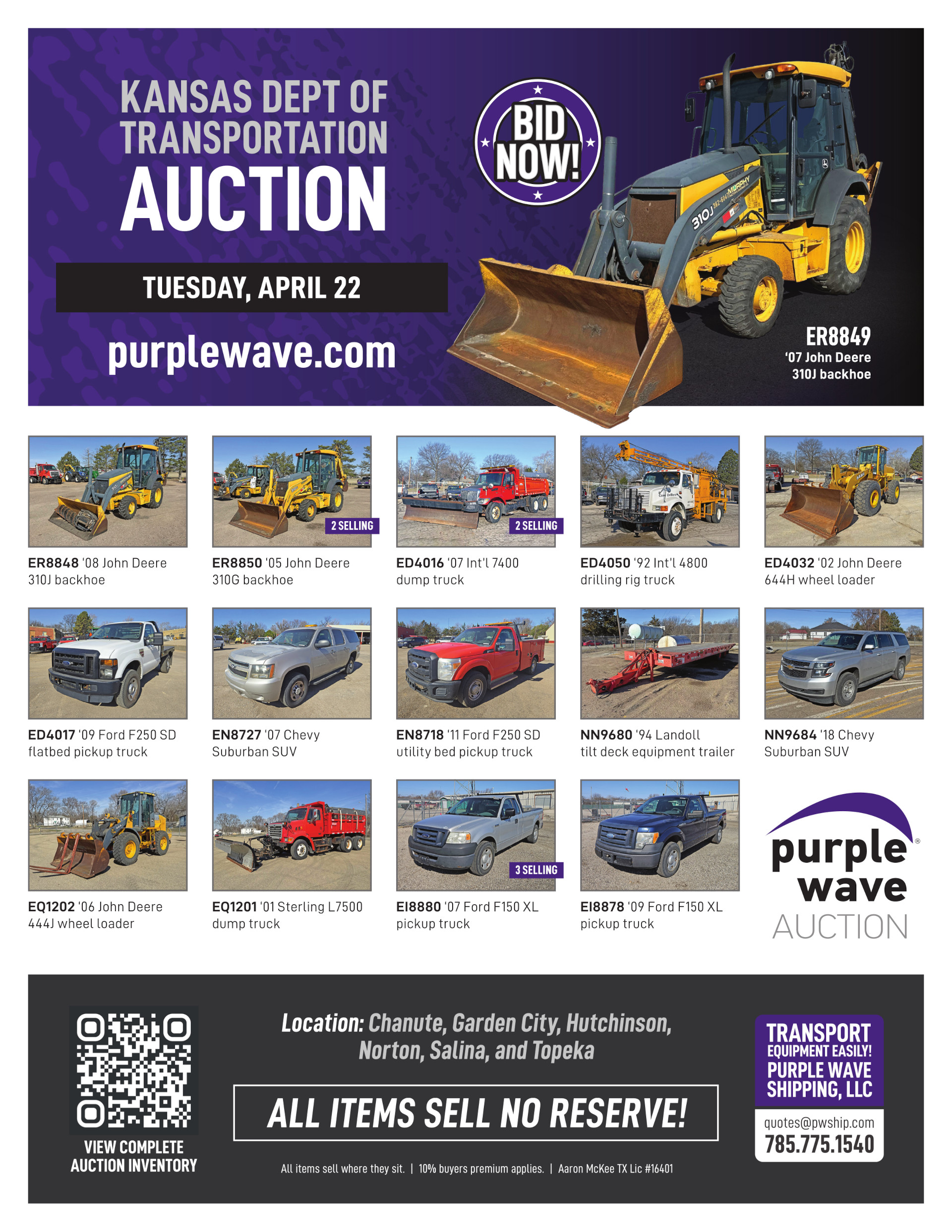 SOLD! Kansas Department of Transportation Auction | 4-22-2025