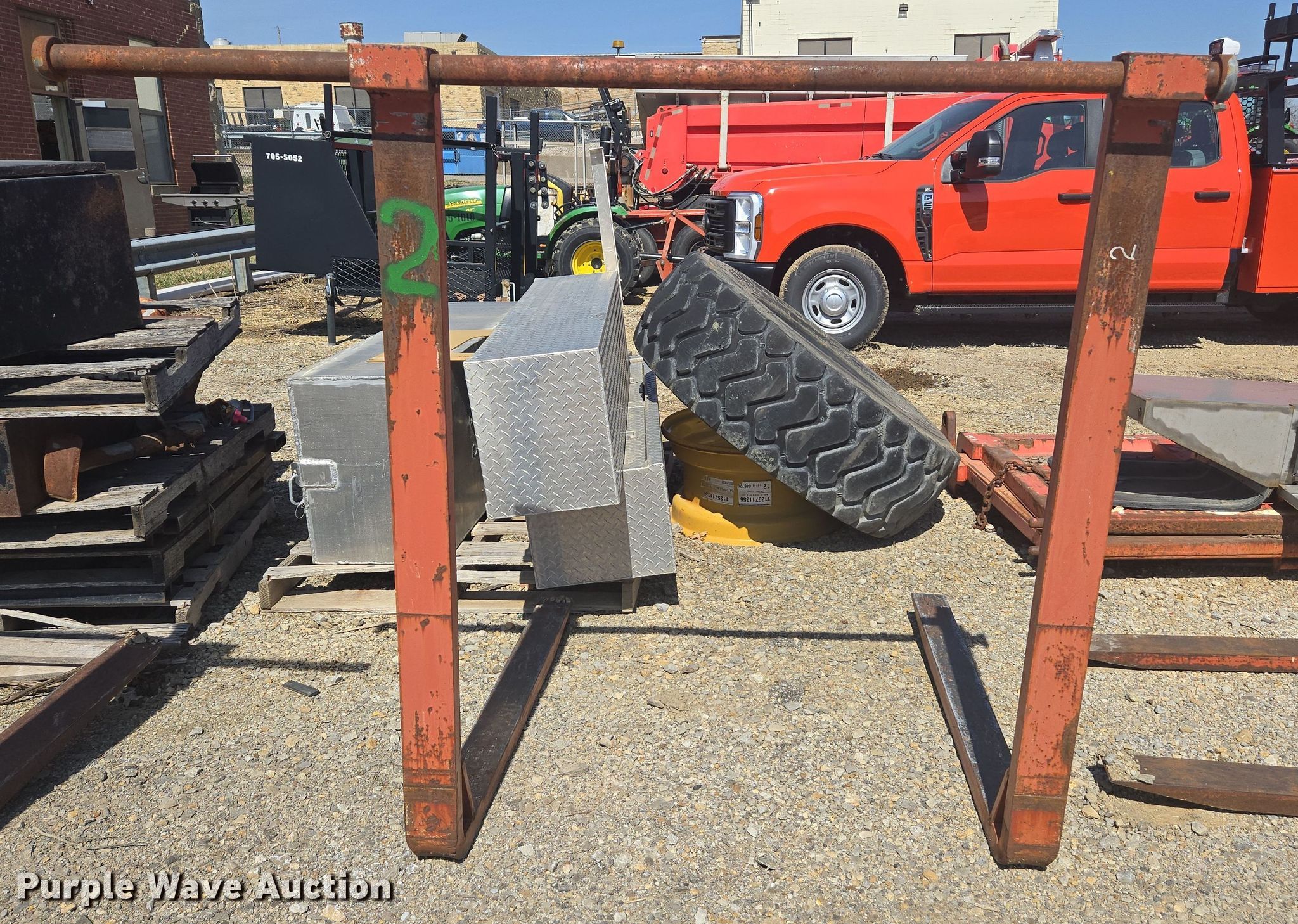Purple Wave is selling a used Wheel Loader Attach. in Kansas. This item is a 44" L wheel loader forks with the following: KDOT ID: 10462