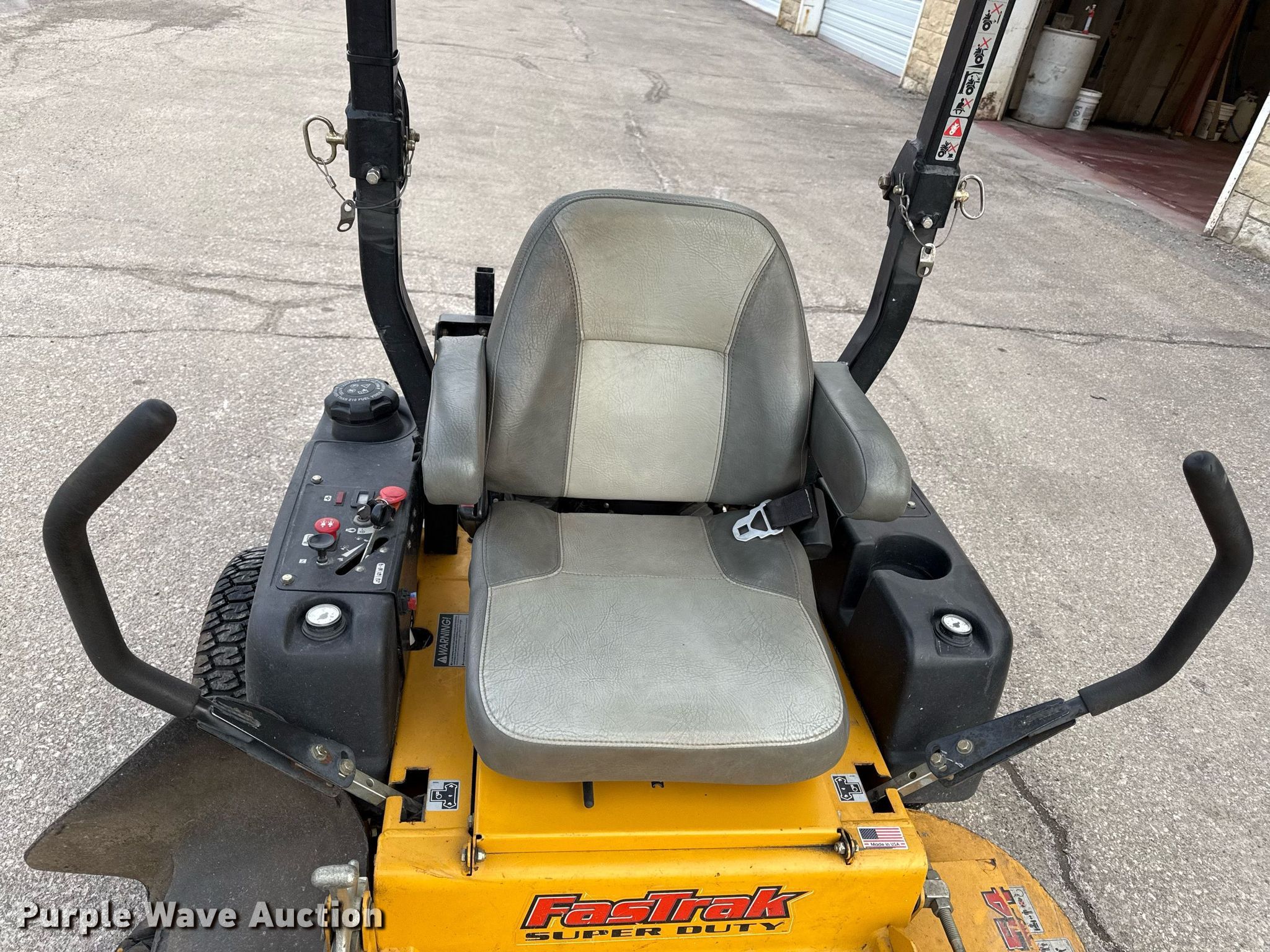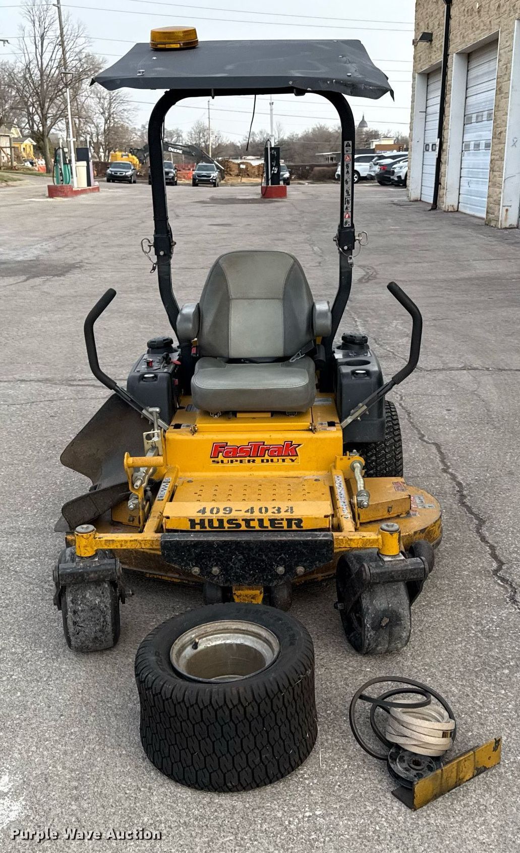 Purple Wave is selling a used Lawn Mower in Kansas. This item is a Hustler Fastrak Super Duty ZTR lawn mower with the following: Hours: 696 on meter, Cutting width: 54", Serial: 14037268, KDOT ID: 409-4034