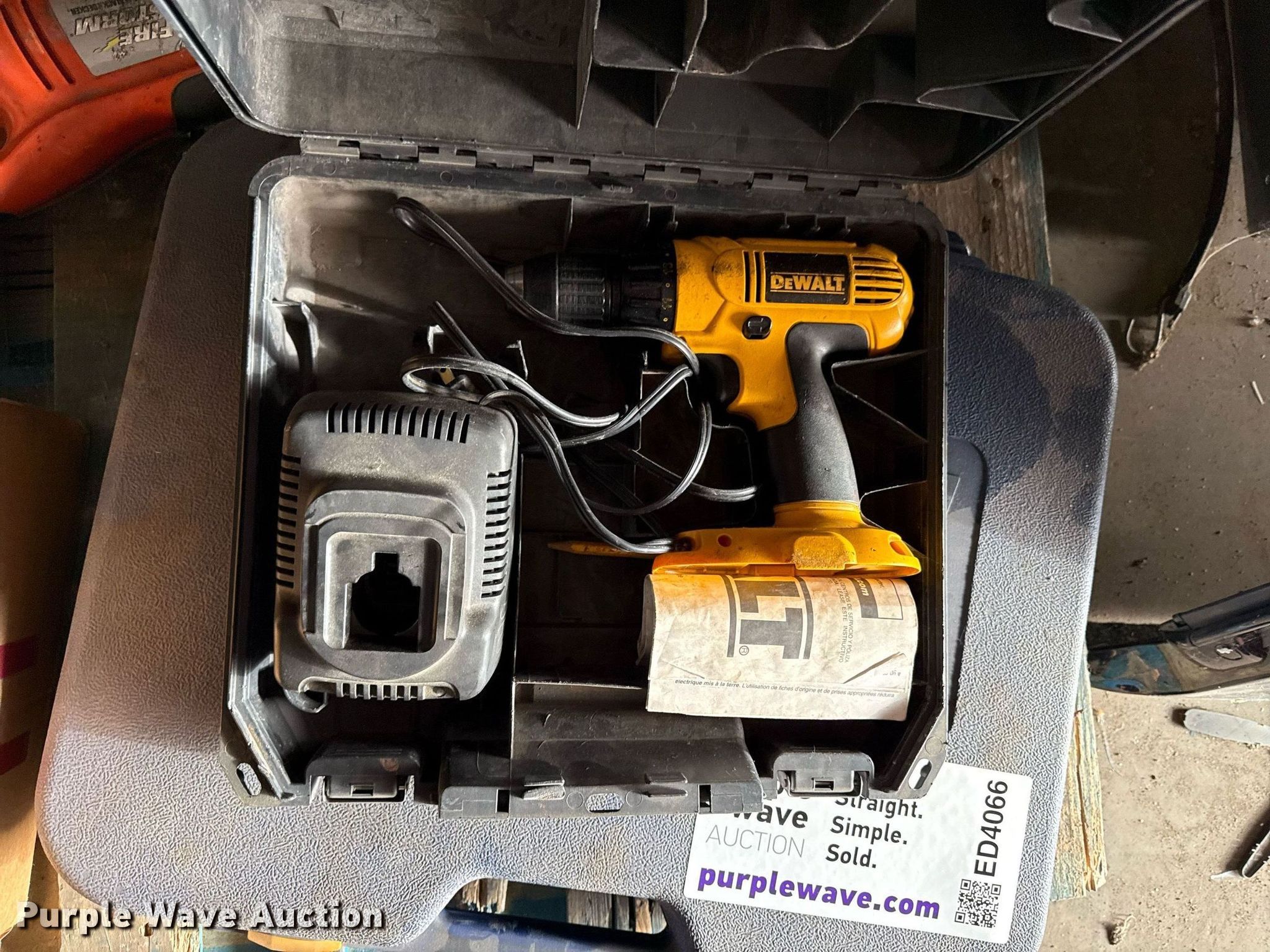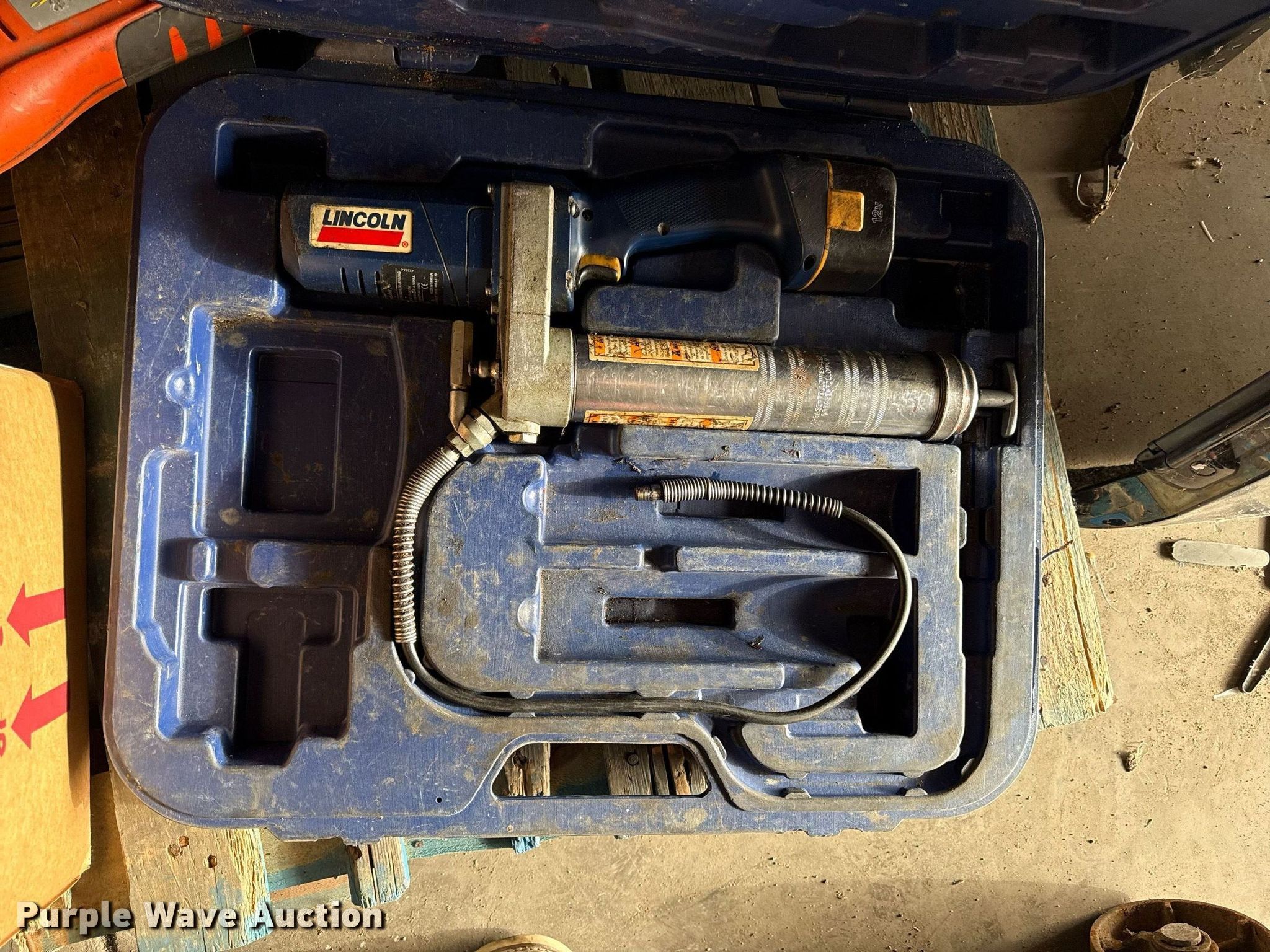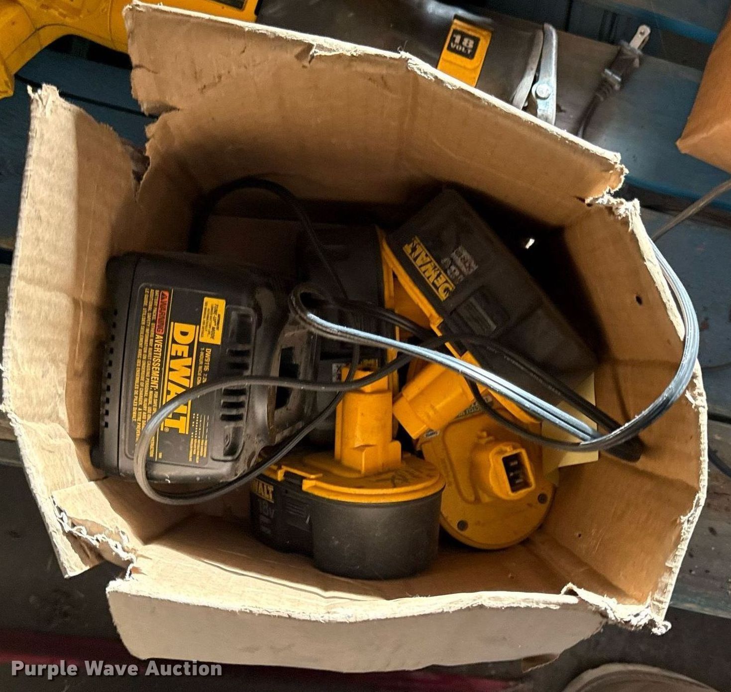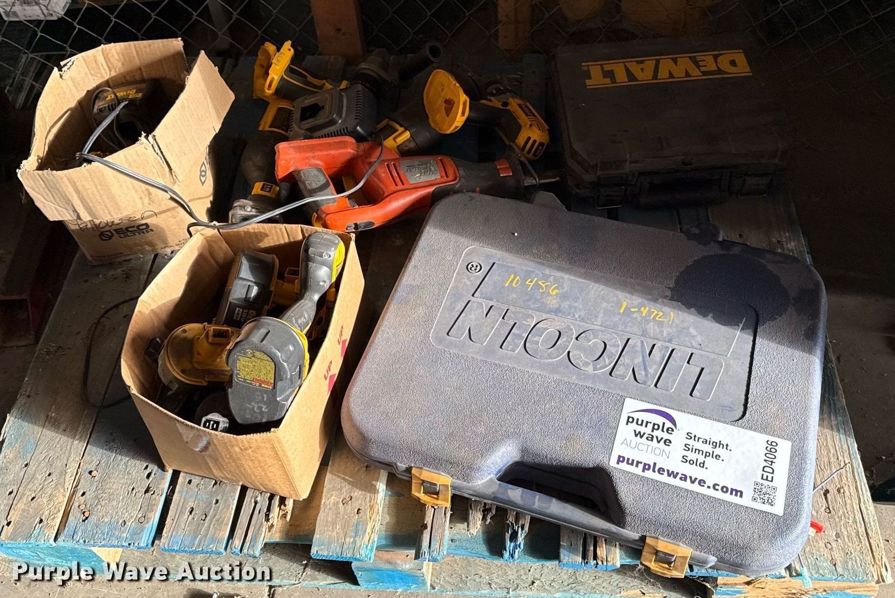 Purple Wave is selling a used Tools in Kansas. This item is a Tools with the following: KDOT ID: 10486, (4) Drills, (2) Sawzall, Lincoln grease gun, Batteries