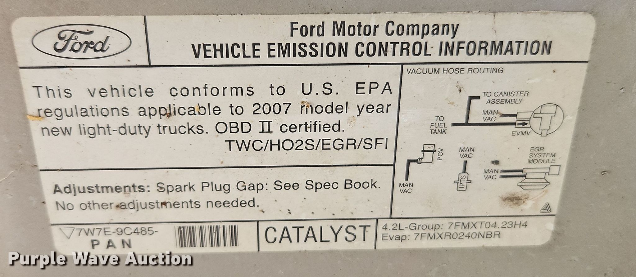 2007 Ford F150 XL pickup truck. Miles: 180,903 on odometer, VIN: 1FTRF12287KC90934, KDOT ID: 053-4027. Engine Displacement: 4.2L V6 OHV, Cylinders: 6, Fuel type: Gas. Transmission Automatic. Interior AC, Heat, Cruise control. Tires Size: 245/70R17. Notes Dash warning indicator: TPMS. Titles will be distributed after confirmation of payment and removal. Kansas title. Title distribution may be delayed up to 30 days from verification of funds. Kansas Dept. of Transportation - Chanute. Chanute, KS 66720