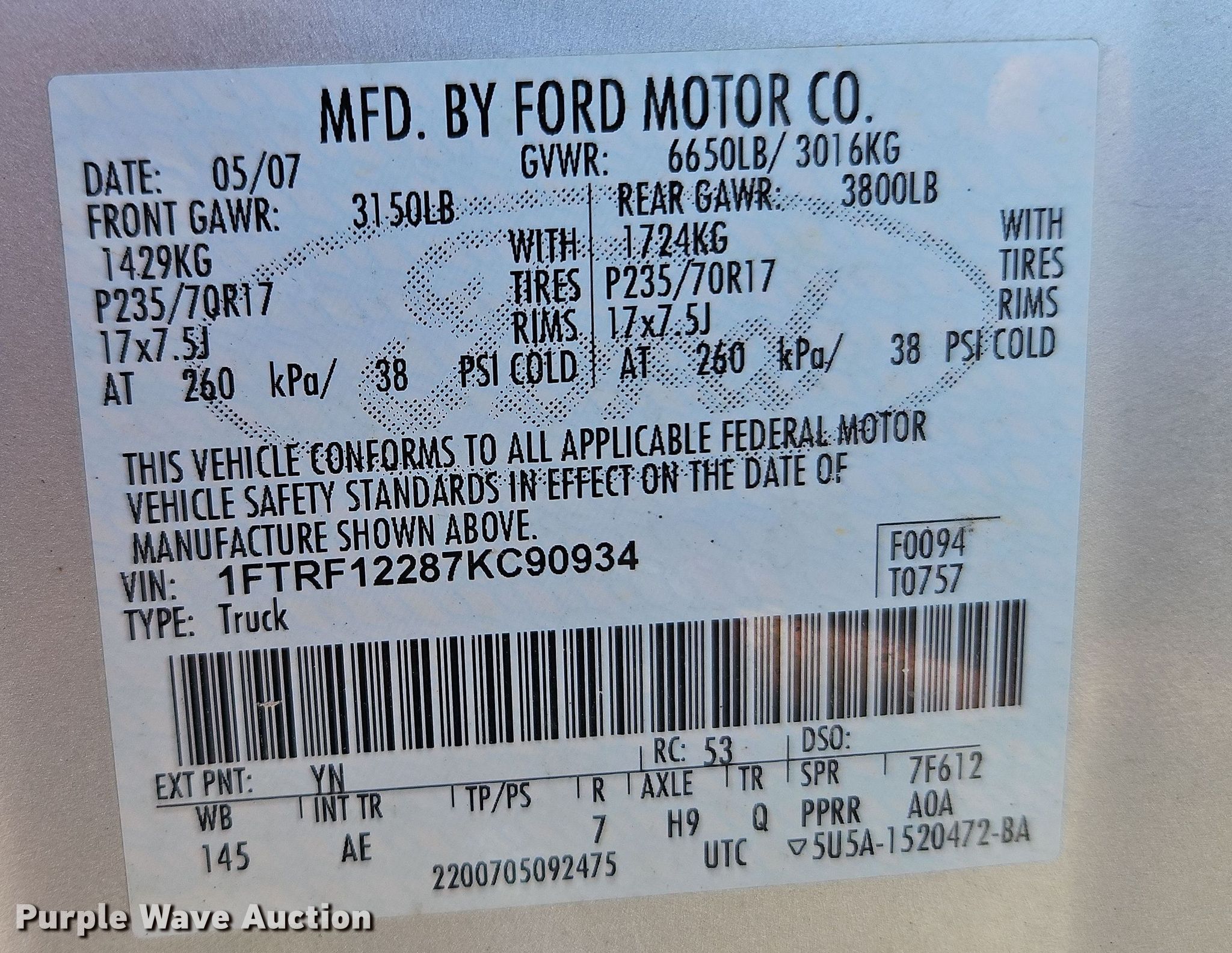 Purple Wave is selling a used 1/2 Ton Pickup or Van in Kansas. This item is a 2007 Ford F150 XL pickup truck with the following: Miles: 180,903 on odometer, VIN: 1FTRF12287KC90934, KDOT ID: 053-4027