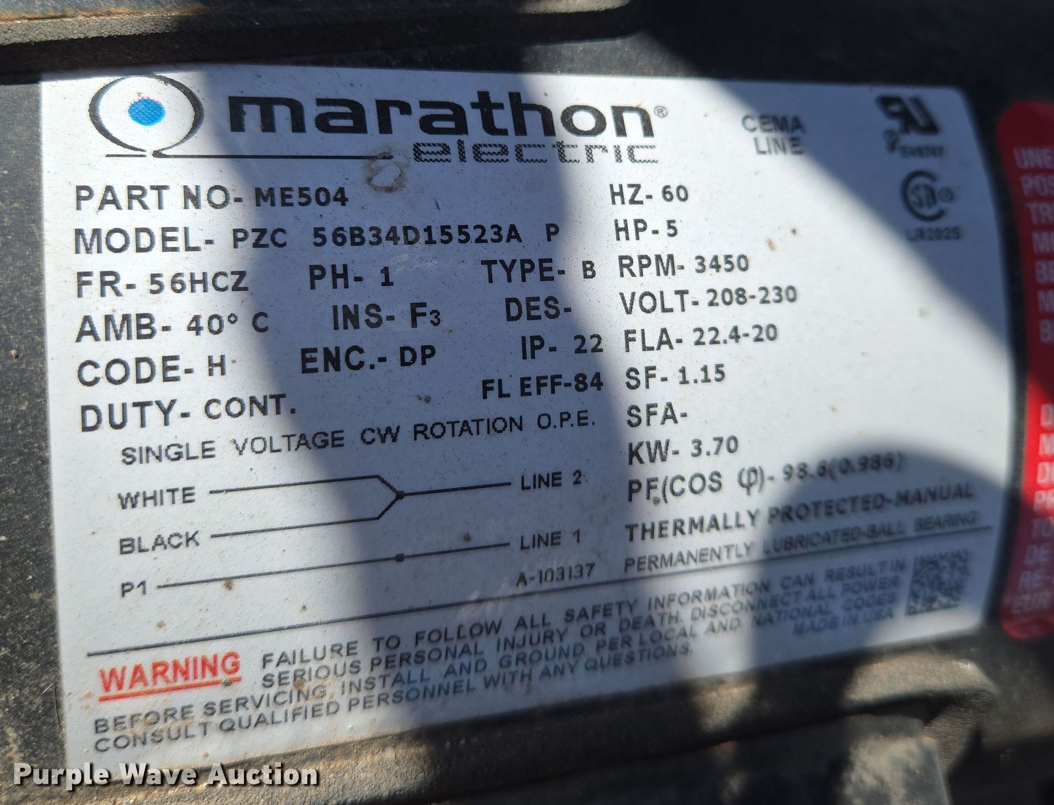 2015 Hydrotek hot pressure washer. Serial: 201501399, KDOT ID: 875-5115. Electric Motor Marathon, HP: 5, Volts: 208-230, Phase: Single. Notes Non-operational unit. Kansas Dept. of Transportation-Shop. Hutchinson, KS 67504