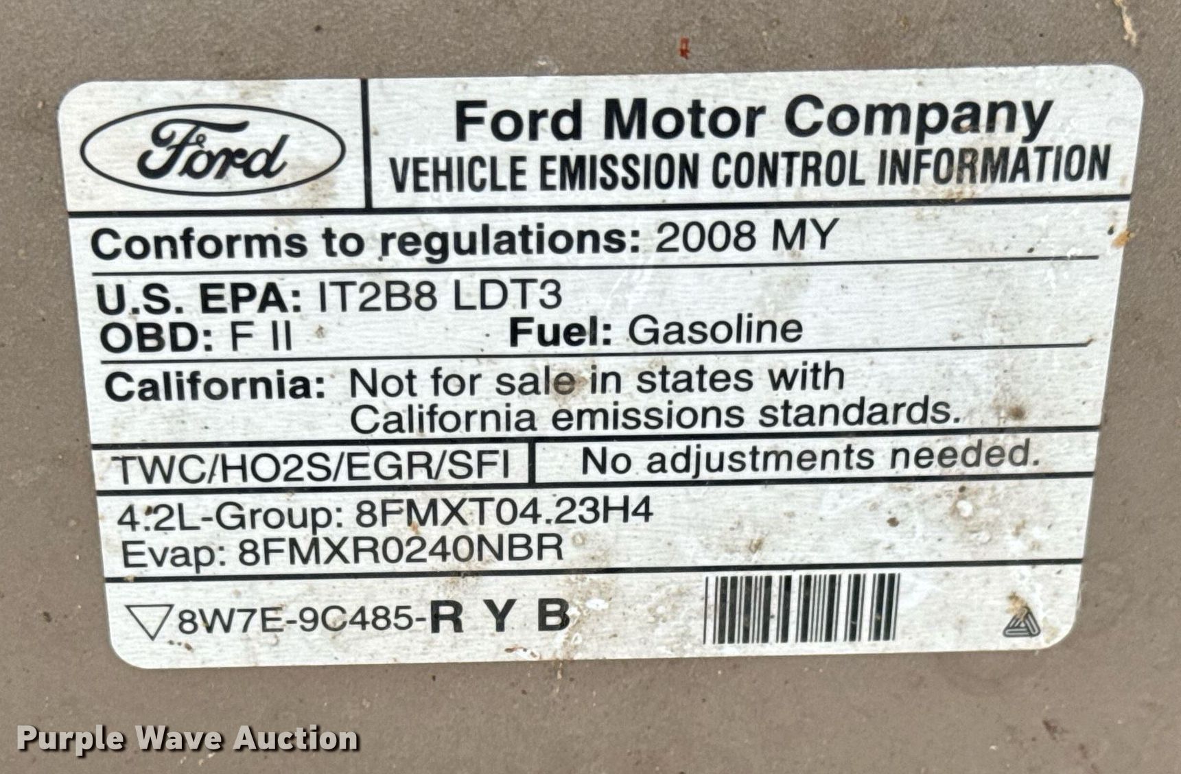 2008 Ford F150 XL pickup truck. Miles: 204,777 on odometer, VIN: 1FTRF12238KD60616, KDOT ID: 053-2038. Engine Displacement: 4.2L V6 OHV, Cylinders: 6, Fuel type: Gas. Transmission Automatic. Interior AC, Heat, Cruise control. Tires Size: 235/75T17. Notes Battery needs replaced, Non-operational HVAC controls, Dash warning indicator: Check engine, TPMS, Windshield chipped or cracked. Titles will be distributed after confirmation of payment and removal. Kansas title. Title distribution may be delayed up to 30 days from verification of funds. Kansas Dept. of Transportation. Salina, KS 67401