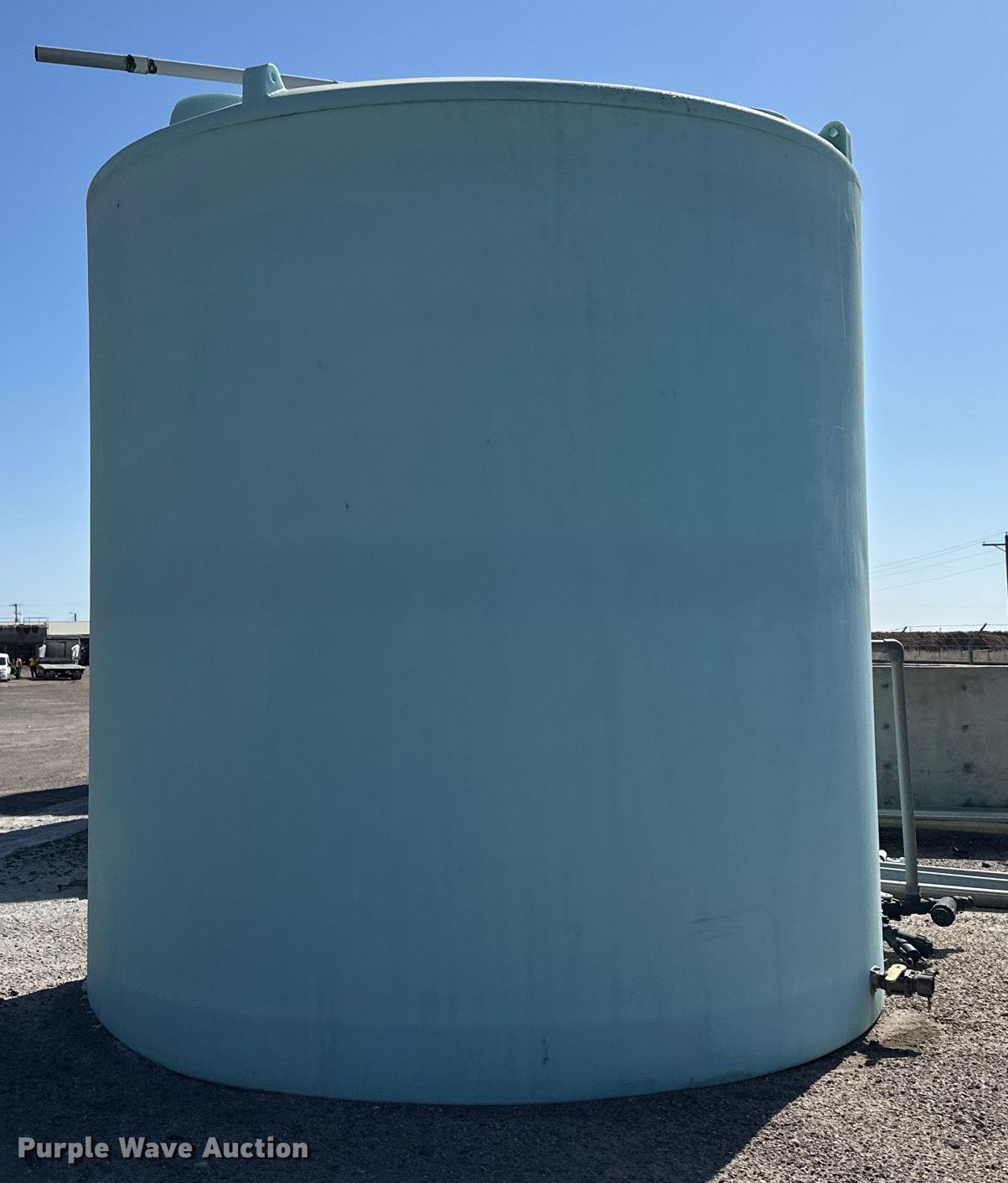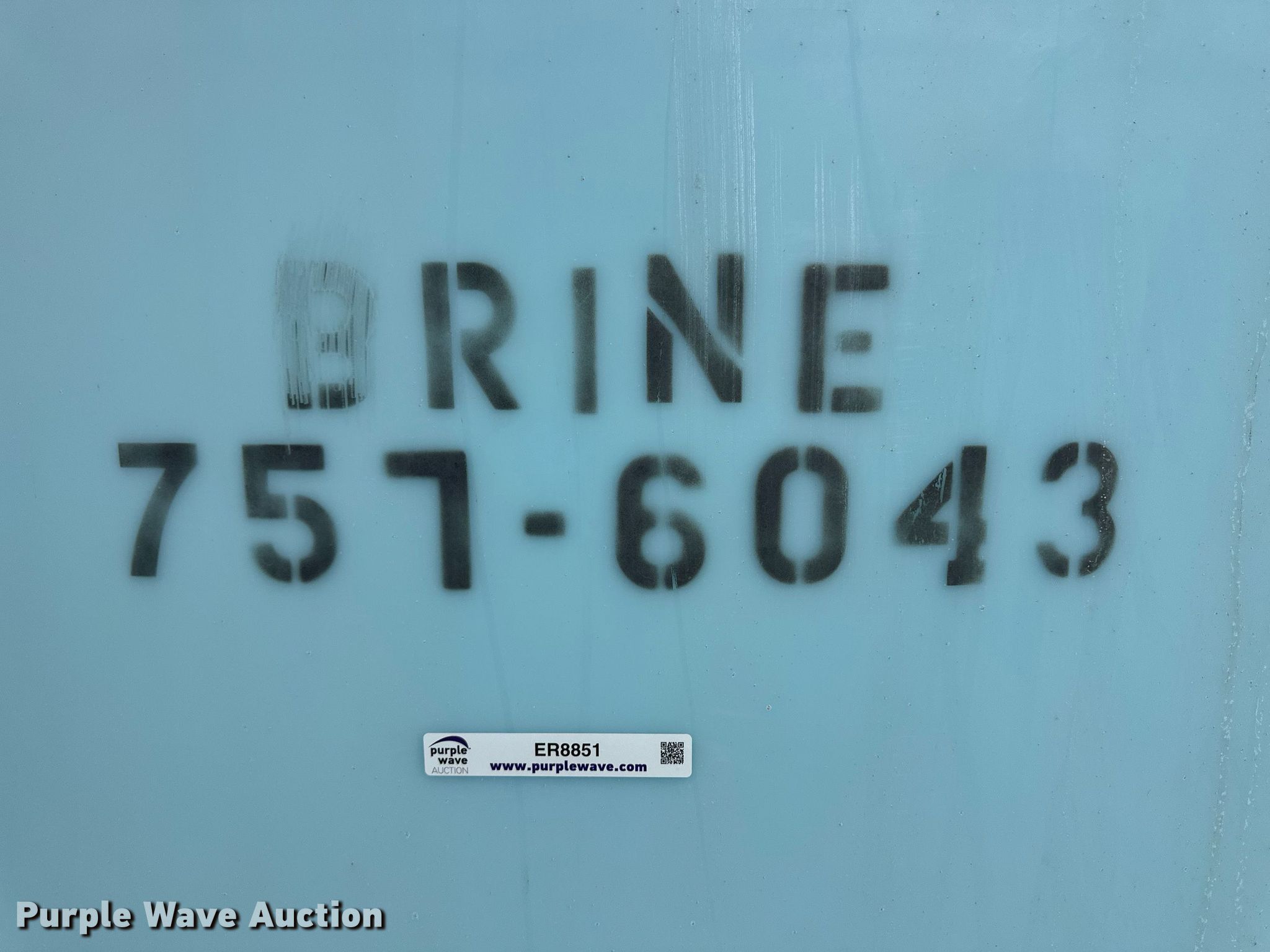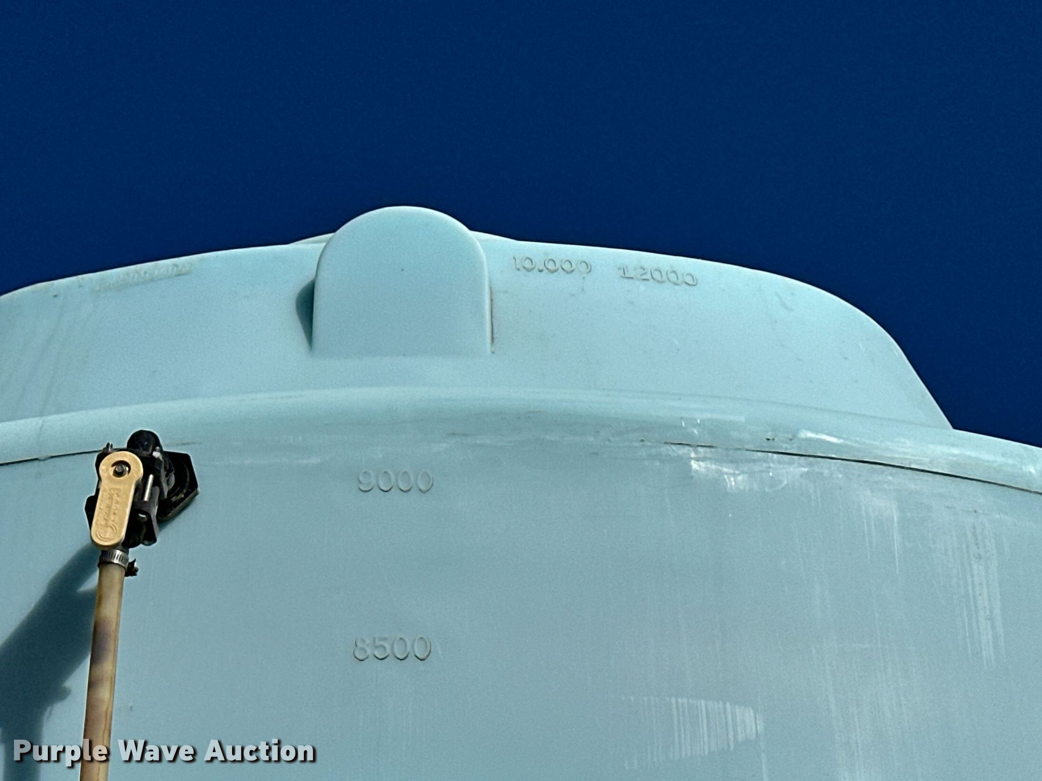 Purple Wave is selling a used Tanks in Kansas. This item is a Salt brine poly storage tank with the following: Capacity: 10,000 gallons, KDOT ID: 757-6043, Tank has exceeded its designed life as a liquid storage tank, Similar tanks this age have been known to fail