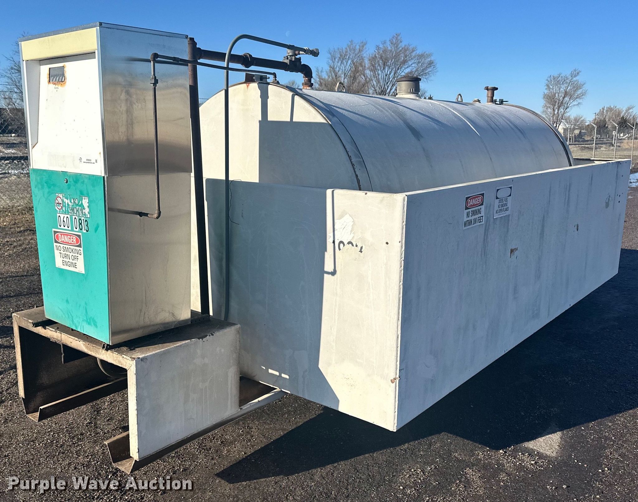 Purple Wave is selling a used Fuel and Lube in Kansas. This item is a Diesel storage tank with the following: KDOT ID: 060-1194, Capacity: 2,000 gallons, Pump, Tank has exceeded its designed life as a liquid storage tank, Similar tanks this age have been known to fail