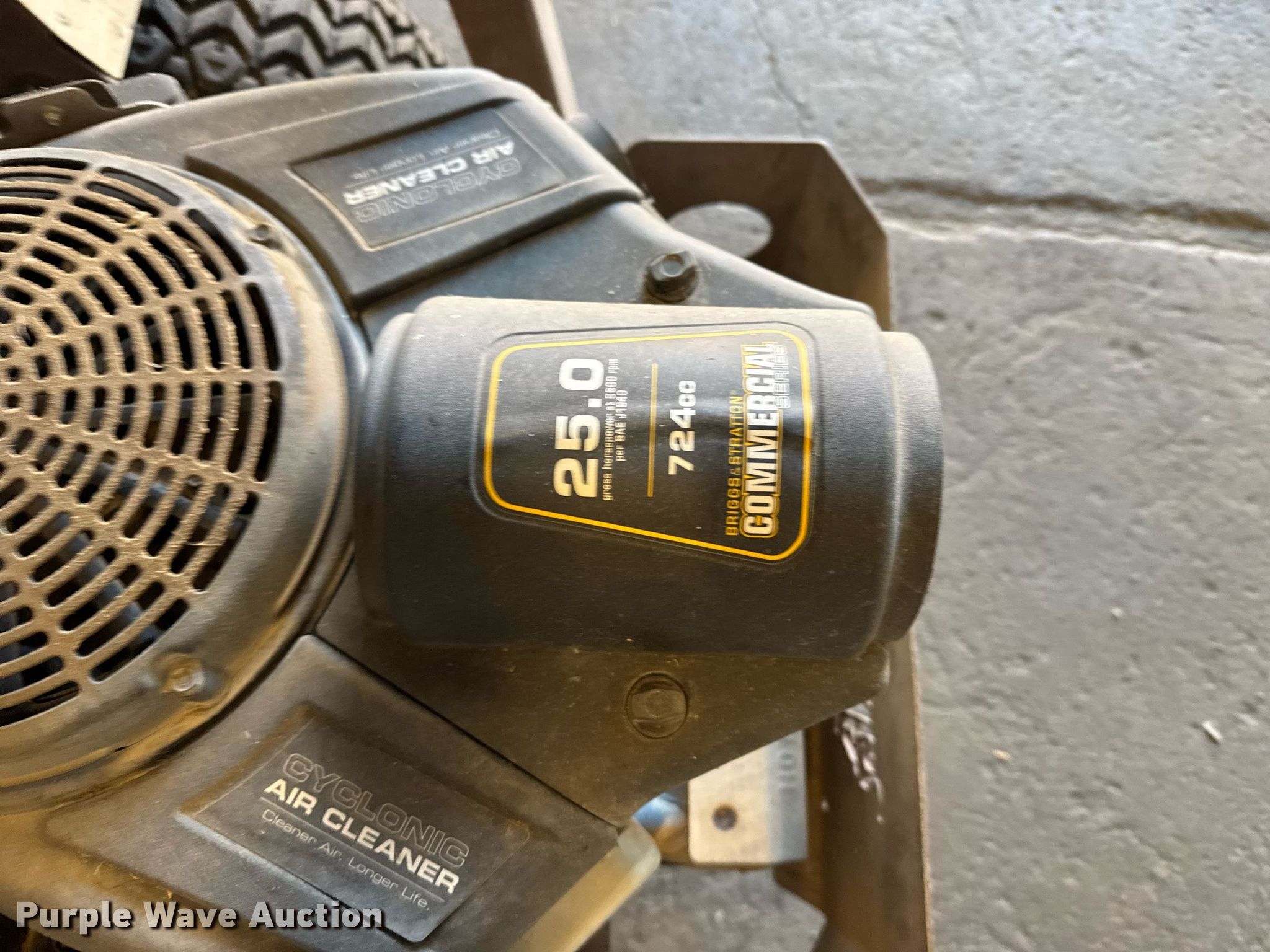 2014 Grasshopper 126 ZTR lawn mower. Hours: 733 on meter, Cutting width: 52", Serial: 6415757, KDOT ID: 409-3034. Engine Briggs & Stratton 44T9770009G1, Serial: 1808310892360, Displacement: 724 cc, Cylinders: 2, Fuel type: Gas, HP: 25. Transmission Hydrostatic. Features Mower deck Width: 52", Grasshopper Duramax 52. Tires Front: 13x6.60-6 NHS, Rear: 255/50-10. Notes Non-operational mower deck, spindle broken. Kansas Department of Transportation - Norton. Norton, KS 67654