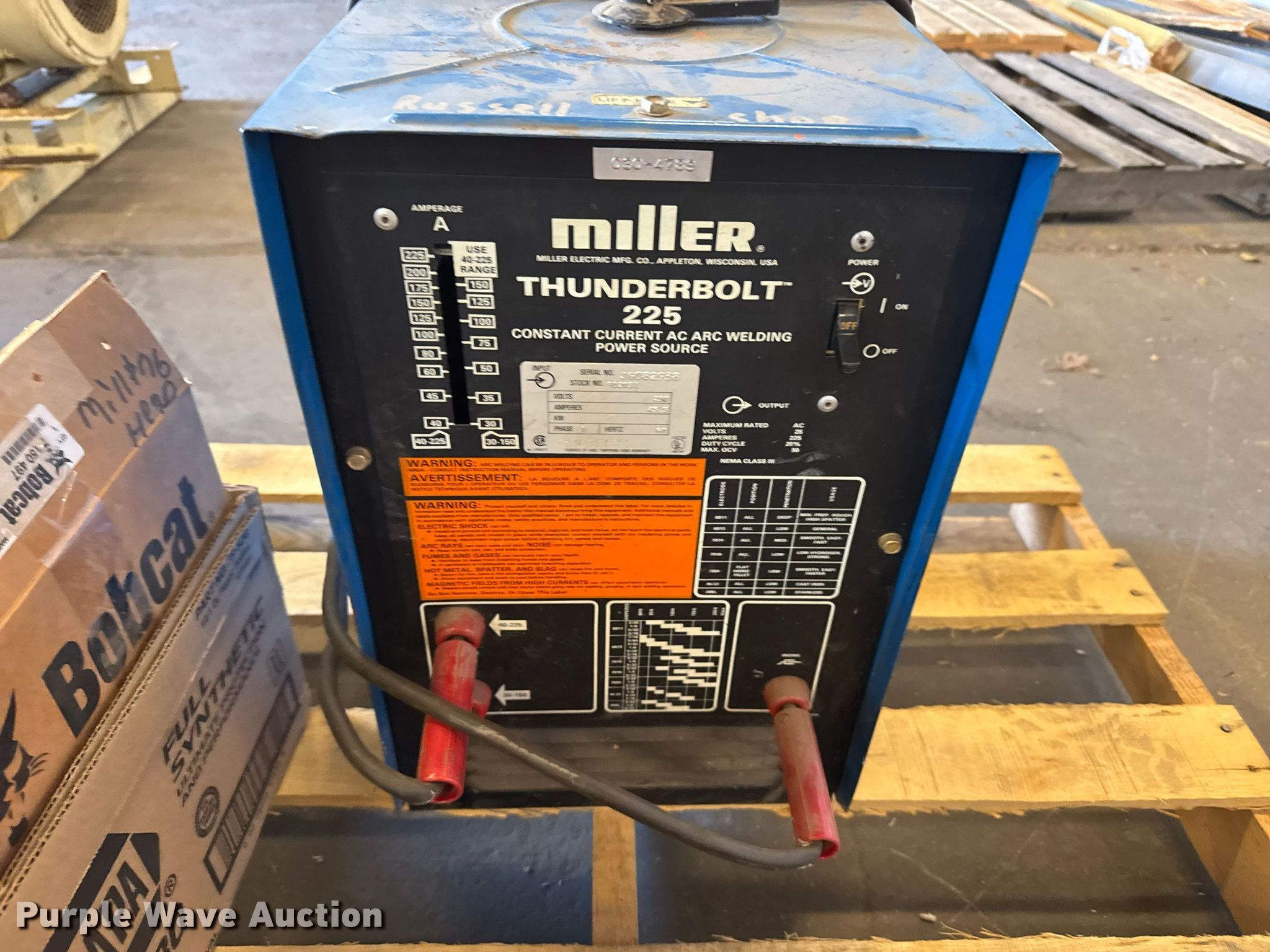 Purple Wave is selling a used Welder (Manual) in Kansas. This item is a Miller Thunderbolt 225 welder with the following: Serial: JG082938, KDOT ID: 3-2335, 2-2334