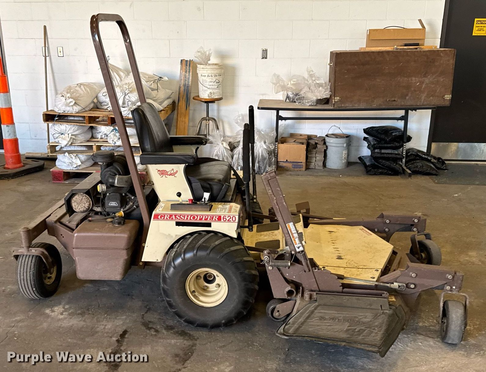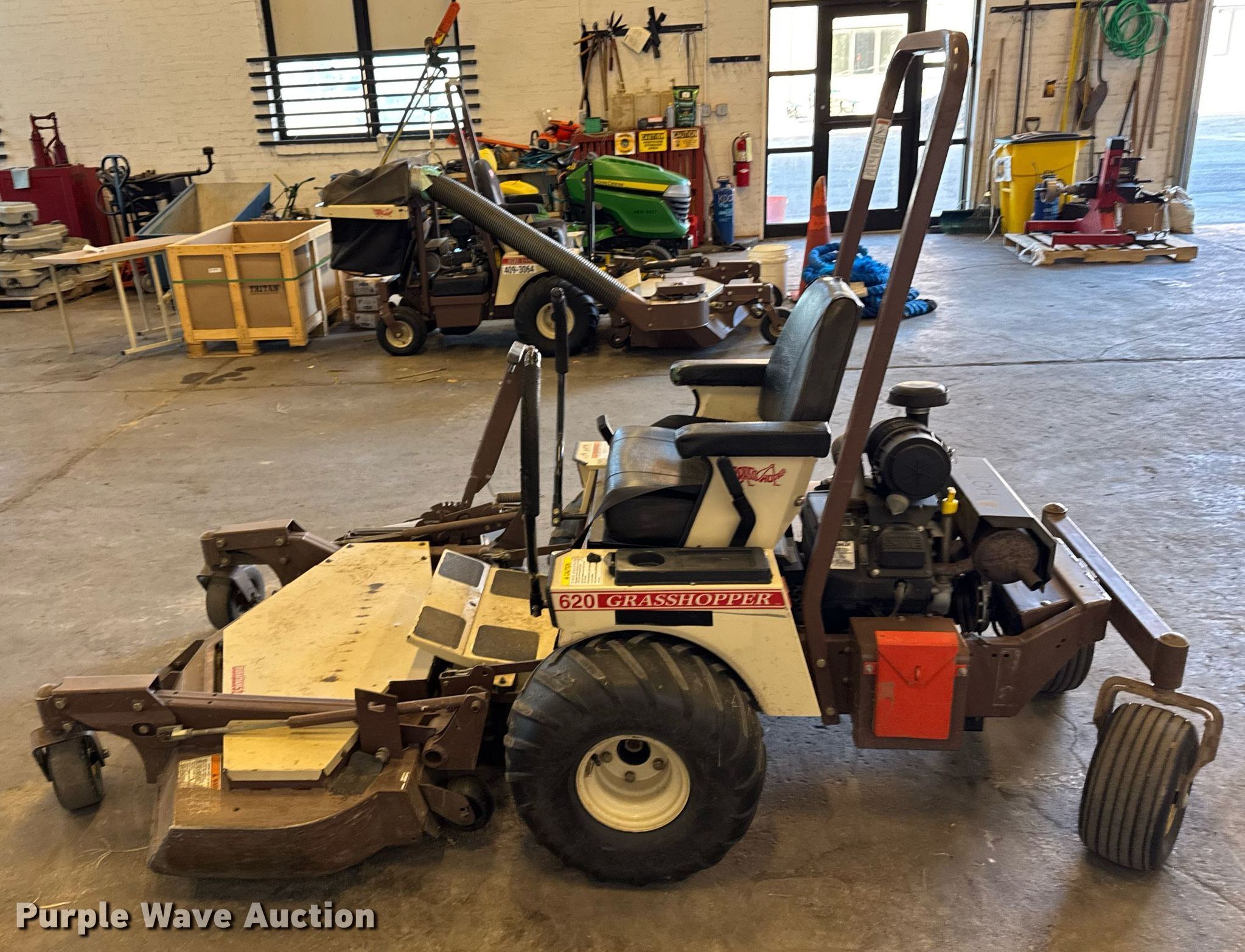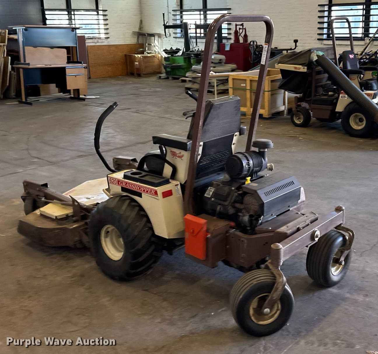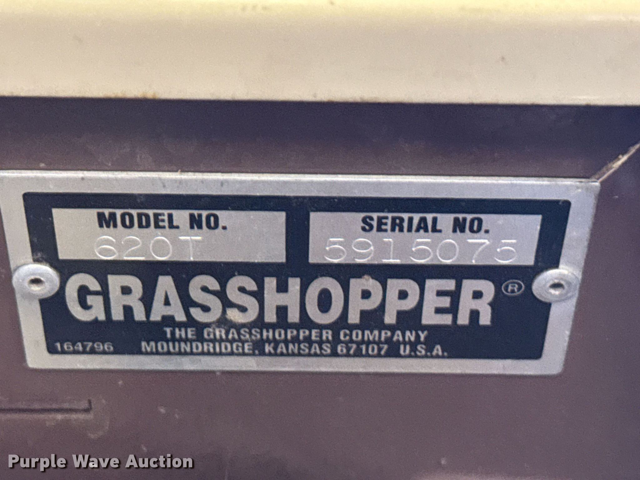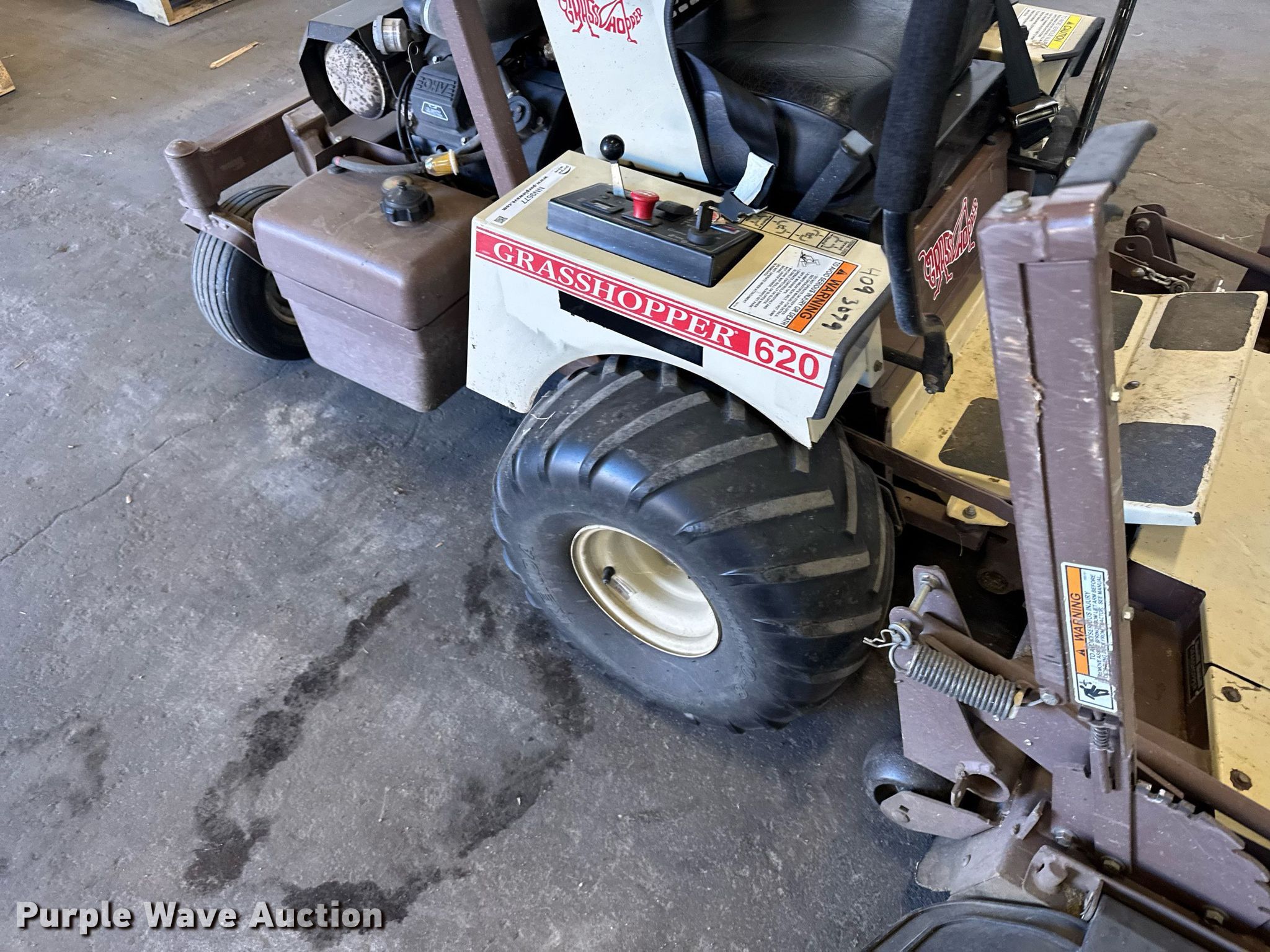 Purple Wave is selling a used Lawn Mower in Kansas. This item is a Grasshopper 620 ZTR lawn mower with the following: Hours: 590 on meter, Serial: 5915075, KDOT ID: 409-3079
