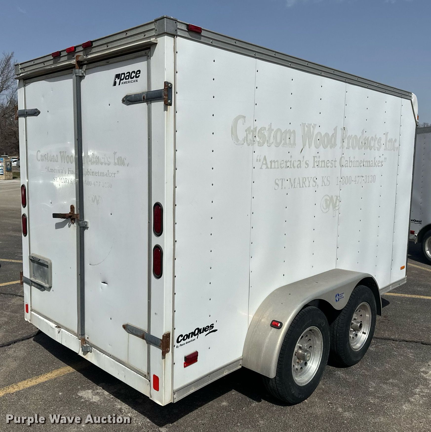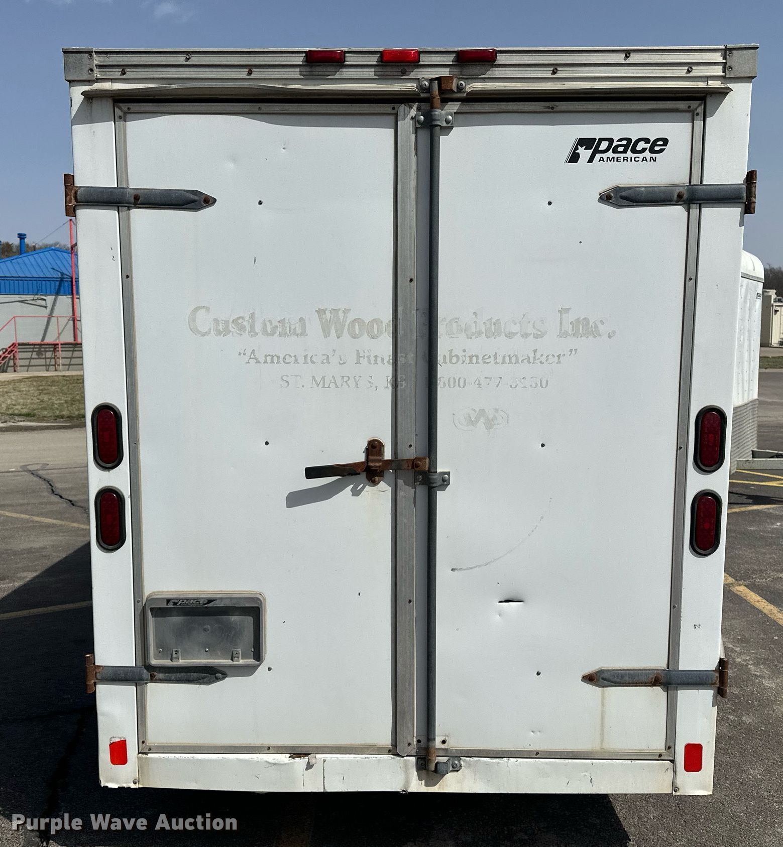 2004 Pace American enclosed cargo trailer. VIN: 47ZFB12274X030428. Dimensions Overall: 16' L x 94" W, Body: 11' 8" L x 68" W. Features Deck type: Wood. Chassis Ball hitch: 2 5/16", Landing gear: Single, Suspension: Torsion, Brakes: Electric, Axles: Tandem, GVWR: 7,000 lbs, GAWR: 3,500 lbs. Tires Steel wheels, Size: 205/75R15. Kansas title. Title distribution may be delayed up to 14 days from verification of funds. Custom Wood Products. Saint Marys, KS 66536