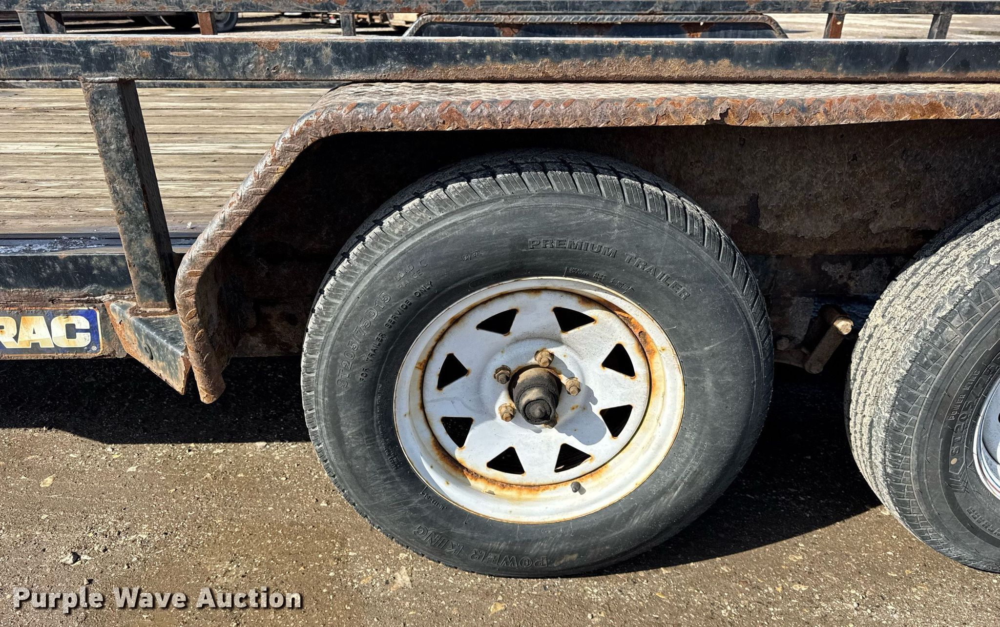 2017 Sure Trac utility trailer. VIN: 5JW1U1627H1155779, Unit #: ST6. Dimensions Overall: 20' L x 101" W, Deck: 16' L x 81" W, Deck height: 19", Ramps: Manual Length: 48". Features Deck type: Wood. Chassis Ball hitch: 2 5/16", Landing gear: Single, Suspension: Spring, Brakes: Electric, Axles: Tandem. Tires Steel wheels, Size: 205/75D15. Wisconsin title. Title distribution may be delayed up to 30 days from verification of funds. Ken Becker & Sons. Lannon, WI 53046