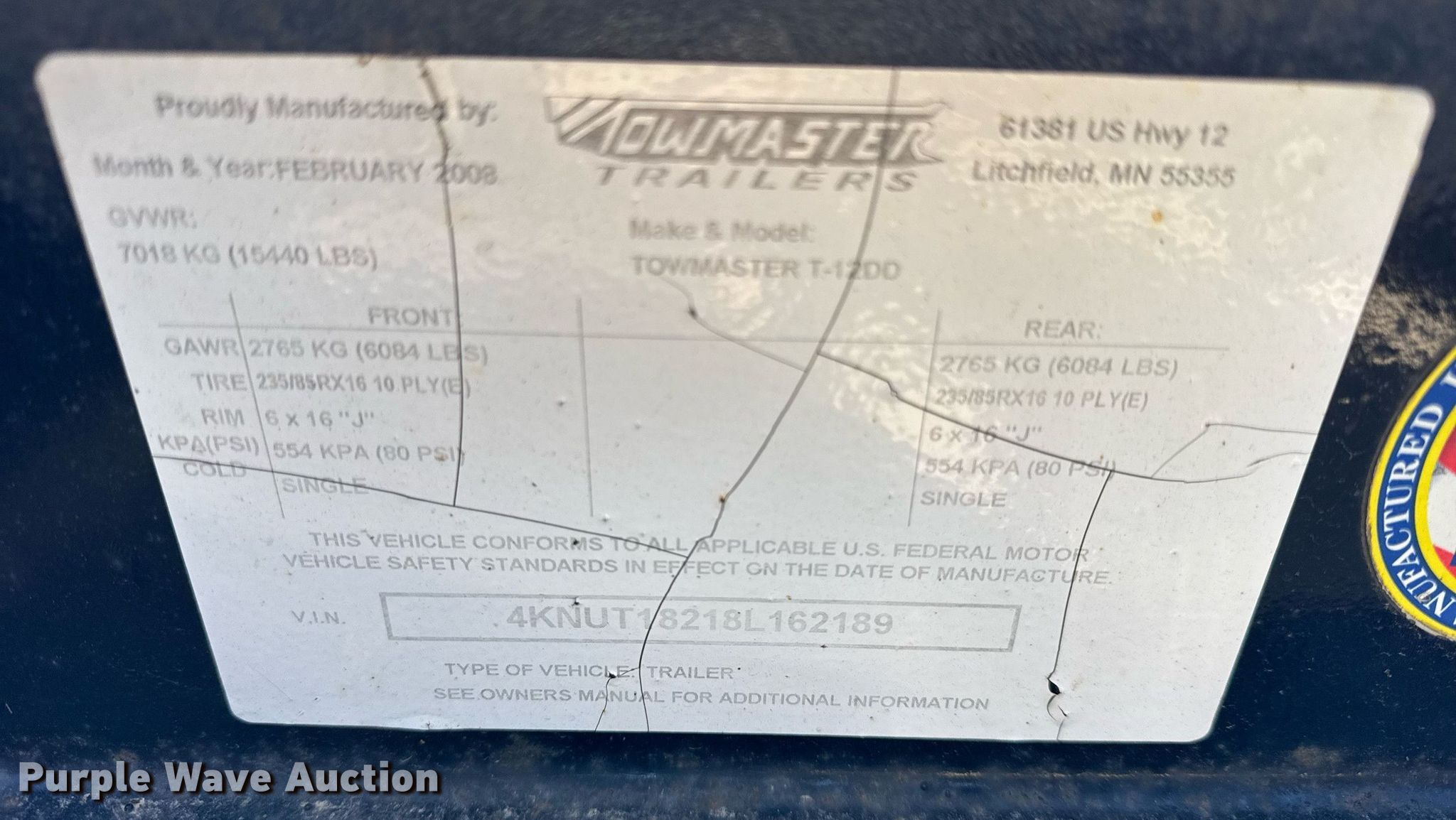 Purple Wave is selling a used Equip. Trailer in Wisconsin. This item is a 2008 Towmaster equipment trailer with the following: VIN: 4KNUT18218L162189
