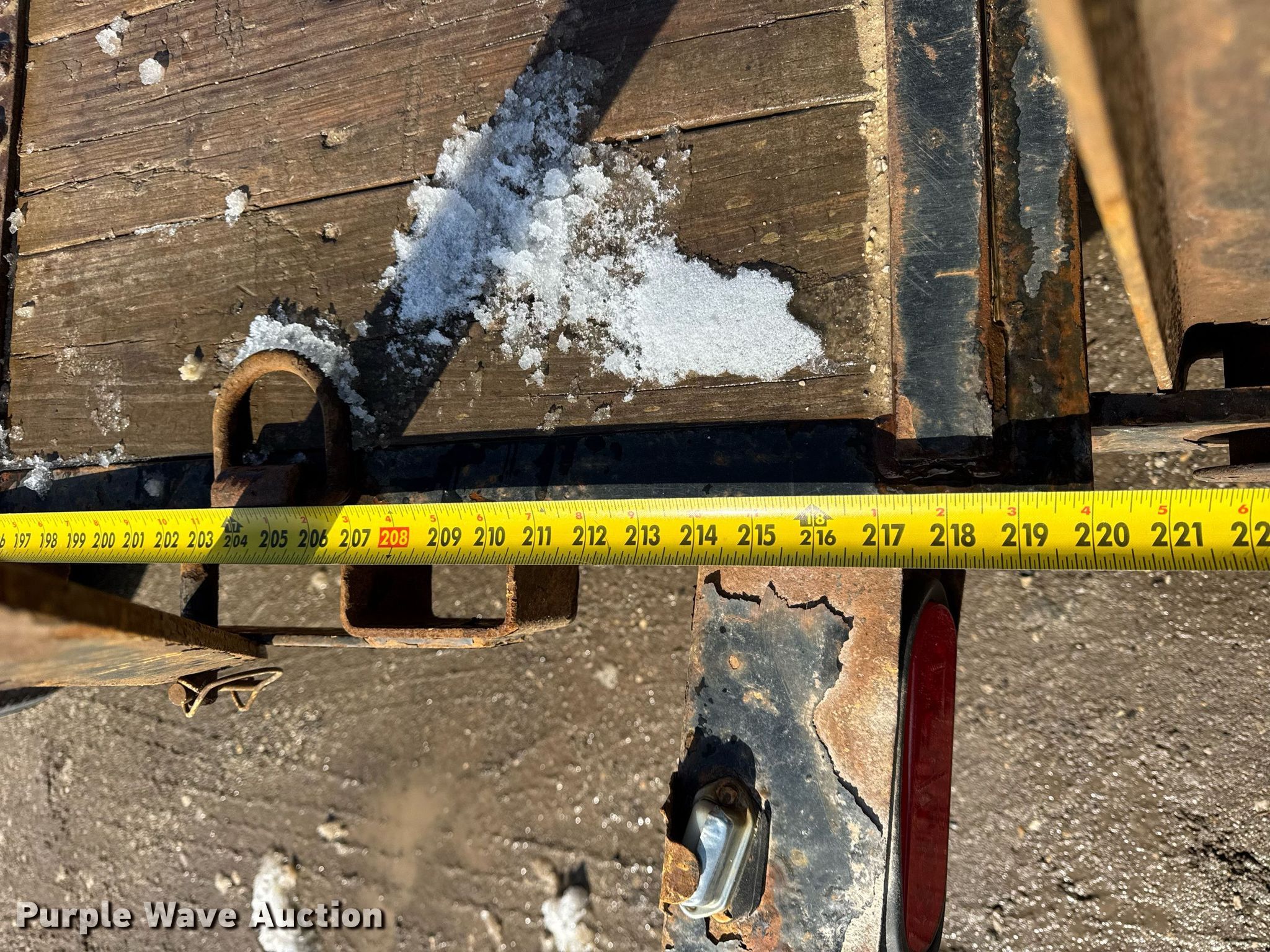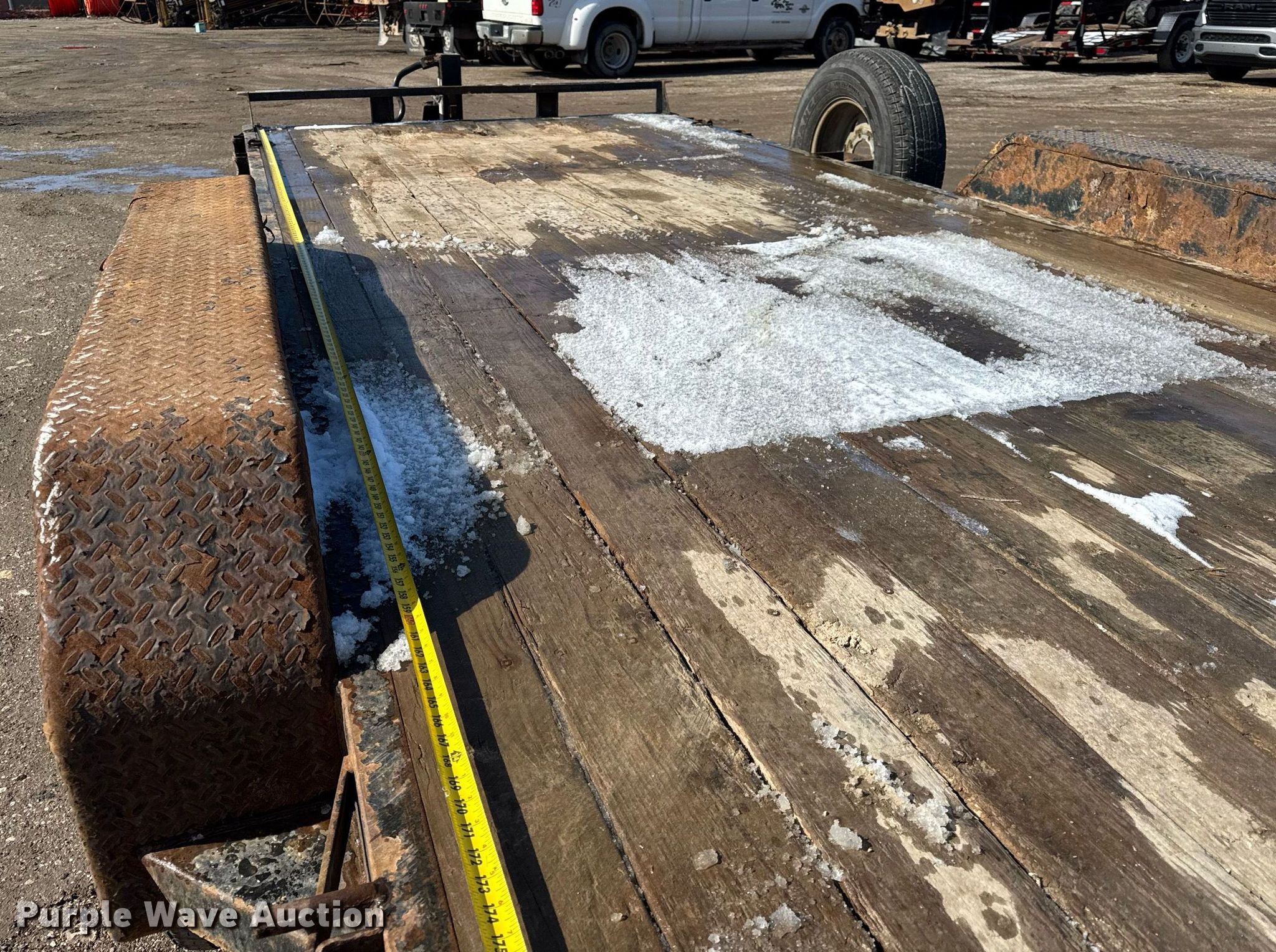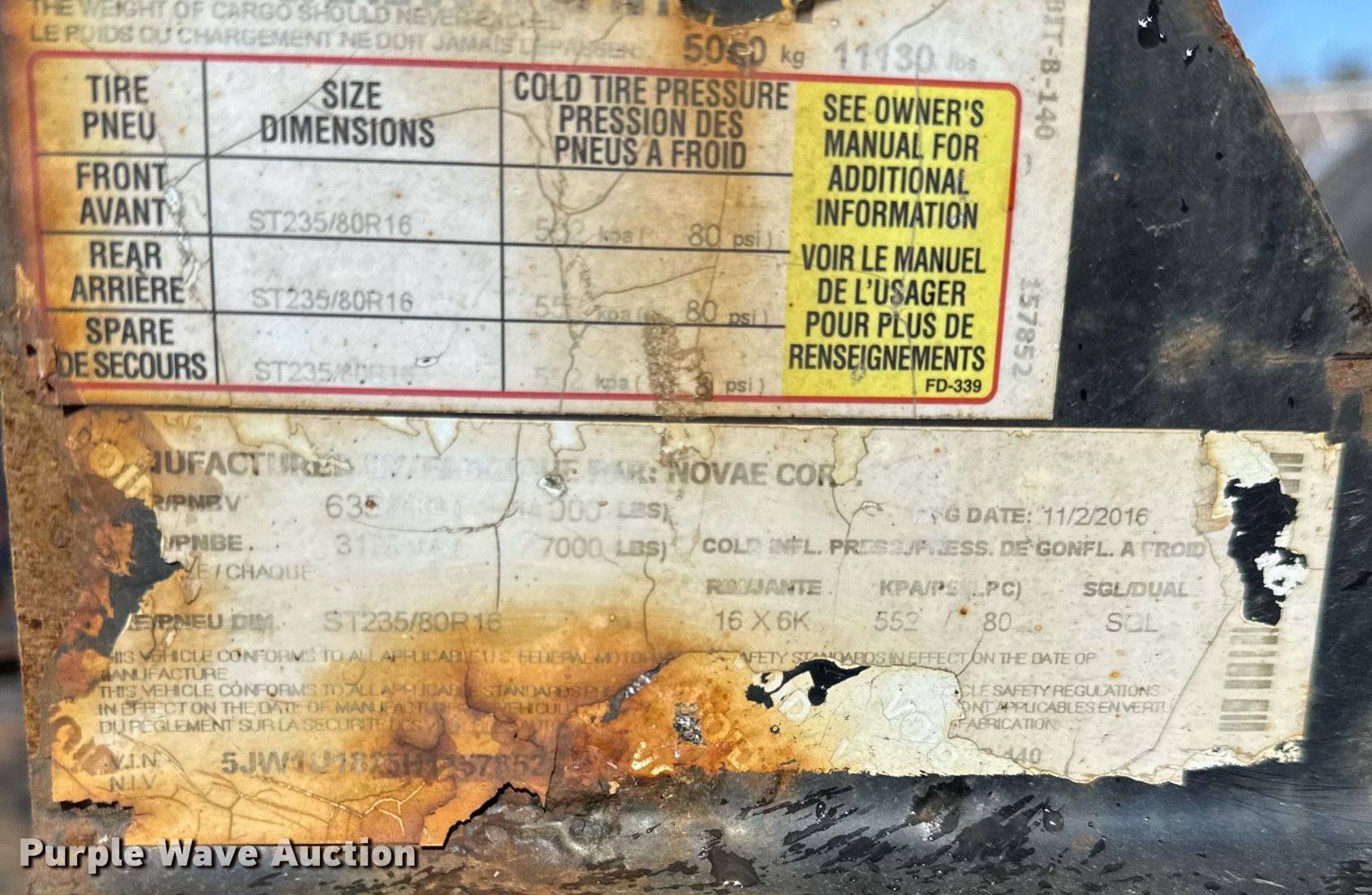 2017 Novae Corp Sure Trac equipment trailer. VIN: 5JW1U1825H1157852, Unit #: ST8. Dimensions Overall: 23' 6" L x 102" W, Deck: 16' L x 81' W, Deck height: 24", Tail length: 2' 4", Ramps: Manual Length: 60". Features Deck type: Wood. Chassis Hitch: Pintle, Landing gear: Single, Suspension: Spring, Brakes: Electric, Axles: Tandem. Tires Steel wheels, Size: 235/80R16. Wisconsin title. Title distribution may be delayed up to 14 days from verification of funds. Ken Becker & Sons. Lannon, WI 53046
