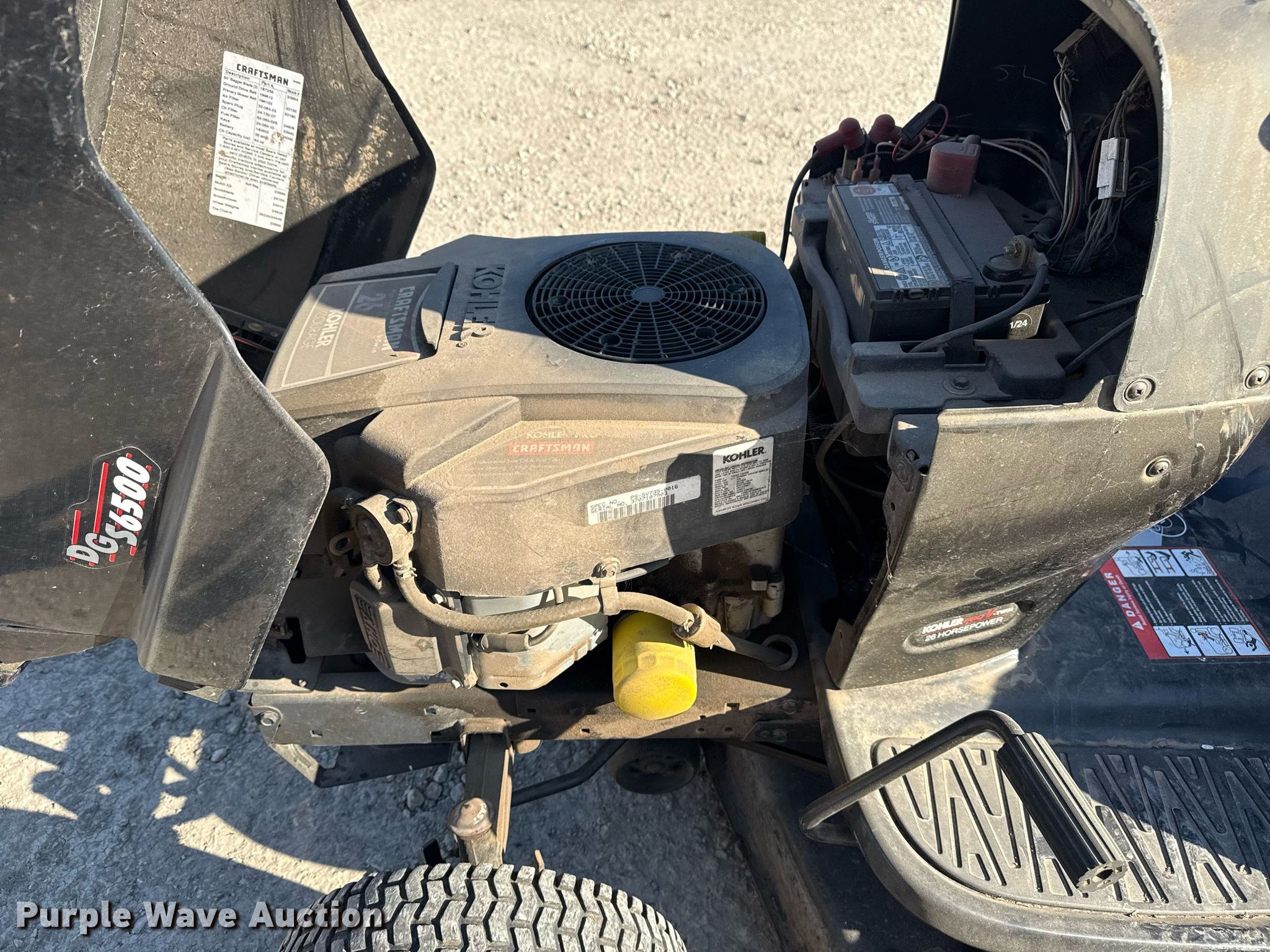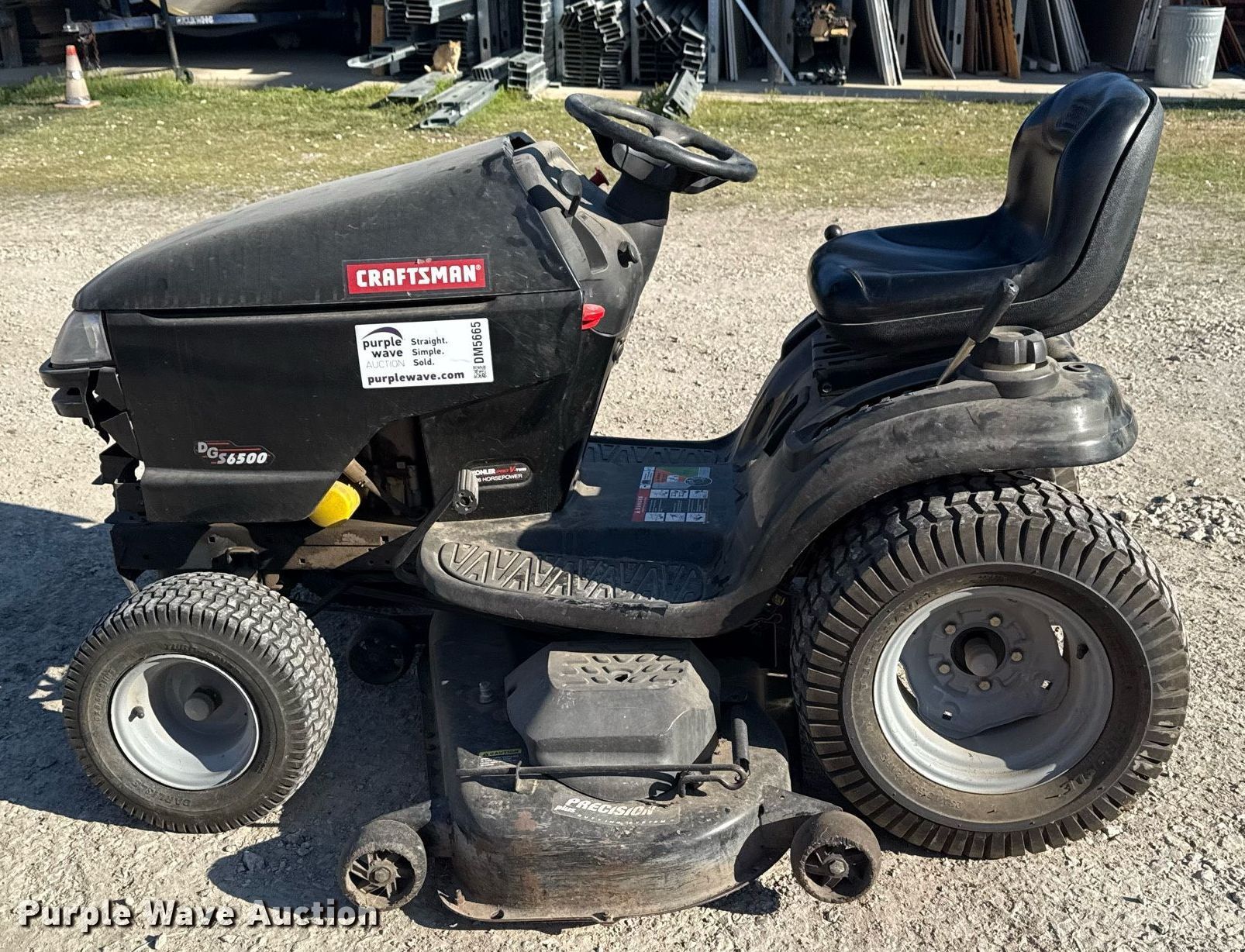 Purple Wave is selling a used Lawn Mower in Oklahoma. This item is a Craftsman DGS6500 lawn mower with the following: Hours: 531 on meter, Cutting width: 50"