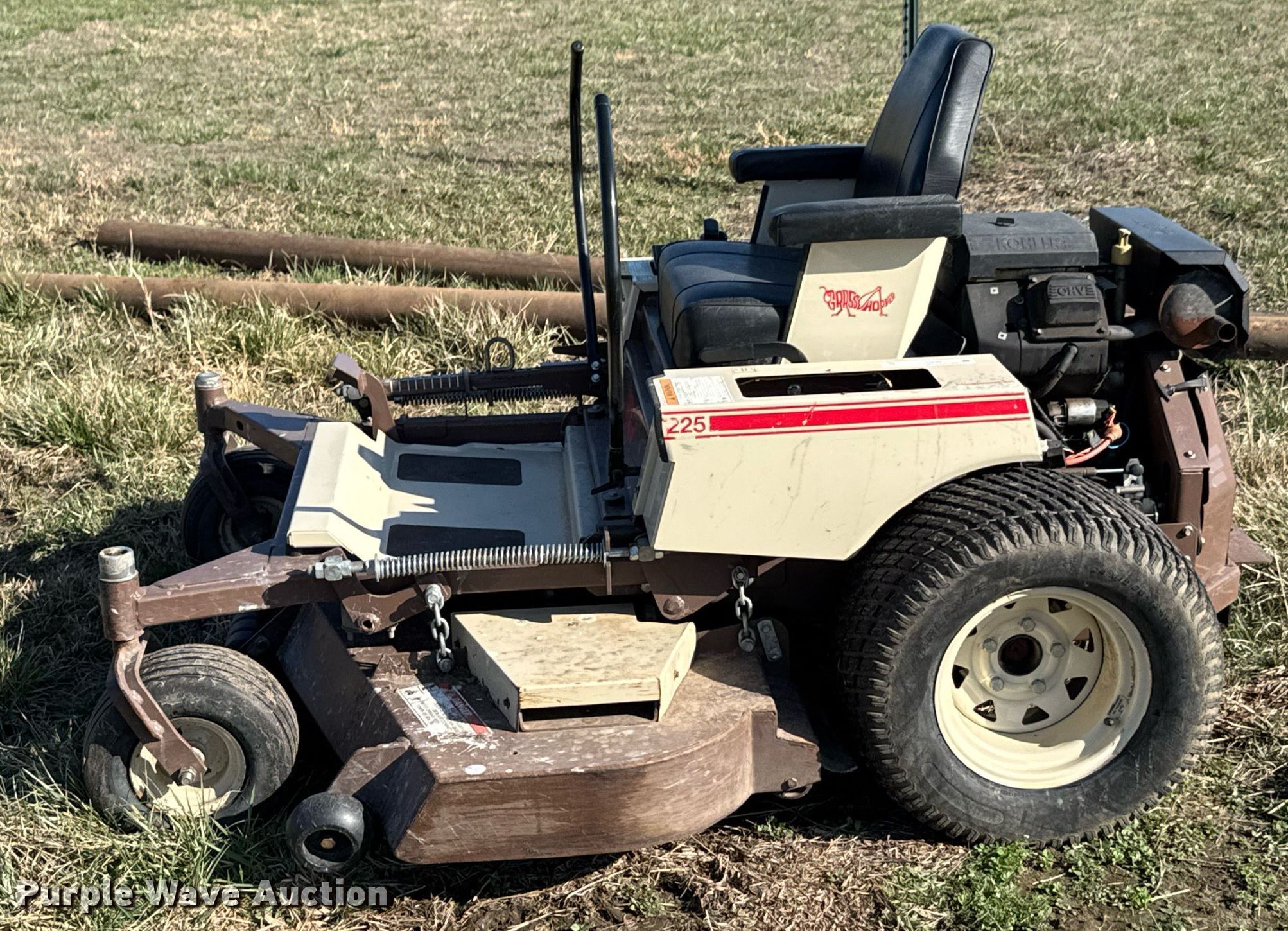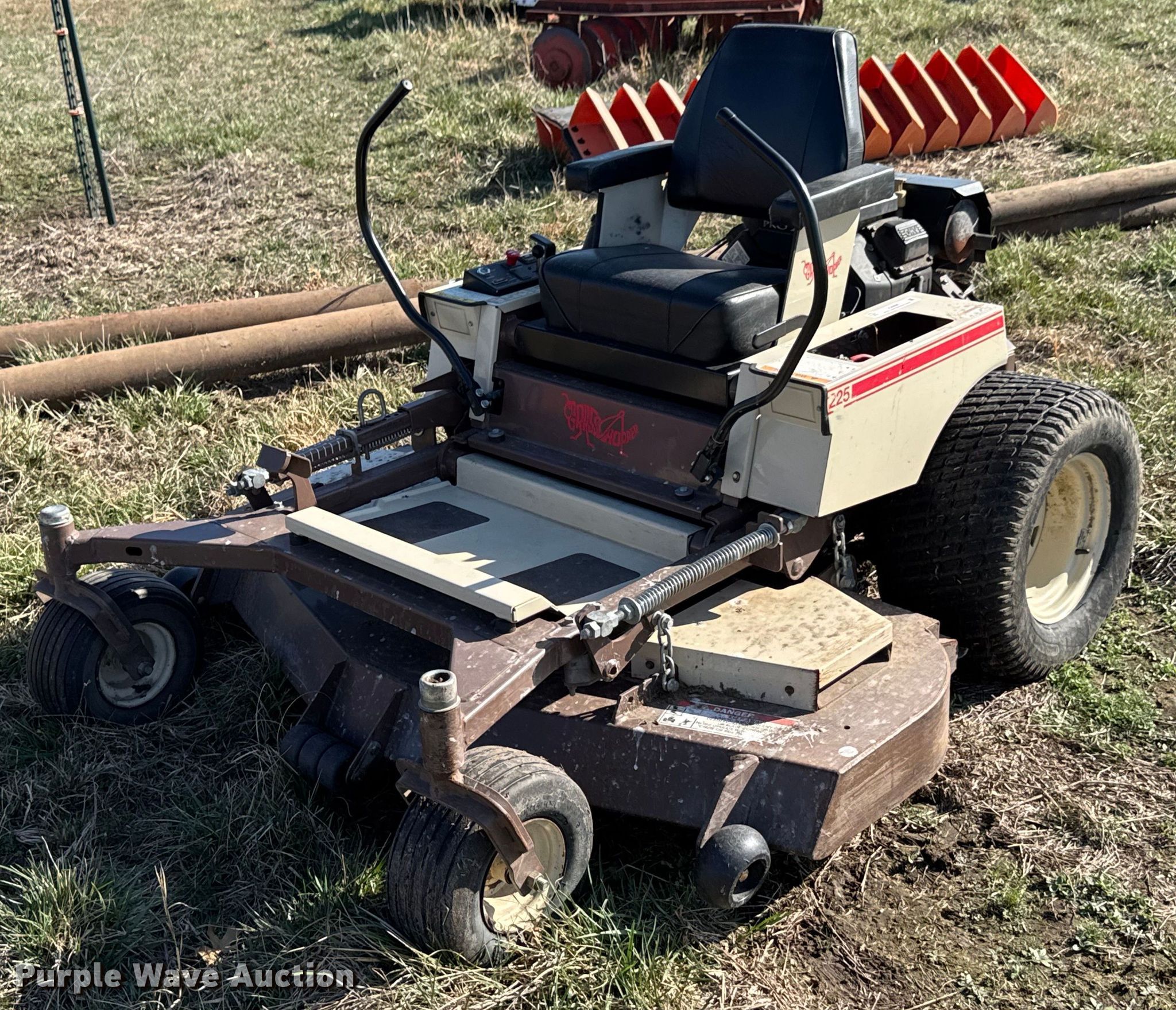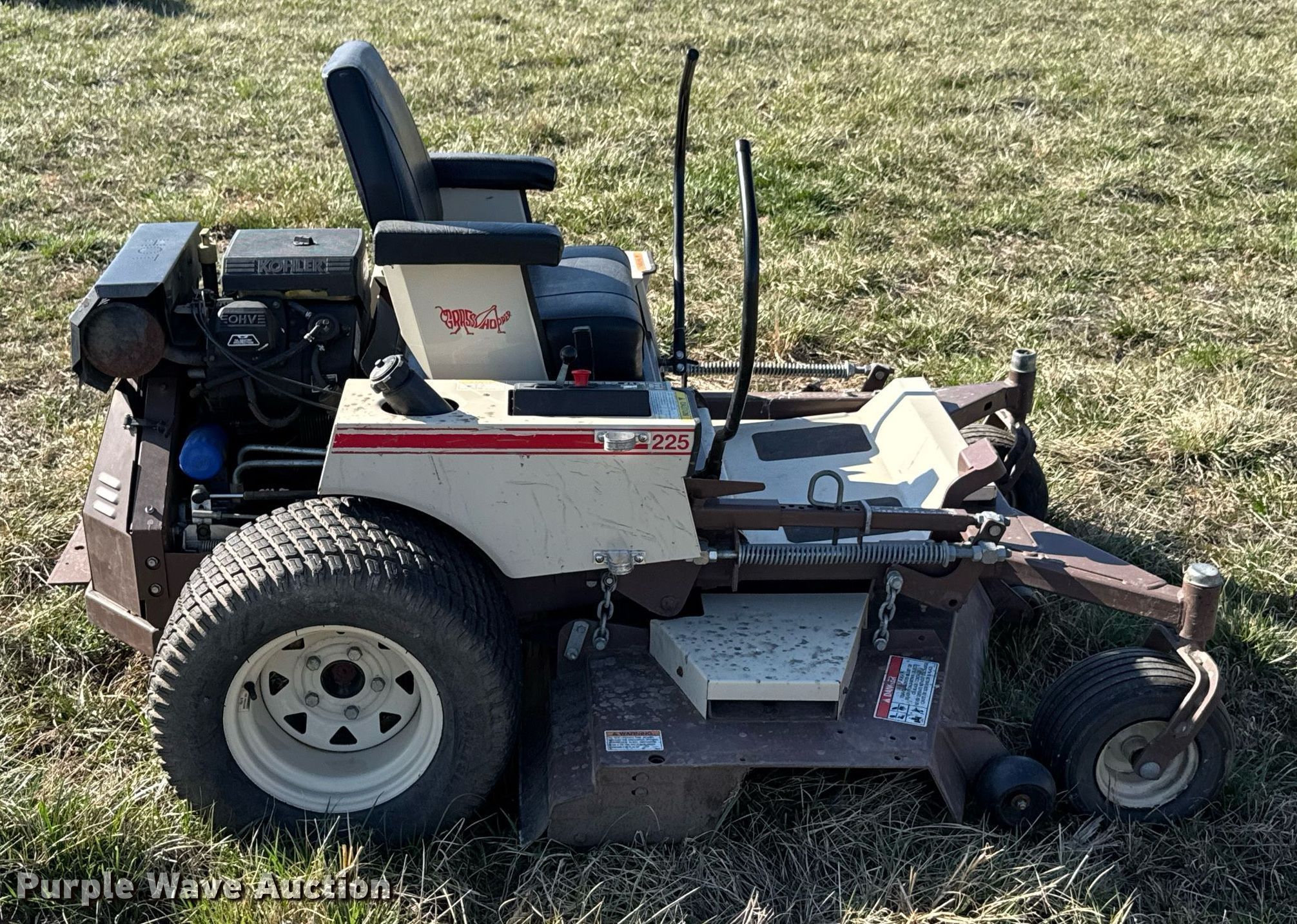 Purple Wave is selling a used Commercial Turf Mower in Oklahoma. This item is a 2000 Grasshopper 225 ZTR lawn mower with the following: Hours: 982 on meter, Cutting width: 61", Serial: 5045481