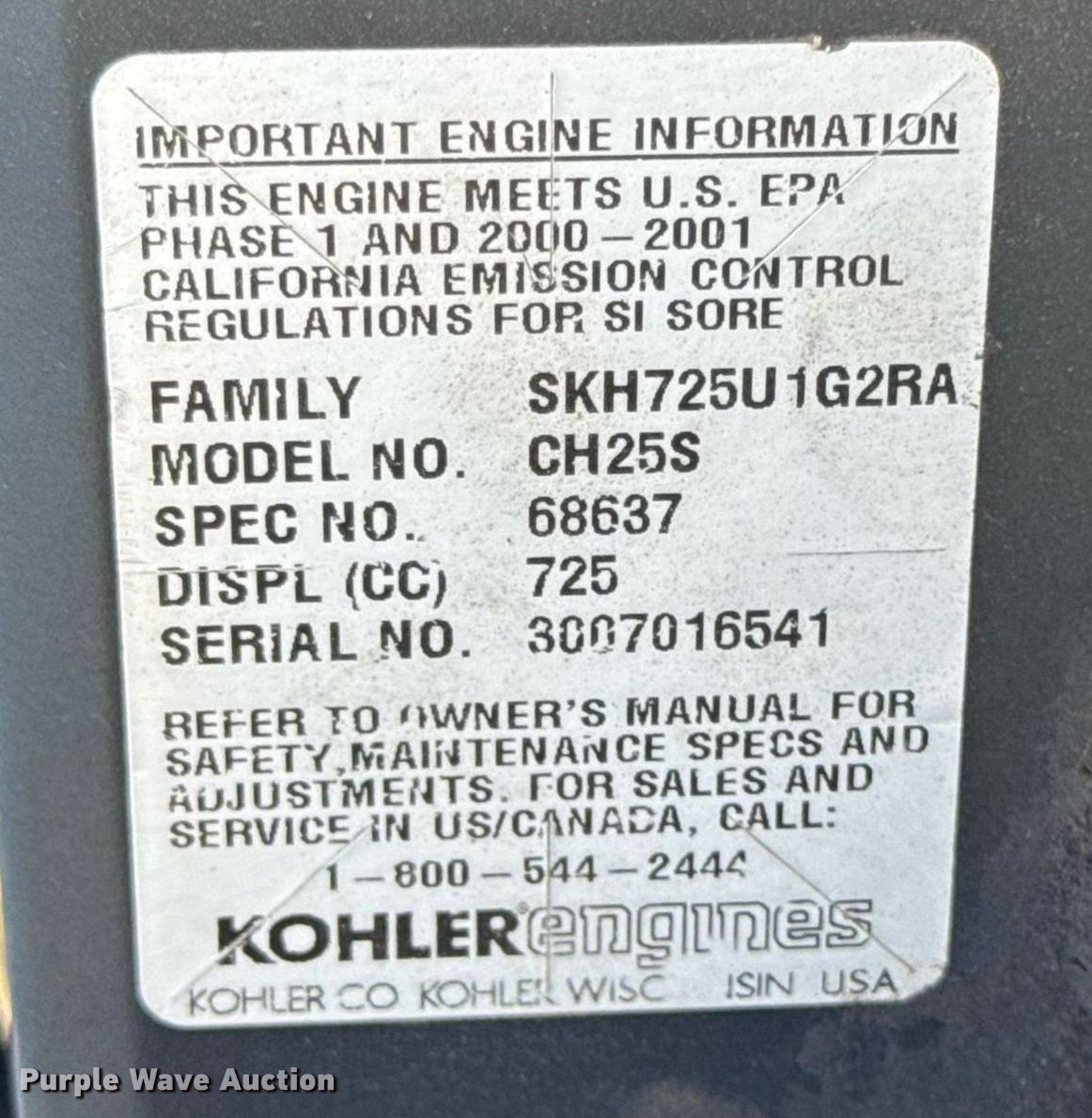 2000 Grasshopper 225 ZTR lawn mower. Hours: 982 on meter, Cutting width: 61", Serial: 5045481. Engine Kohler Command Pro 25, Serial: 3007016541, Displacement: 725 cc, Cylinders: 2, Fuel type: Gas. Transmission Hydrostatic. Tires Front: 13/6.50-6, Rear: 24x12.00-12. Notes Dead battery, Non-operational coils, Non-operational unit. Tyler Hollingsworth. Adair, OK 74330