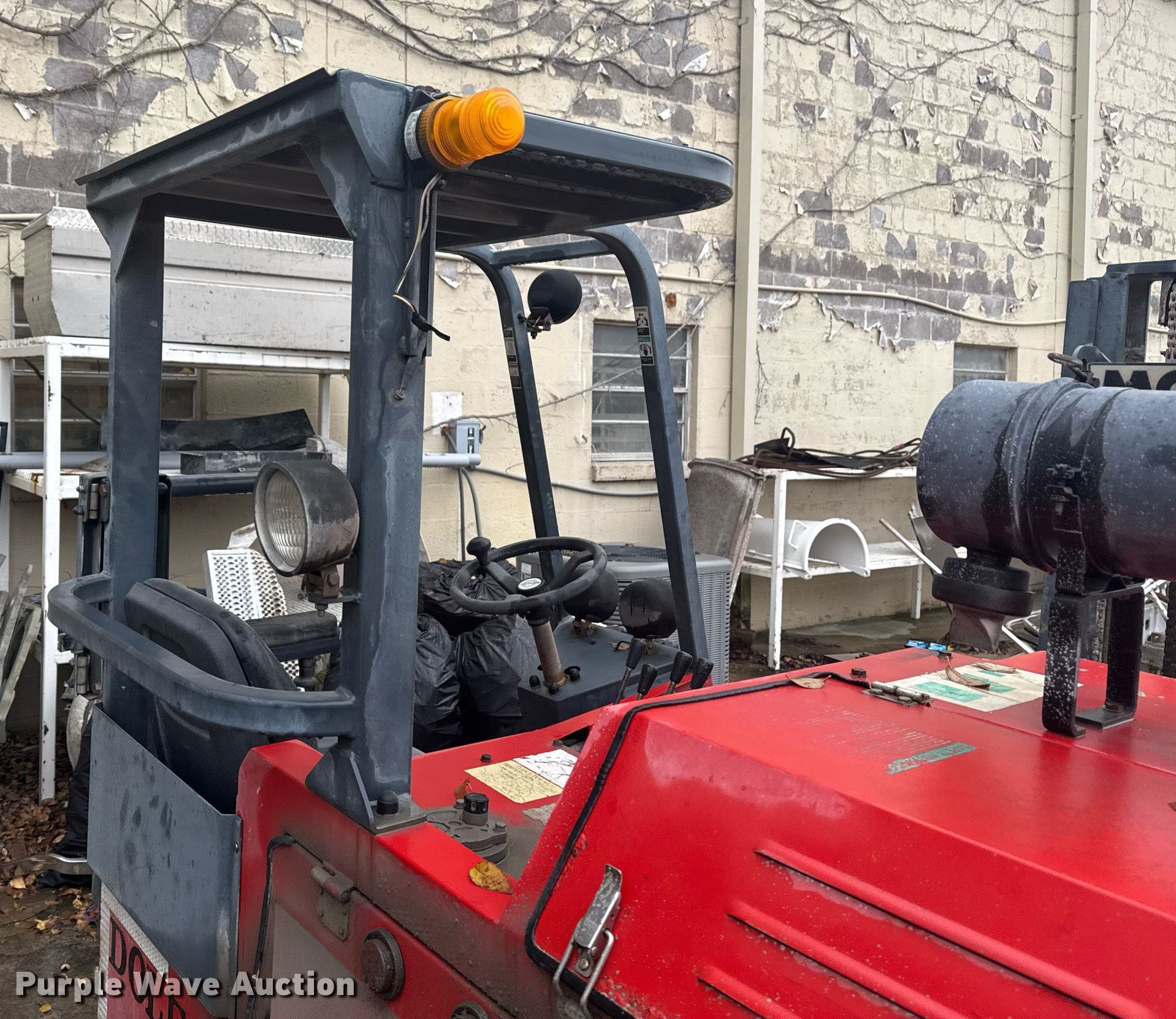 2001 Moffett M5000LP forklift. Hours: 3,383 on meter, Serial: A26033, Unit #: 206202. Engine Kubota, Cylinders: 4, Fuel type: Diesel. Transmission Hydrostatic. Operators station Canopy. Features Maximum lift capacity: 5,000 lbs, Mast stages: 1, Side shift, Mast tilt, Fork length: 47". Tires Size: 29x12.5-15 NHS. Notes Hydraulic leaks Lift support cylinders, Retracting cylinders, Main lift cylinder seals need replaced, Main pump housing cracked , Non-operational unit. Dolese Bros. Co.. 13521 East 11th Street. Tulsa, OK 74108