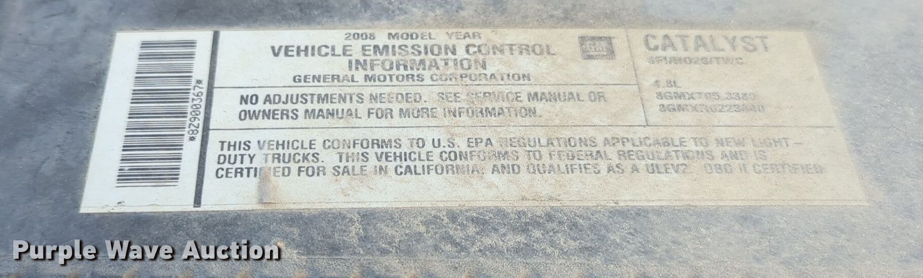 2008 GMC Sierra 1500 pickup truck. Miles: 151,501 on odometer, VIN: 1GTEC14C88Z900367, Unit #: 103704. Engine Displacement: 4.8L V8 OHV, Cylinders: 8, Fuel type: Gas. Transmission Automatic. Interior AC, Heat. Tires Size: 245/70R17. Notes Dash warning indicator: TPMS. Oklahoma title. Title distribution may be delayed up to 30 days from verification of funds. Dolese Bros Co. 5600 West Reno Avenue. Oklahoma City, OK 73127