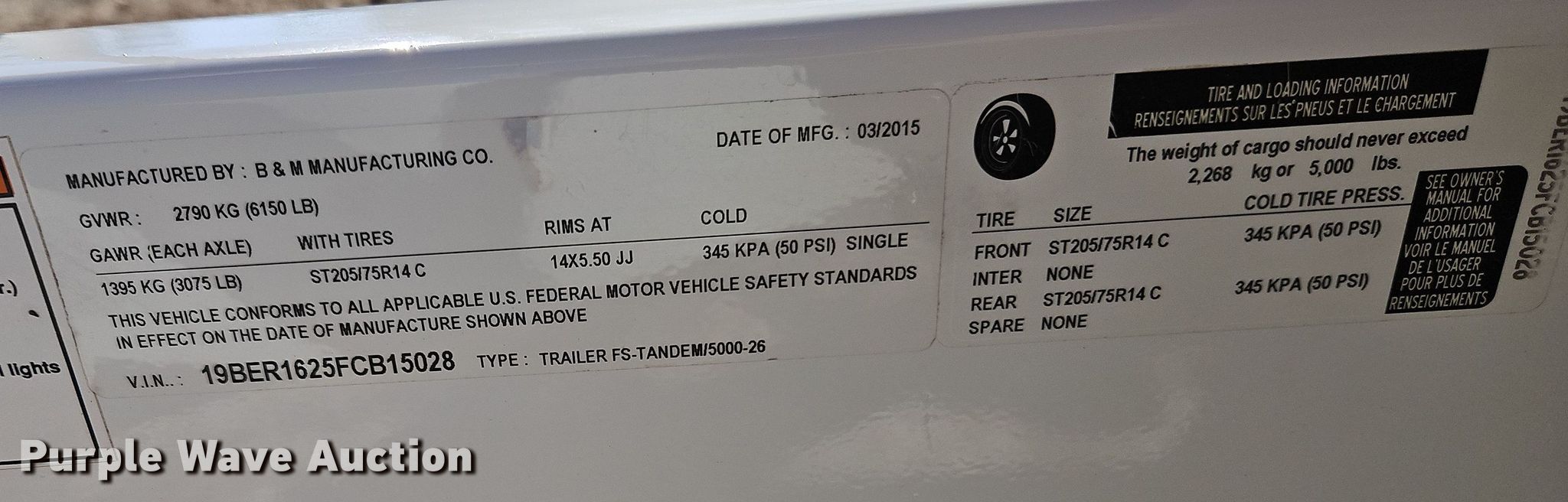 - VIN: 19BER1625FCB15028