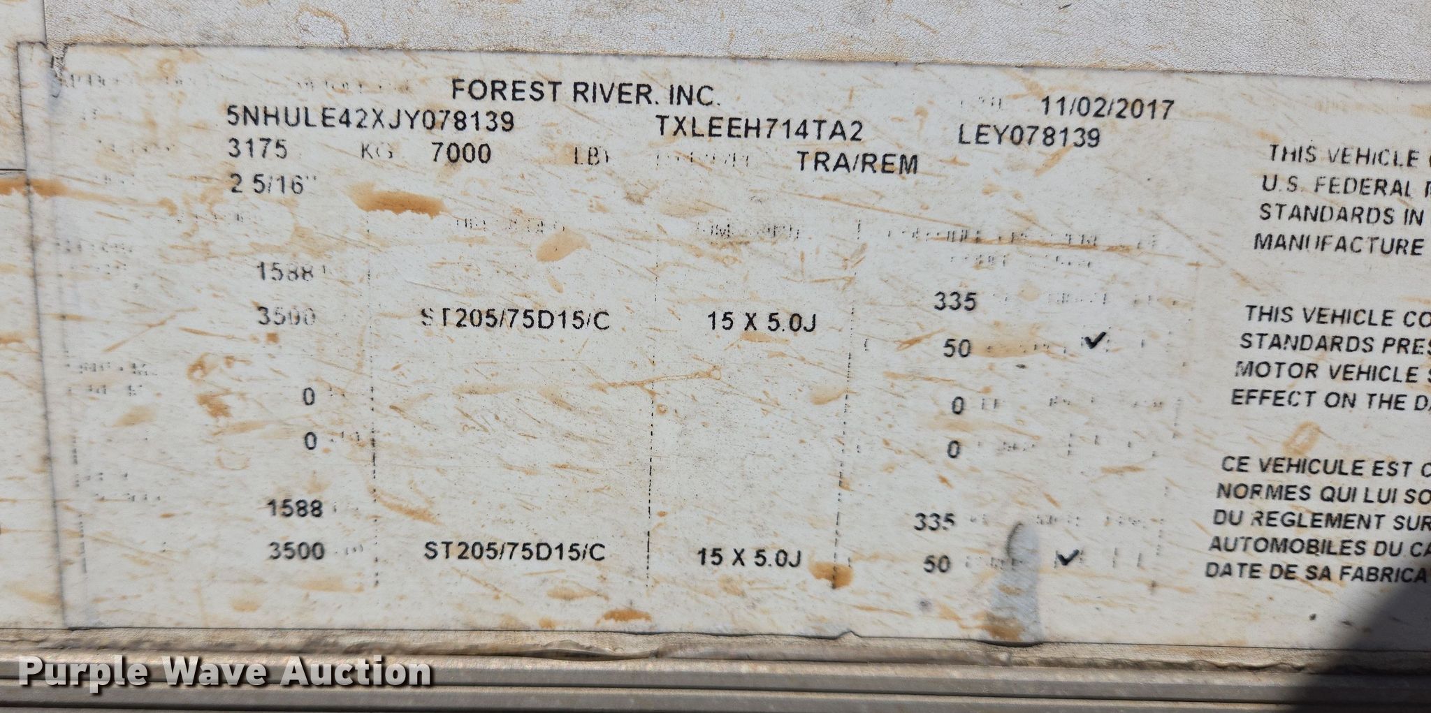 Purple Wave is selling a used Enclosed Cargo Trailer in Texas. This item is a 2018 Forest River enclosed cargo trailer with the following: VIN: 5NHULE42XJY078139