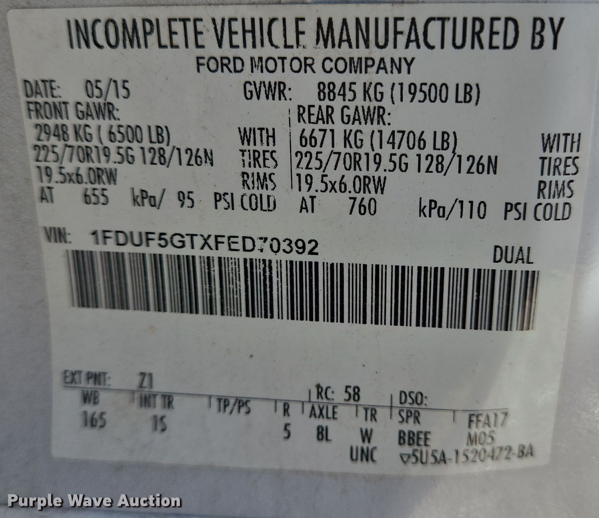 • VIN: 1FDUF5GTXFED70392