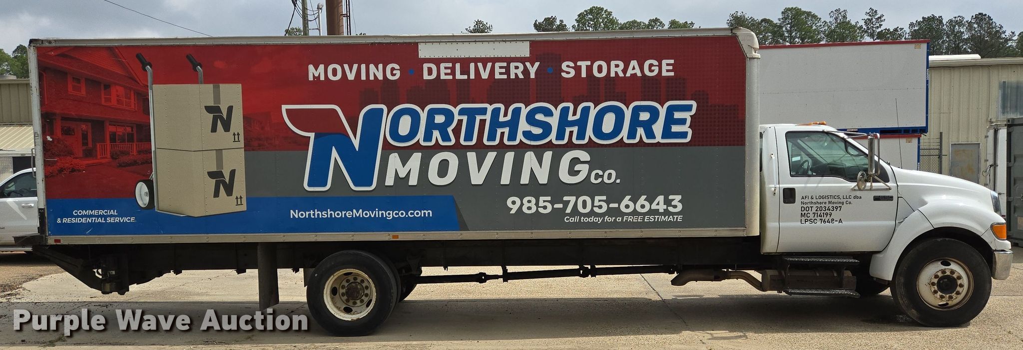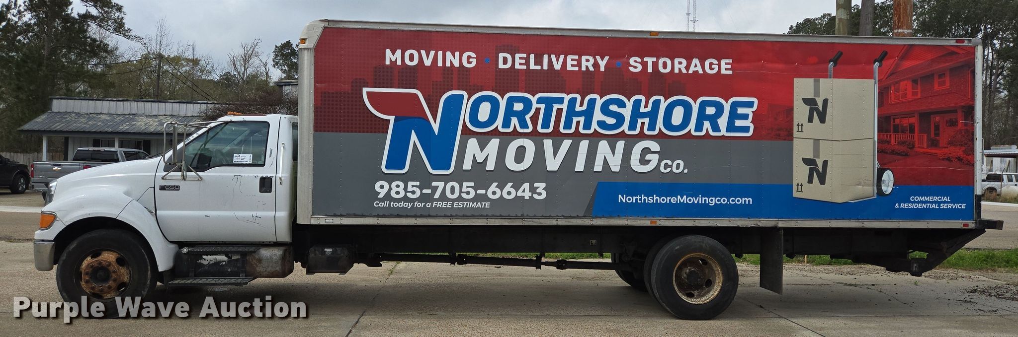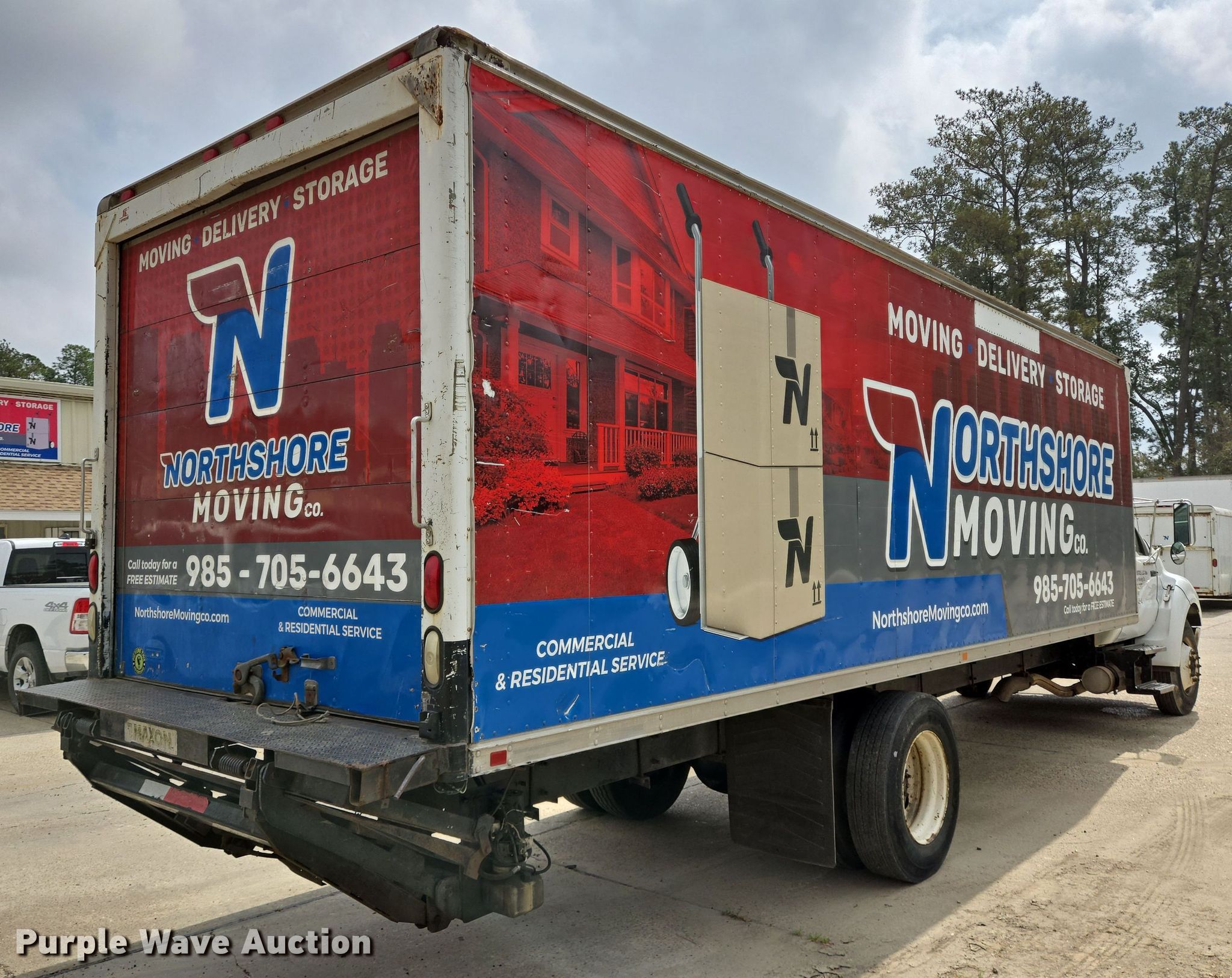 2008 Ford F650 Super Duty truck cab and chassis. Miles: 260,067 on odometer, VIN: 3FRNF65B68V067872. Engine Cummins ISB 220, Serial: 57816935, Displacement: 6.7L, Cylinders: 6, Fuel type: Diesel, HP: 220. Transmission Automatic. Chassis Axles: Single, Suspension: Spring, Brakes: Hydraulic, GVWR: 26,000 lbs, Wheelbase: 258". Interior AC, Heat, Cruise control. Features End gate lift. Tires Size: 10R22.5. Notes Box to be removed prior to auction, Dash warning indicator: ABS, Service Engine, Windshield chipped or cracked, Non-operational end lift gate. Louisiana title. Title distribution may be delayed up to 30 days from verification of funds. Northshore Moving Company. Hammond, LA 70403