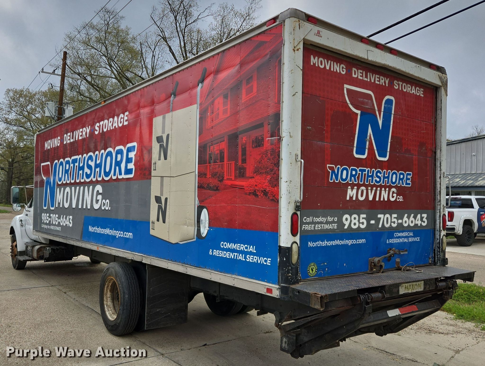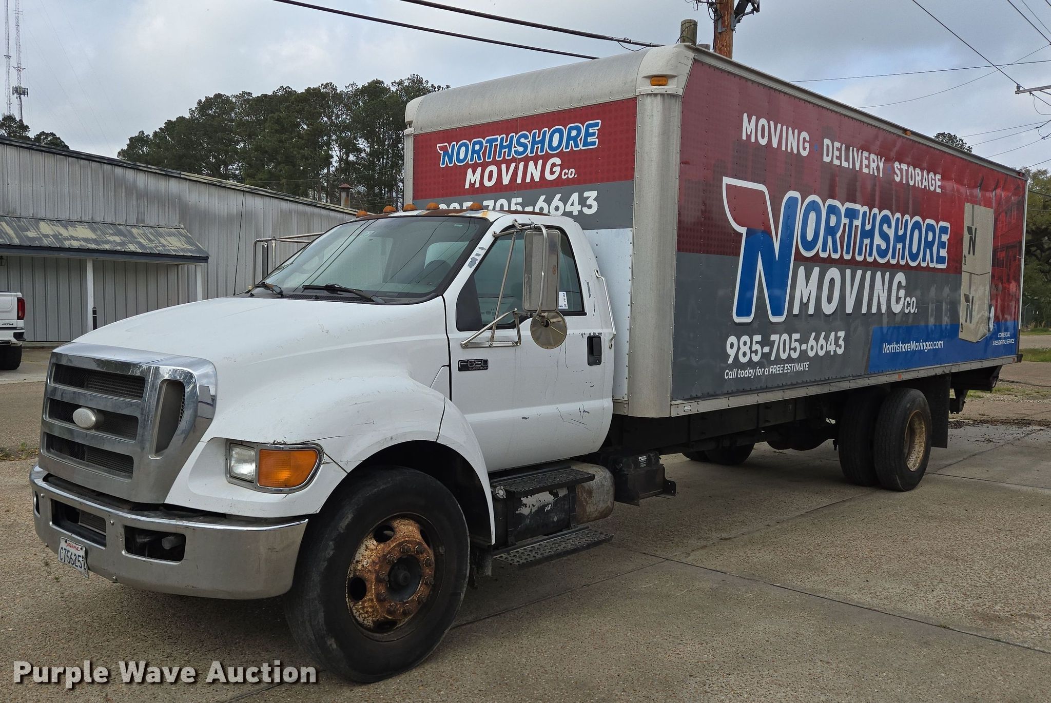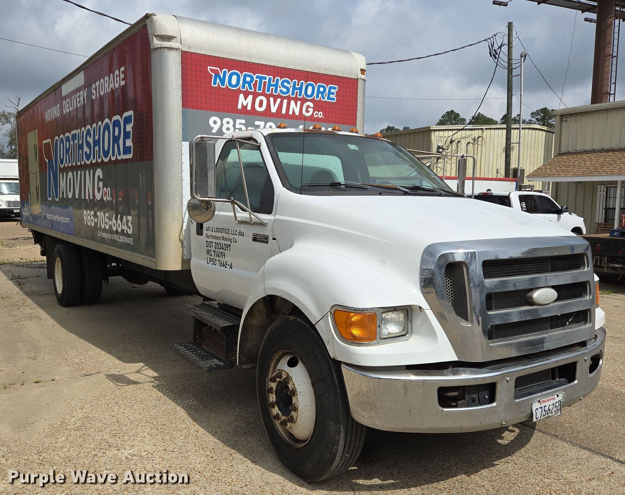 2008 Ford F650 Super Duty truck cab and chassis. Miles: 260,067 on odometer, VIN: 3FRNF65B68V067872. Engine Cummins ISB 220, Serial: 57816935, Displacement: 6.7L, Cylinders: 6, Fuel type: Diesel, HP: 220. Transmission Automatic. Chassis Axles: Single, Suspension: Spring, Brakes: Hydraulic, GVWR: 26,000 lbs, Wheelbase: 258". Interior AC, Heat, Cruise control. Features End gate lift. Tires Size: 10R22.5. Notes Box to be removed prior to auction, Dash warning indicator: ABS, Service Engine, Windshield chipped or cracked, Non-operational end lift gate. Louisiana title. Title distribution may be delayed up to 30 days from verification of funds. Northshore Moving Company. Hammond, LA 70403